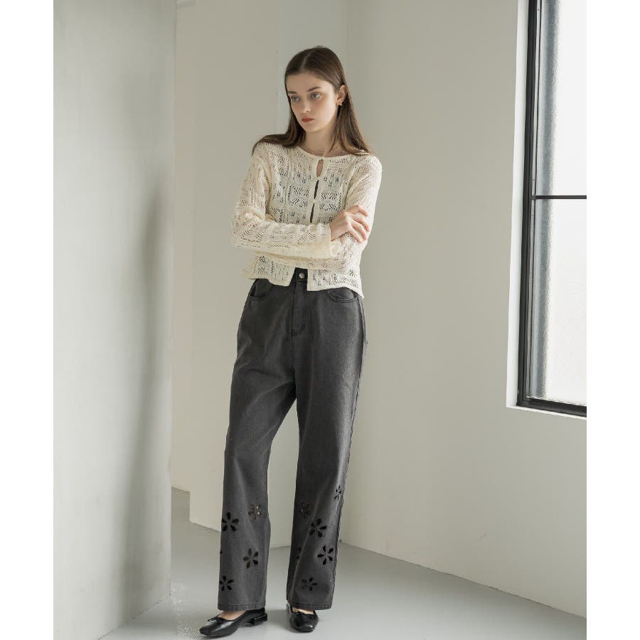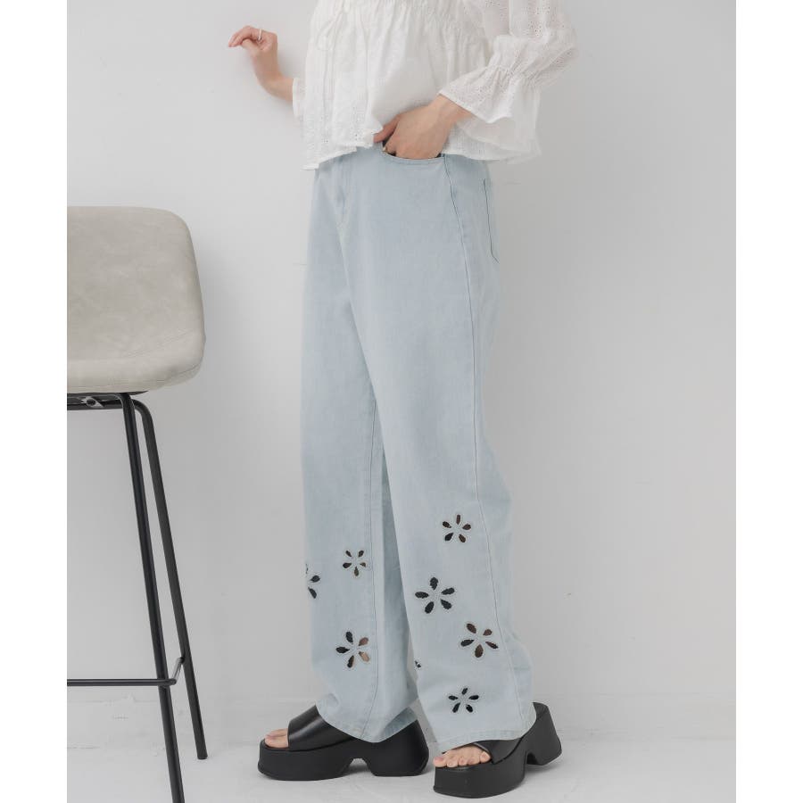 <カットワークで抜け感を演出するデニムパンツ>▼デザイン定番のストレートシルエットで着まわしやすいデニムパンツ。膝下から裾に向かって、花模様のカットワークが散りばめられていて春らしいスタイリングにぴったりのアイテムです!▼コーディネートシンプルでどんなトップスとも相性バツグン!スニーカーとのカジュアルコーデはもちろん、パンプスやバレエシューズ合わせできれいめに仕上げるとより今年らしいスタイリングに◎-----------------------------生地感:普通伸縮性:なし透け感:なし裏地:なし------------------------------▼ブランド紹介RETRO GIRL (レトロガール)自分らしい“ベーシックアイテム”と新しい自分の”トレンドアイテム”が見つかる場所今らしいファッションを楽しむ女性のためのブランド#ストレートパンツ #パンツコーデ #デニムパンツ #デニム #花柄 #カットワーク #フラワー ▼注意事項※撮影環境やモニター環境によって実際の商品とお色味が多少異なってみえる場合がございます。品番:RA537532T003 / 品名:カットワークデニムPT