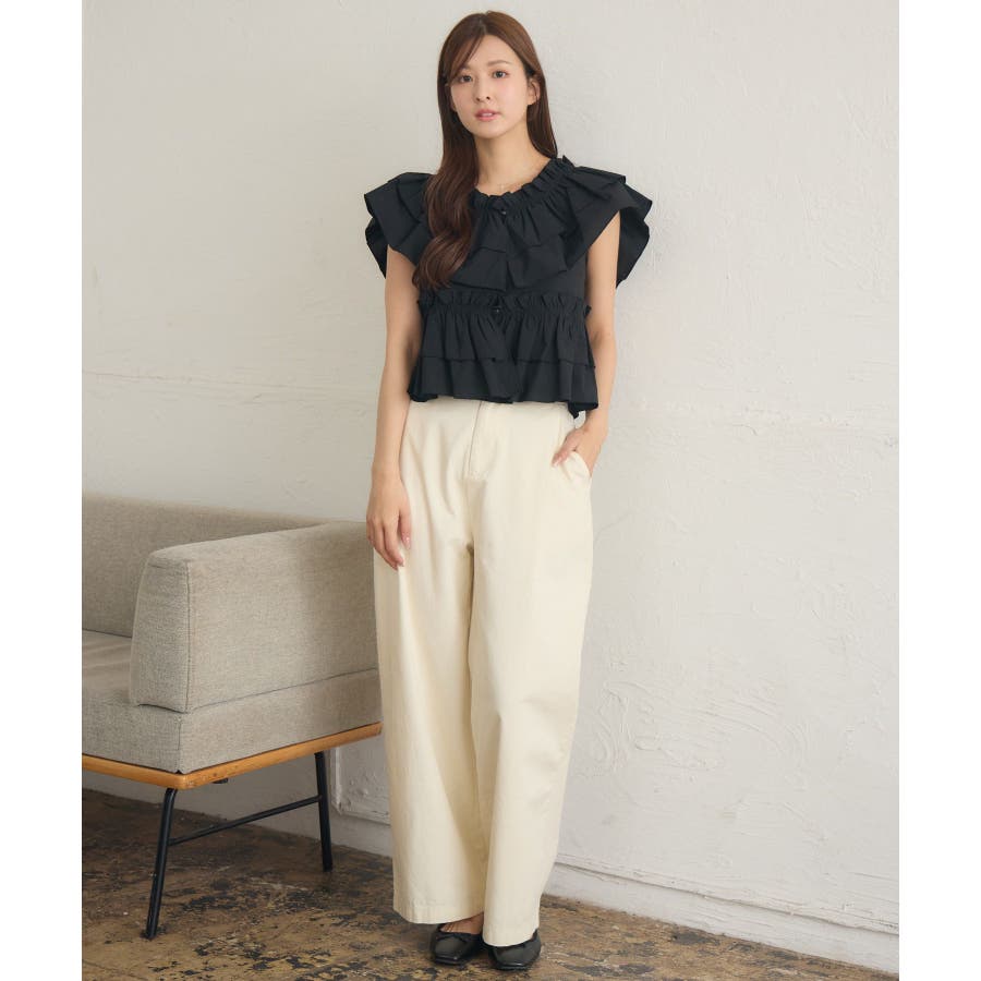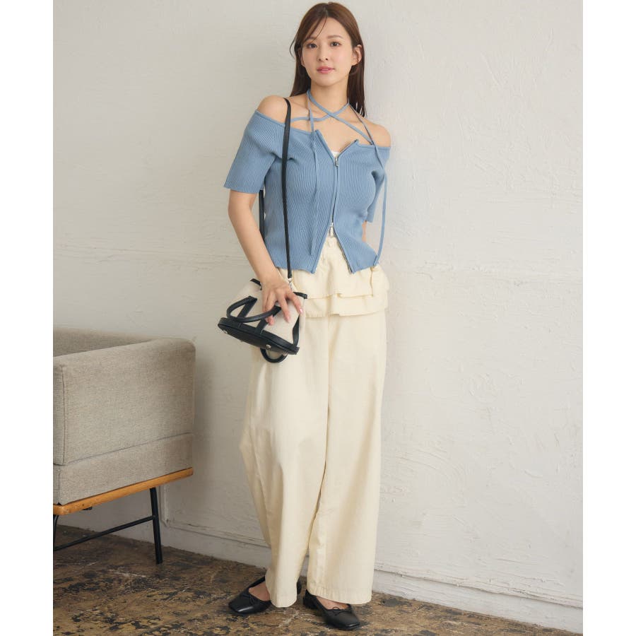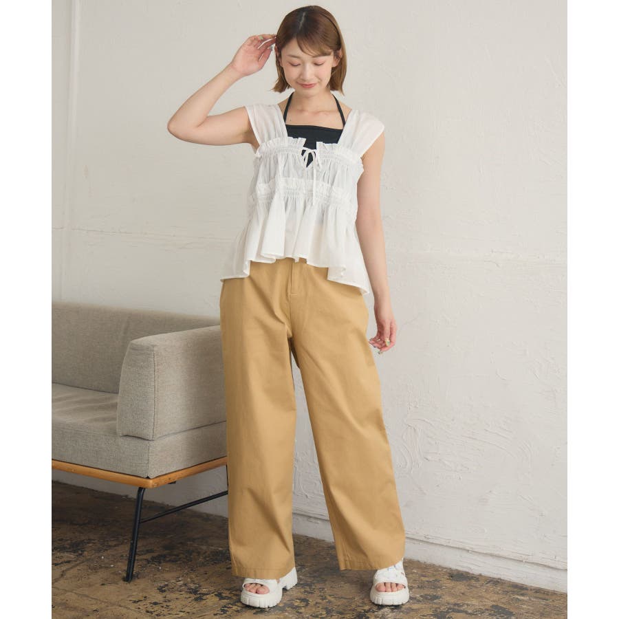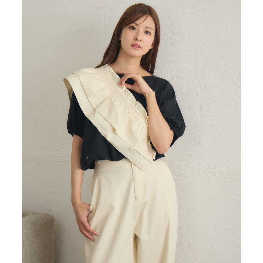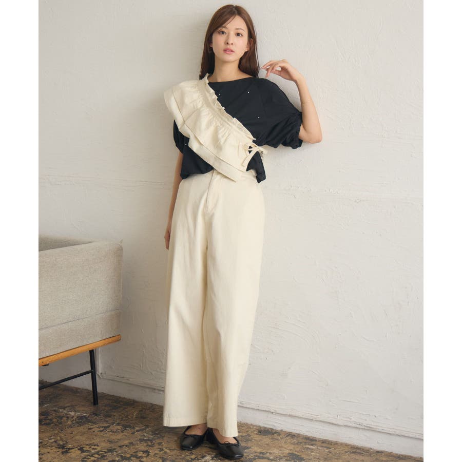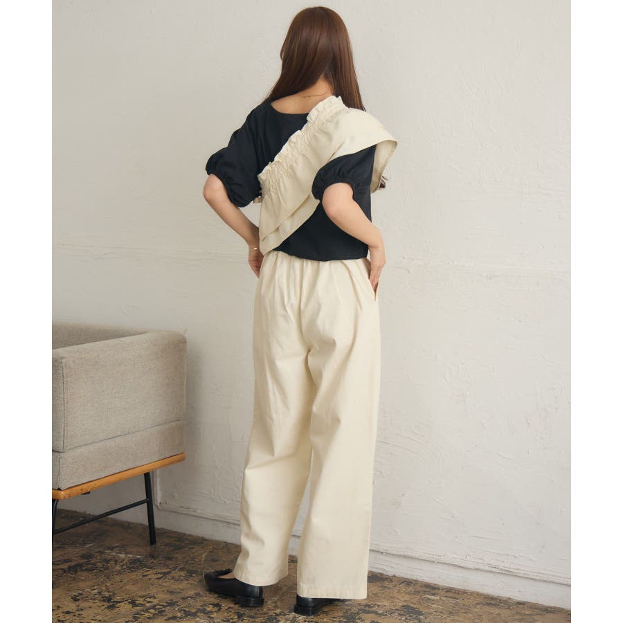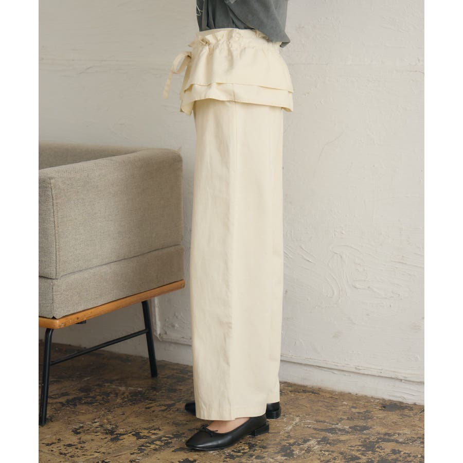 <いろんな着回しが楽しめるストレートパンツ>▼デザイン今年らしいウエストフリルの巻きスカートがセットのストレートパンツ!圧倒的に美シルエットでパンツ1枚での着用もおすすめ◎フリルたっぷりの巻きスカートは肩から斜めに掛ければ襷掛けスタイルも可能!着回し力抜群の大人めパンツです!▼コーディネート巻きスカートを着用する場合は、コンパクトな着丈のアイテムと合わせるのがおすすめ!パンツ1枚での着用は、大人っぽいスタイリッシュなスタイリングに仕上がります。-----------------------------生地感:普通伸縮性:なし透け感:なし裏地:なし------------------------------▼ブランド紹介RETRO GIRL (レトロガール)自分らしい“ベーシックアイテム”と新しい自分の”トレンドアイテム”が見つかる場所今らしいファッションを楽しむ女性のためのブランド#ストレートパンツ #パンツコーデ #綺麗目パンツ #巻きスカート #セットアイテム▼注意事項※撮影環境やモニター環境によって実際の商品とお色味が多少異なってみえる場合がございます。品番:RA541532T003 / 品名:マルチウェイビスチェ付PT