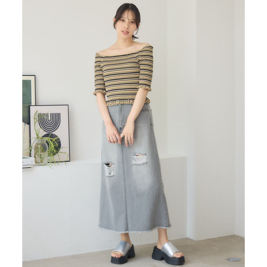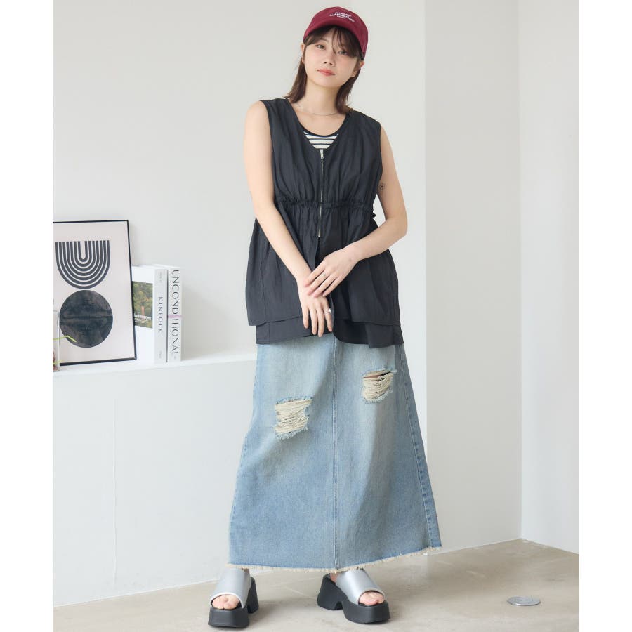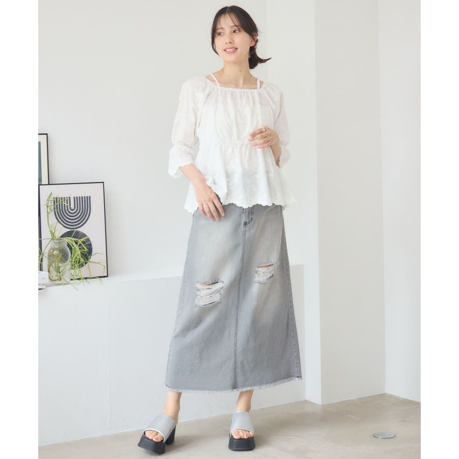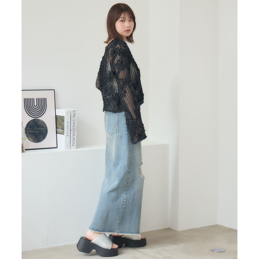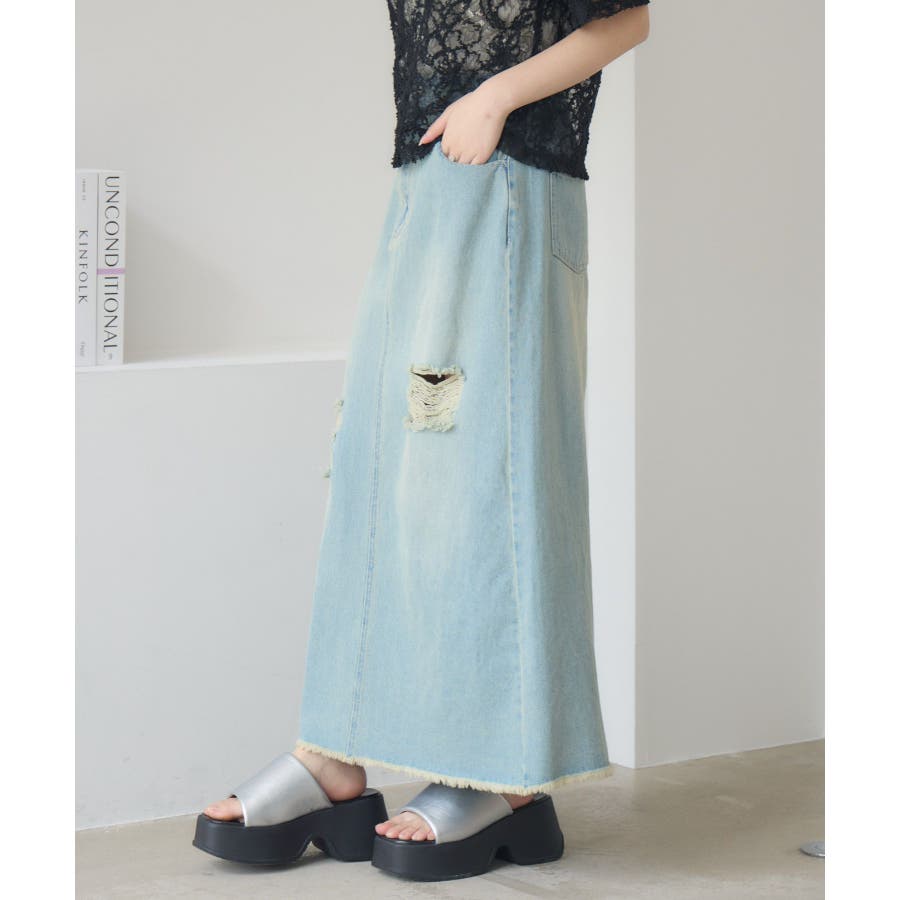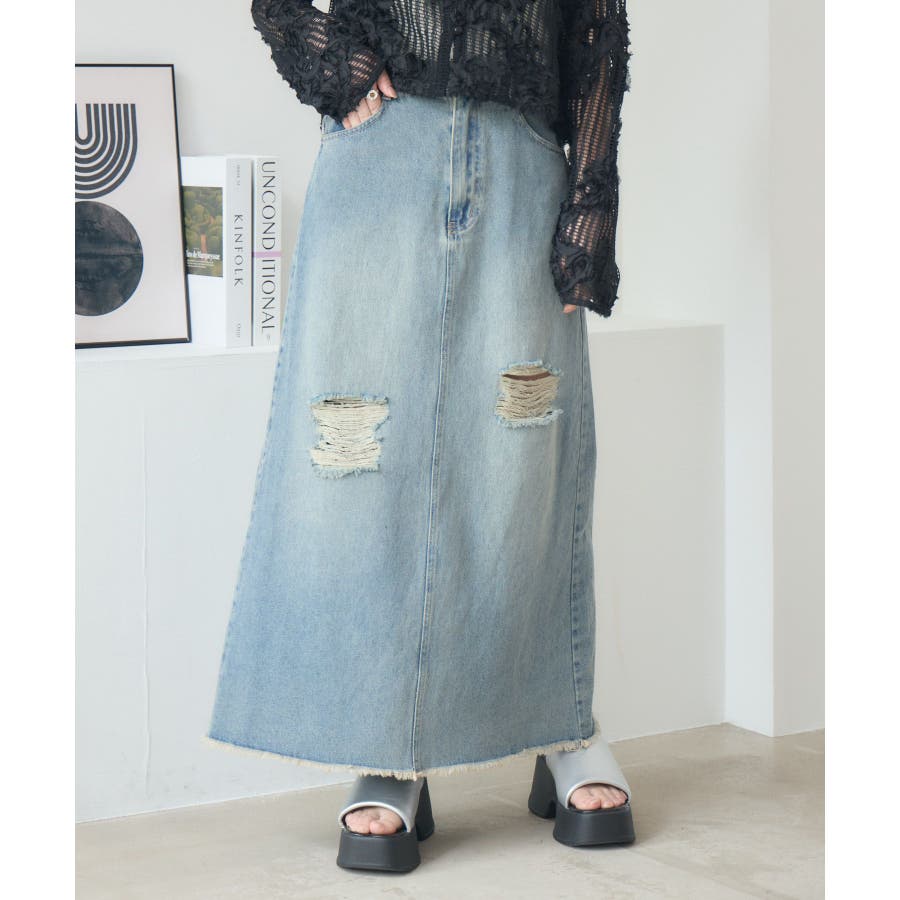 <カジュアルでカッコいいデザインデニムスカート>▼デザイン今年トレンドのデニムスカート。ダメージデザインが両サイドに施されていて、カジュアルな1枚。裾もフリンジで、デザイン性◎バックスタイルはスリットが入っているので、タイトながら歩きやすいのも魅力♪▼コーディネートTシャツやメッシュカーディガンと合わせてカジュアルに!シャツを羽織って春らしいスタイリングするのもおすすめです。-----------------------------生地感:普通伸縮性:なし透け感:なし裏地:なし------------------------------▼ブランド紹介RETRO GIRL (レトロガール)自分らしい“ベーシックアイテム”と新しい自分の”トレンドアイテム”が見つかる場所今らしいファッションを楽しむ女性のためのブランド#デニム #デニムスカート #フリンジ #タイトスカート #フレアスカート #ダメージスカート▼注意事項※撮影環境やモニター環境によって実際の商品とお色味が多少異なってみえる場合がございます。品番:RA561031T001 / 品名:ダメージデニムSK