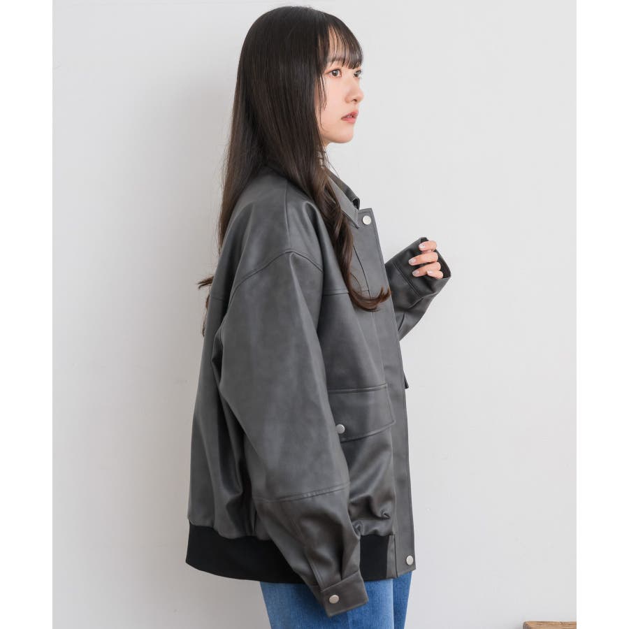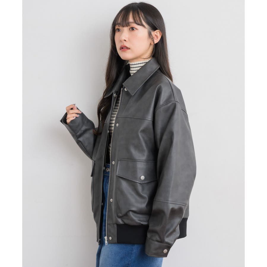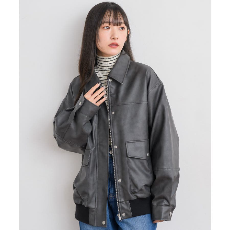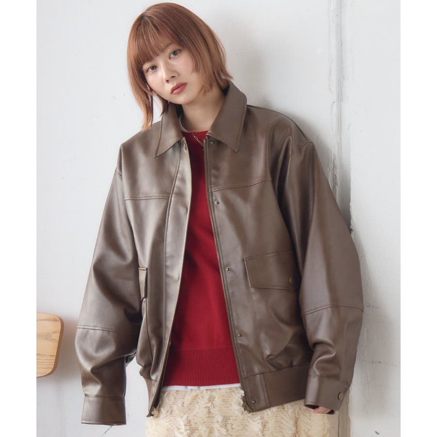 <トレンドのフェイクレザーブルゾンが冬用にブラッシュアップ>▼デザイン今年トレンドのフェイクレザーブルゾン。秋アウターとして既に取り入れている人も多いのではないでしょうか。今回は、冬にも着られるように防寒力をアップさせました。加工感のある生地感がかっこよく、トレンド感たっぷりの1枚です。▼コーディネート加工感のあるかっこいいデザインなので、デニム合わせでかっこよくスタイリング♪ミニ丈スカートと合わせて甘カジコーデも可愛いです。-----------------------------生地感:やや厚手伸縮性:なし透け感:なし裏地:ある------------------------------▼ブランド紹介RETRO GIRL (レトロガール)自分らしい“ベーシックアイテム”と新しい自分の”トレンドアイテム”が見つかる場所今らしいファッションを楽しむ女性のためのブランド#レザージャケット #レザーアイテム #羽織 #冬コーデ #冬アウター #冬ジャケット▼注意事項※撮影環境やモニター環境によって実際の商品とお色味が多少異なってみえる場合がございます。品番:RA580021T002 / 品名:Fレザーブルゾン