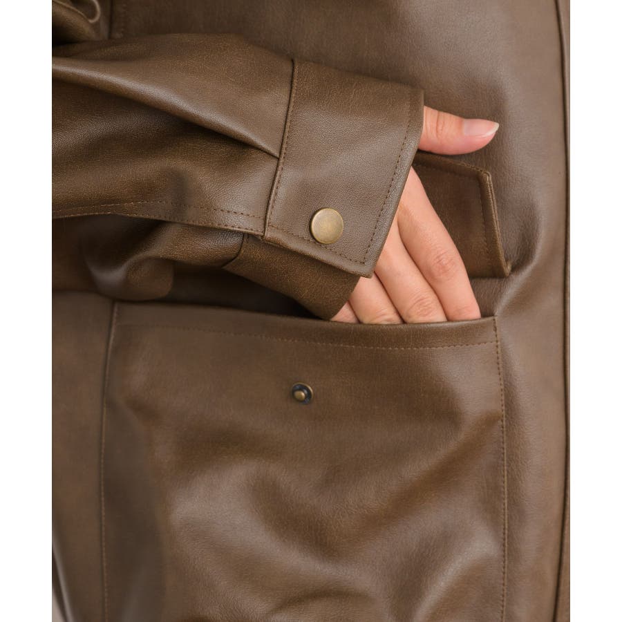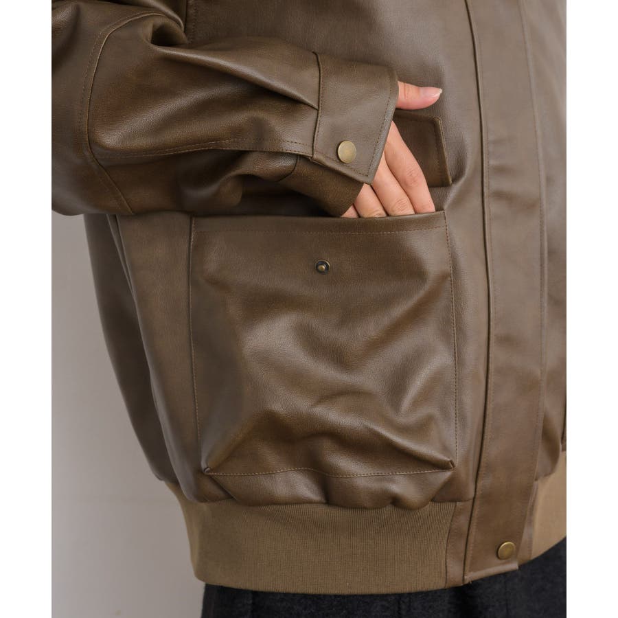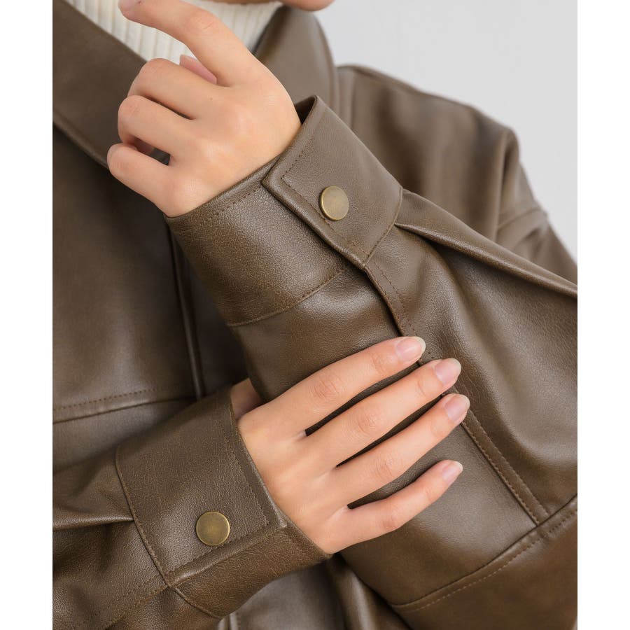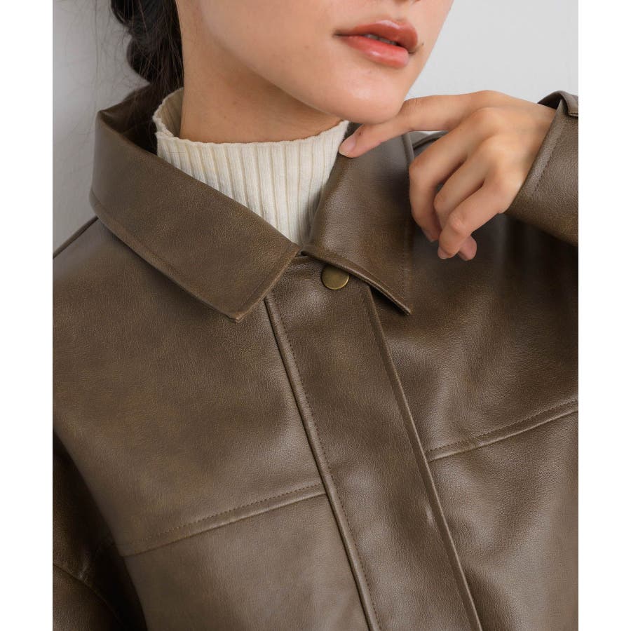 <トレンドのフェイクレザーブルゾンが冬用にブラッシュアップ>▼デザイン今年トレンドのフェイクレザーブルゾン。秋アウターとして既に取り入れている人も多いのではないでしょうか。今回は、冬にも着られるように防寒力をアップさせました。加工感のある生地感がかっこよく、トレンド感たっぷりの1枚です。▼コーディネート加工感のあるかっこいいデザインなので、デニム合わせでかっこよくスタイリング♪ミニ丈スカートと合わせて甘カジコーデも可愛いです。-----------------------------生地感:やや厚手伸縮性:なし透け感:なし裏地:ある------------------------------▼ブランド紹介RETRO GIRL (レトロガール)自分らしい“ベーシックアイテム”と新しい自分の”トレンドアイテム”が見つかる場所今らしいファッションを楽しむ女性のためのブランド#レザージャケット #レザーアイテム #羽織 #冬コーデ #冬アウター #冬ジャケット▼注意事項※撮影環境やモニター環境によって実際の商品とお色味が多少異なってみえる場合がございます。品番:RA580021T002 / 品名:Fレザーブルゾン