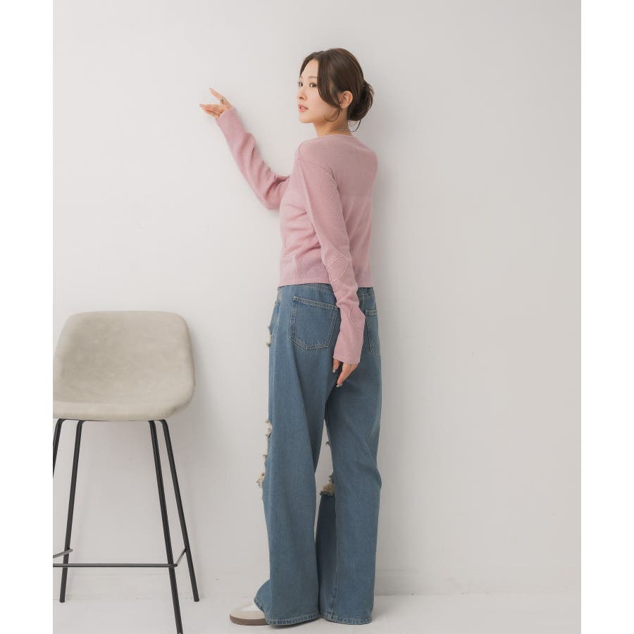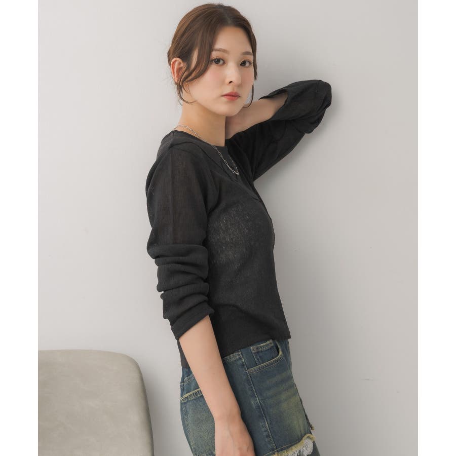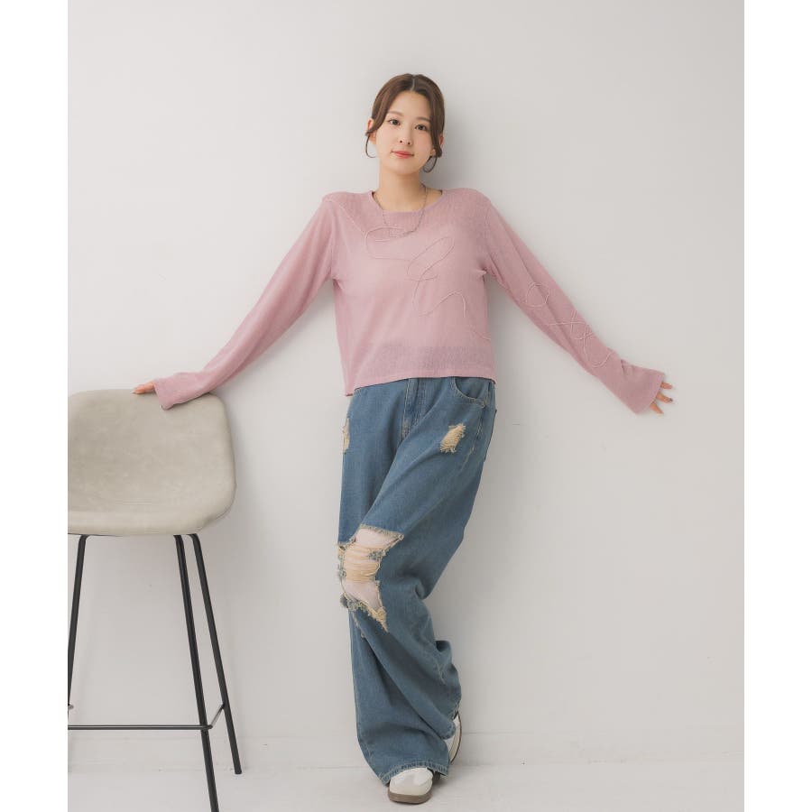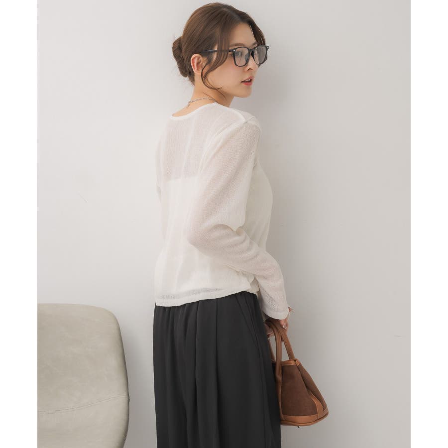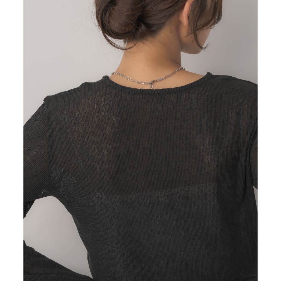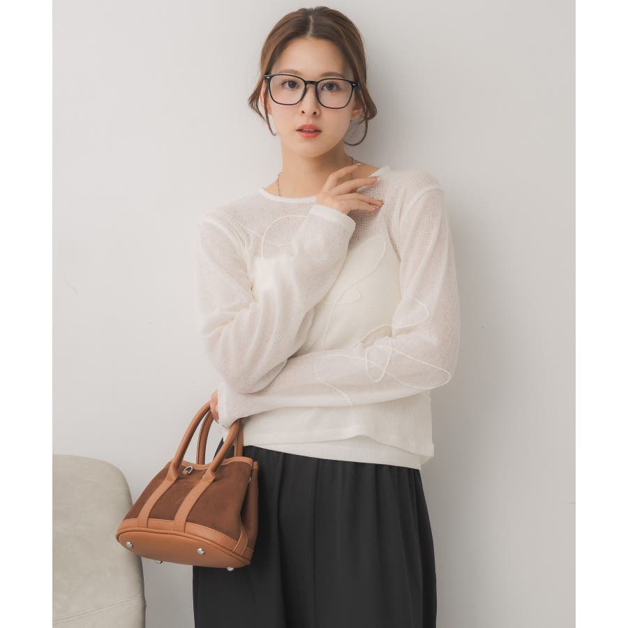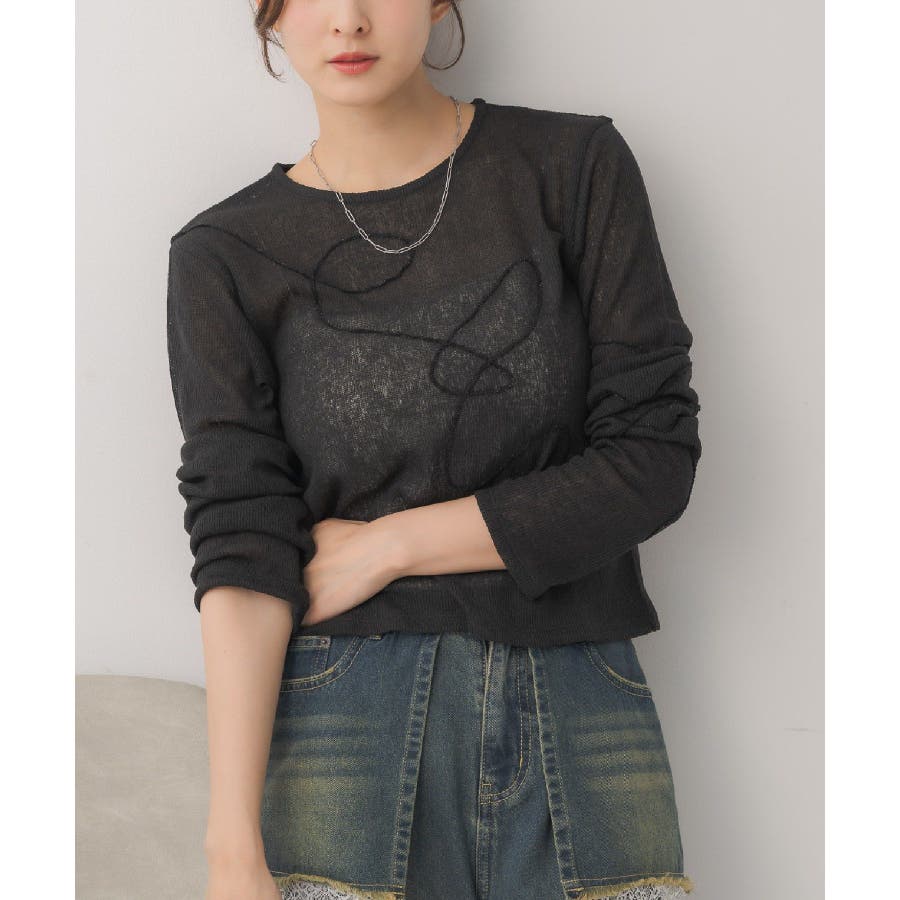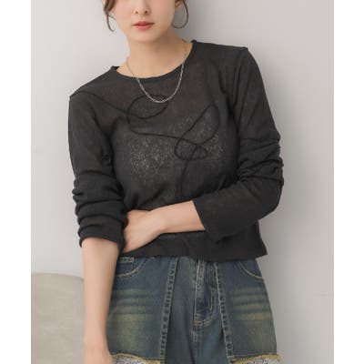 〈春大人気だったニュアンス柄インナーが秋も登場♪〉▼デザイン秋の気温におすすめの透け感のあるインナーアイテム。今年トレンドのモール刺繍でウェーブ柄が描かれています。インナーにセレクトすることで、簡単にトレンドの垢抜けコーデが完成です。▼コーディネートワンピースのインナーにセレクトしてもかわいい1枚。しっかりデザイン性があるので、中にキャミソールを合わせて1枚で着てもコーデがきまります。------------------------------生地感:普通伸縮性:ある透け感:ある裏地:なし------------------------------▼ブランド紹介RETRO GIRL (レトロガール)自分らしい“ベーシックアイテム”と新しい自分の”トレンドアイテム”が見つかる場所今らしいファッションを楽しむ女性のためのブランド#インナー #ニュアンス柄 #モール刺繍 #ウェーブ柄 #春コーデ #ニュアンスライン #秋インナー▼注意事項※撮影環境やモニター環境によって実際の商品とお色味が 多少異なってみえる場合がございます。品番:RP557111T003 / 品名:モール刺繍ロンTEE