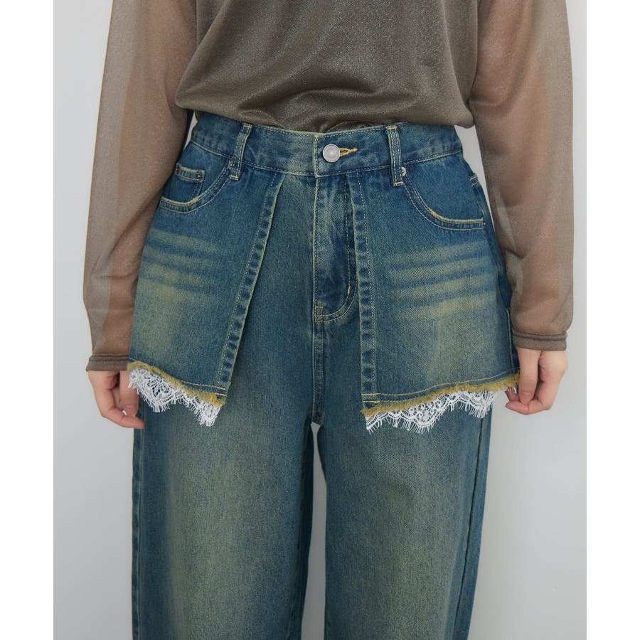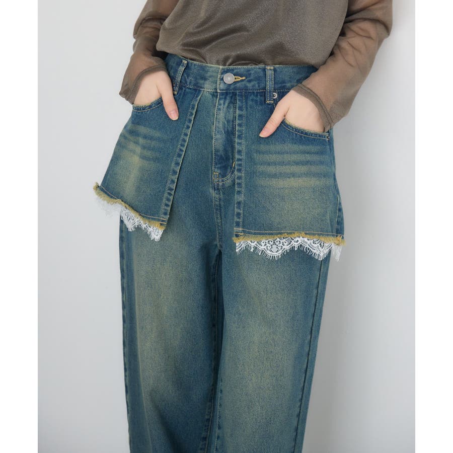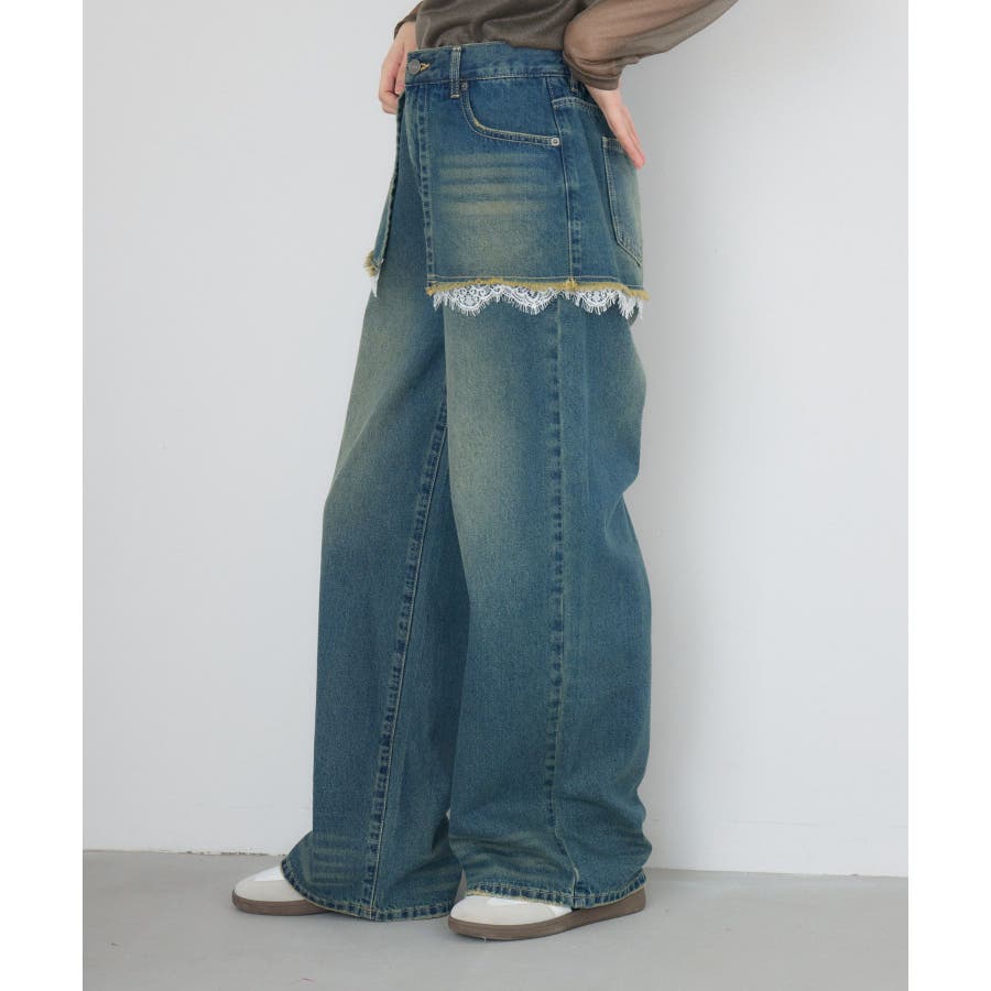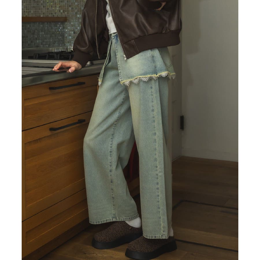 <デザイン性溢れるスカートドッキングデニム>▼デザイン今年らしい個性派デザインなデニムパンツ。同素材のデニムスカートがドッキングされたデザインです。スカート部分の裾にはレースがついていて、甘めなアクセントに。デニム自体のシルエットもややワイドで使いやすい定番デザイン!▼コーディネートダメージ加工がたっぷりなので、カジュアルなトップスと相性抜群◎レースに合わせて甘めなスタイリングでも可愛いです。------------------------------生地感:普通伸縮性:なし透け感:なし裏地:なし------------------------------▼ブランド紹介RETRO GIRL (レトロガール)自分らしい“ベーシックアイテム”と新しい自分の”トレンドアイテム”が見つかる場所今らしいファッションを楽しむ女性のためのブランド#デニム #デニムコーデ #秋アイテム #秋コーデ #加工デニム #デニムパンツ #デザインデニム #ドッキングデザイン▼注意事項※撮影環境やモニター環境によって実際の商品とお色味が多少異なってみえる場合がございます。品番:RA680032T001 / 品名:スカートドッキングデニムPT