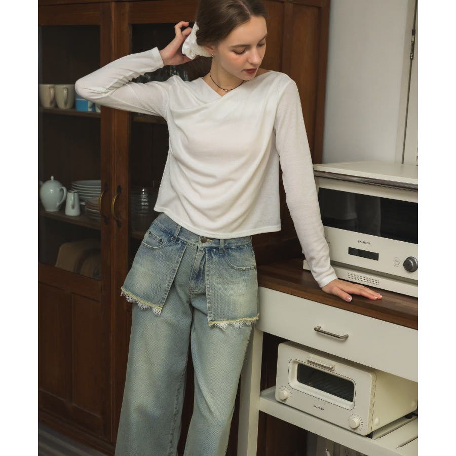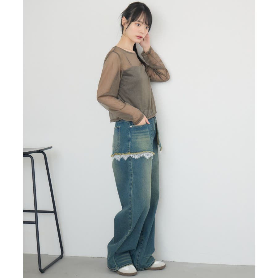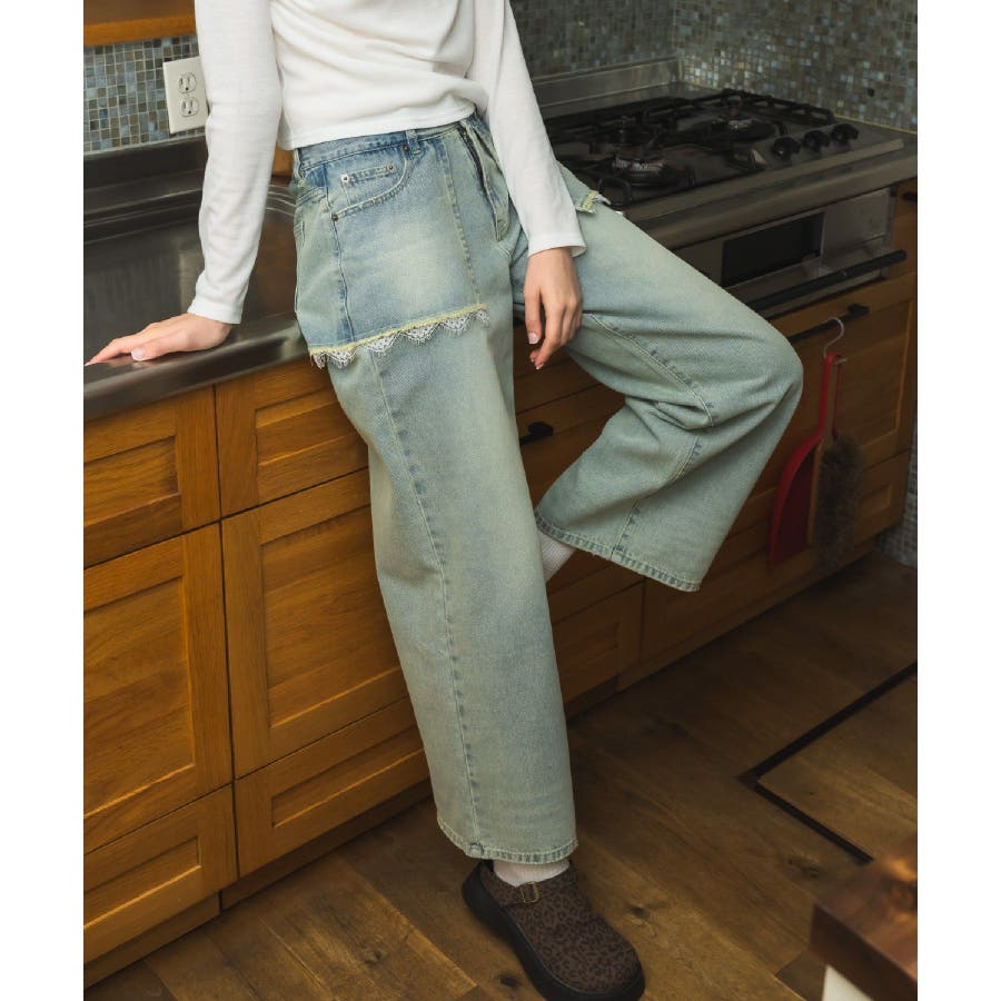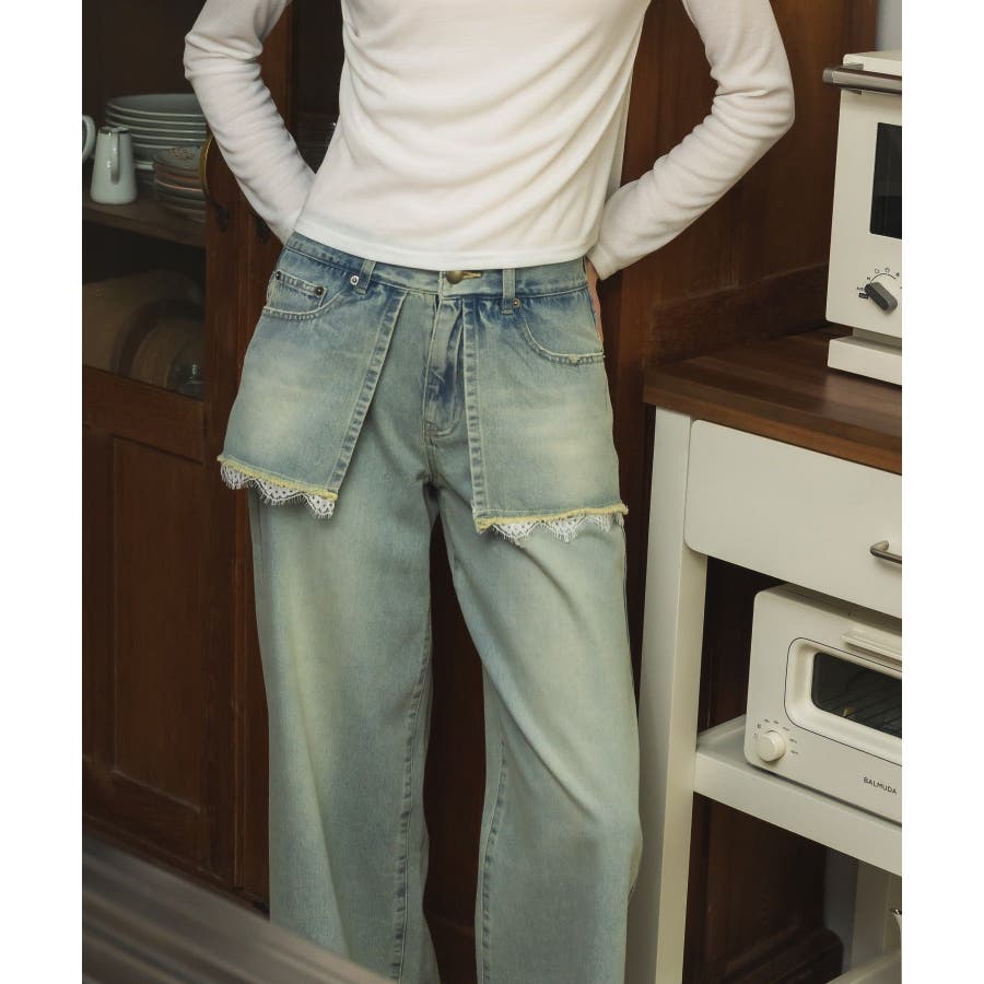 <デザイン性溢れるスカートドッキングデニム>▼デザイン今年らしい個性派デザインなデニムパンツ。同素材のデニムスカートがドッキングされたデザインです。スカート部分の裾にはレースがついていて、甘めなアクセントに。デニム自体のシルエットもややワイドで使いやすい定番デザイン!▼コーディネートダメージ加工がたっぷりなので、カジュアルなトップスと相性抜群◎レースに合わせて甘めなスタイリングでも可愛いです。------------------------------生地感:普通伸縮性:なし透け感:なし裏地:なし------------------------------▼ブランド紹介RETRO GIRL (レトロガール)自分らしい“ベーシックアイテム”と新しい自分の”トレンドアイテム”が見つかる場所今らしいファッションを楽しむ女性のためのブランド#デニム #デニムコーデ #秋アイテム #秋コーデ #加工デニム #デニムパンツ #デザインデニム #ドッキングデザイン▼注意事項※撮影環境やモニター環境によって実際の商品とお色味が多少異なってみえる場合がございます。品番:RA680032T001 / 品名:スカートドッキングデニムPT