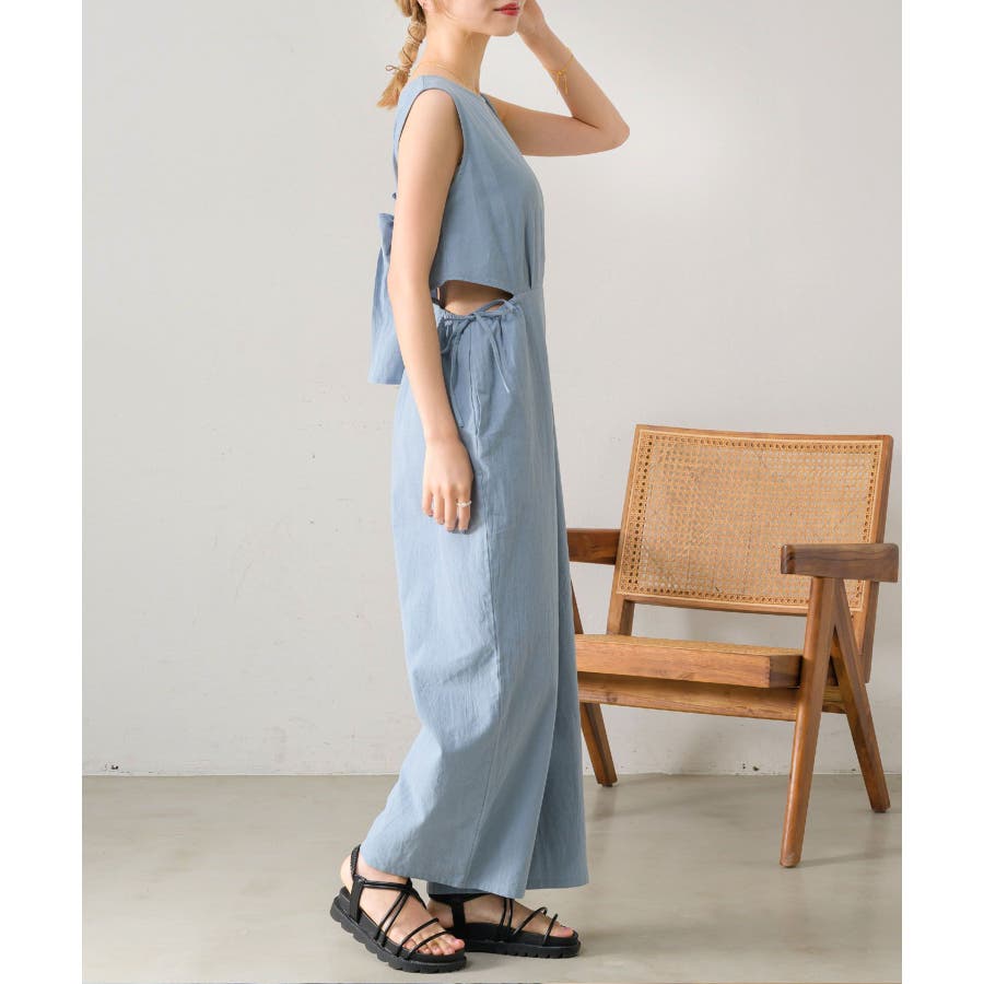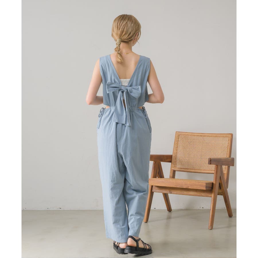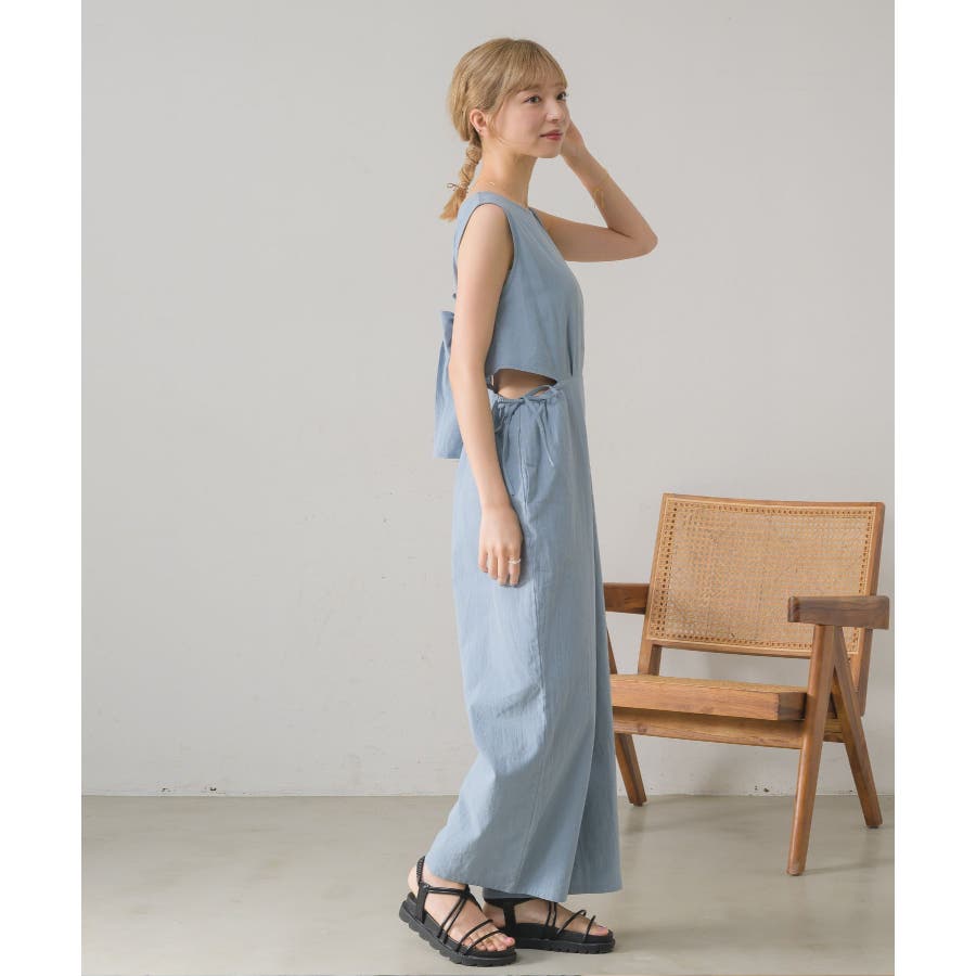 <今年らしいデザインがつまったオールインワン>▼デザインサイドスリットや、バックリボンと、今年らしいトレンドがつまったアイテム!首回りやフロント部分は、シンプルなデザインんなので、ネックレスを付けても相性がいいです。スリット部分にもリボンがついていて、女性らしい印象のアイテムです♪バックリボン1つで着脱が可能なので、夏はプールや海に行く際に水着の上から着るのにも最適です。▼コーディネート背中が開くので、キャミを中に着ての着用がおすすめ!1枚でコーデが完成する楽できるおしゃれアイテム!-----------------------------生地感:普通伸縮性:なし透け感:なし裏地:あり------------------------------▼ブランド紹介RETRO GIRL (レトロガール)自分らしい“ベーシックアイテム”と新しい自分の”トレンドアイテム”が見つかる場所今らしいファッションを楽しむ女性のためのブランド#夏アイテム #夏コーデ #サロペット #オープンサロペット #オールインワン #バックリボン▼注意事項※撮影環境やモニター環境によって実際の商品とお色味が多少異なってみえる場合がございます。品番:RE380032B001 / 品名:サイドオープンオールインワン