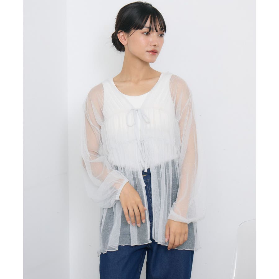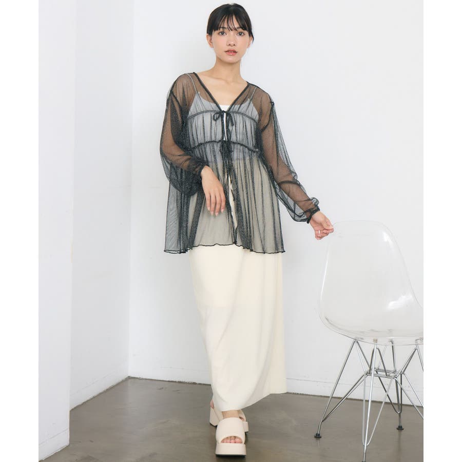 <2サイズで選択肢がいっぱい!夏らしいラメチュールブラウス>▼デザインフロント部分に2段のリボンデザインが輝くブラウスアイテム。今回は光沢感たっぷりのラメがMIXされた1枚。S/Lの2サイズ展開で、着丈や袖丈に違いがあるので、好みのサイズでセレクトして頂けます。メイン使いはもちろん、ゆるっと羽織るのにもおすすめ!▼コーディネートキャミワンピースの上に羽織ったり、マーメイドスカートの上に着ると、リボンブラウスにぴったりのガーリーコーデに!ボトムをカジュアルなパンツやデニムにしても、ブラウスが可愛らしさをプラスしてくれます。-----------------------------生地感:薄手伸縮性:なし透け感:あり裏地:なし------------------------------▼ブランド紹介RETRO GIRL (レトロガール)自分らしい“ベーシックアイテム”と新しい自分の”トレンドアイテム”が見つかる場所今らしいファッションを楽しむ女性のためのブランド#ブラウス #ブラウスコーデ#ブラウスアイテム #ラメ #チュール素材 #フロントリボン▼注意事項※撮影環境やモニター環境によって実際の商品とお色味が 多少異なってみえる場合がございます。品番:RE418123S001 / 品名:ラメチュールリボンBL