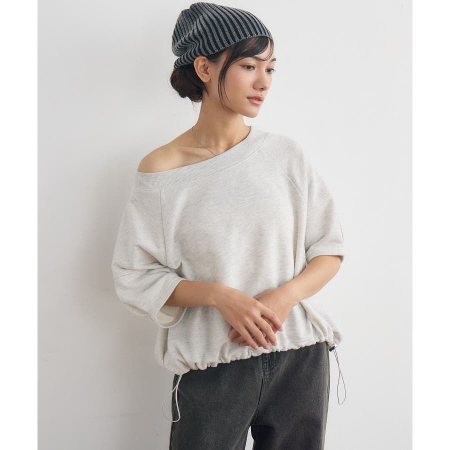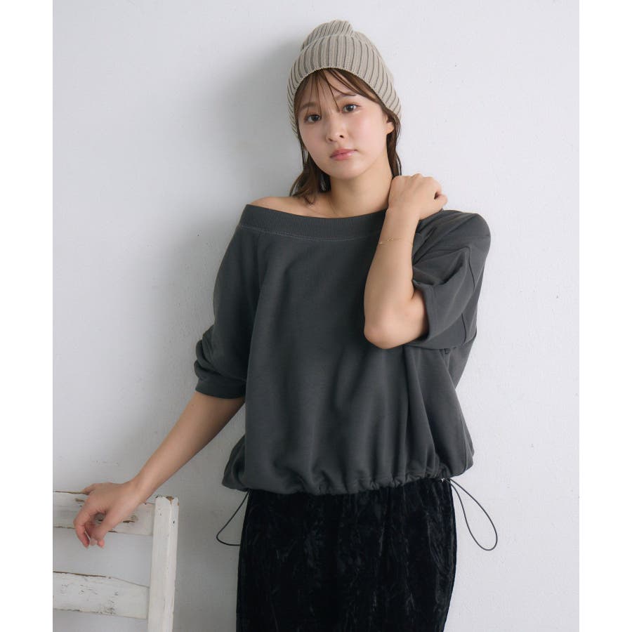 <ワンショルでも着れる涼し気なプルオーバーアイテム>▼デザイン首回りが広めのボートネックデザインが可愛いプルオーバーアイテム。裾はドロストの調整で着丈やシルエットが変更可能です◎袖丈も長く、秋口も着やすいやや厚めの裏毛素材になっています。▼コーディネート今年トレンドのデニムでカジュアルに着こなしたスタイリングがオススメ。甘めに着こなしたい時にはタイトスカートやデザインスカートを合わせてもバランス良く着用いただけます。-----------------------------生地感:やや厚手伸縮性:ある透け感:なし裏地:なし------------------------------▼ブランド紹介RETRO GIRL (レトロガール)自分らしい“ベーシックアイテム”と新しい自分の”トレンドアイテム”が見つかる場所今らしいファッションを楽しむ女性のためのブランド#プルオーバー #ドロストデザイン #カジュアル #ボートネック ▼注意事項※撮影環境やモニター環境によって実際の商品とお色味が多少異なってみえる場合がございます。品番:RE441511B005 / 品名:裏毛ドロストPO