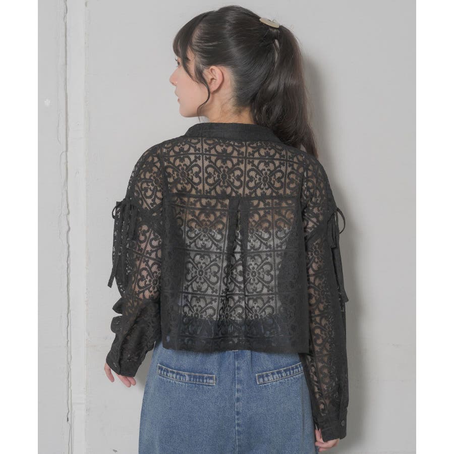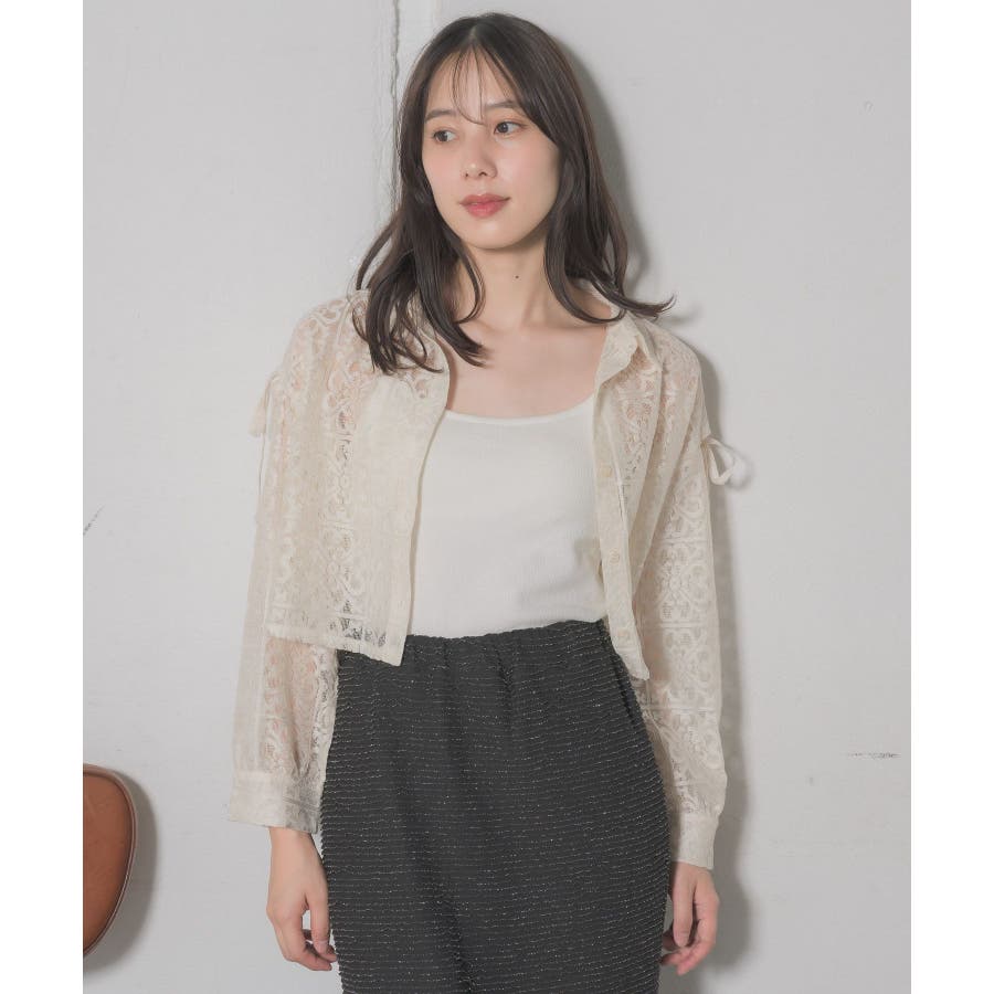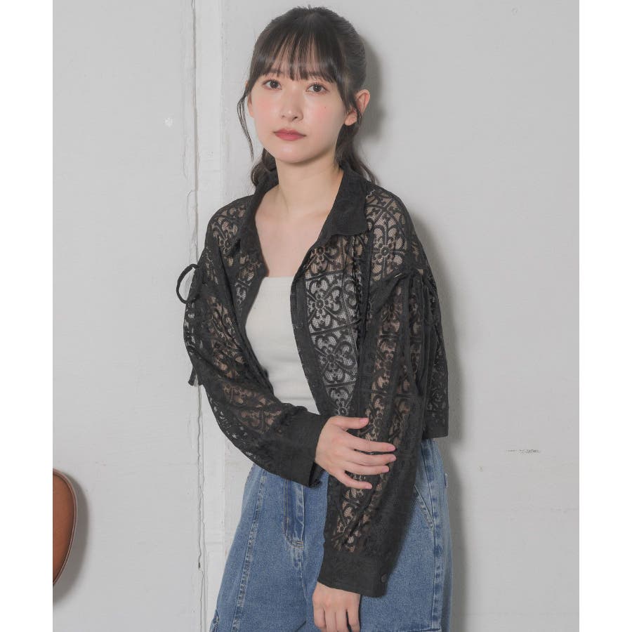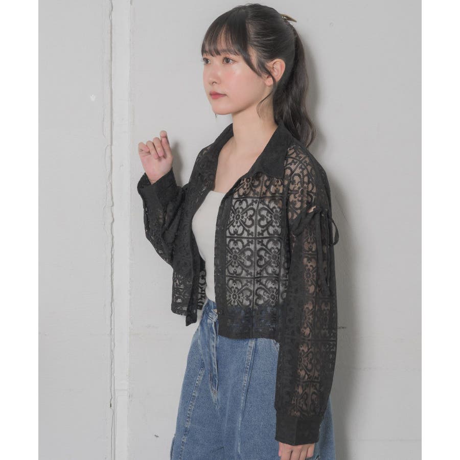 <レース素材で夏の羽織に抜擢したいデザインシャツ>▼デザイン全体的にレース素材でできている女性らしいシャツアイテム。レース素材は風通しも良く、長袖ではありますが涼しく着ていただけます。袖部分にスリットが入っていて、リボンで縛るデザインが甘めなワンポイント!▼コーディネートデニム合わせや、ナイロンパンツ合わせなど、カジュアルコーデにもおすすめです。エアコン下では少し肌寒く感じることのあるノースリーブのサロペットやワンピースの上に羽織るのにも適しているアイテムです。------------------------------生地感:薄手伸縮性:なし透け感:ある裏地:なし------------------------------▼ブランド紹介RETRO GIRL (レトロガール)自分らしい“ベーシックアイテム”と新しい自分の”トレンドアイテム”が見つかる場所今らしいファッションを楽しむ女性のためのブランド#レース #シャツ #ショートシャツ #サマーシャツ ▼注意事項※撮影環境やモニター環境によって実際の商品とお色味が多少異なってみえる場合がございます。品番:RE441523T004 / 品名:レースショートSH