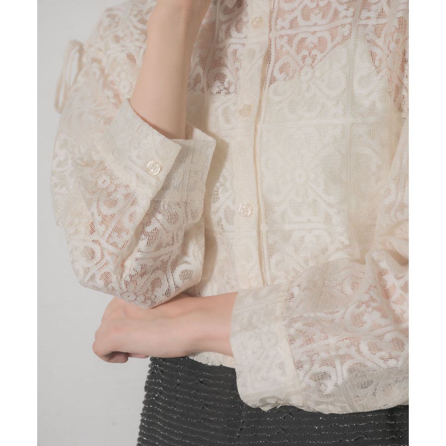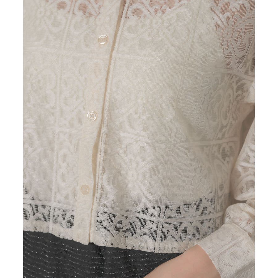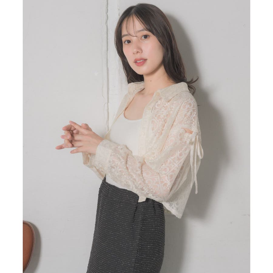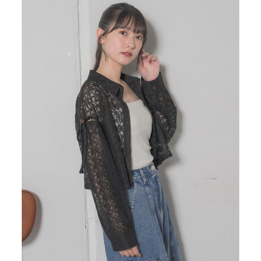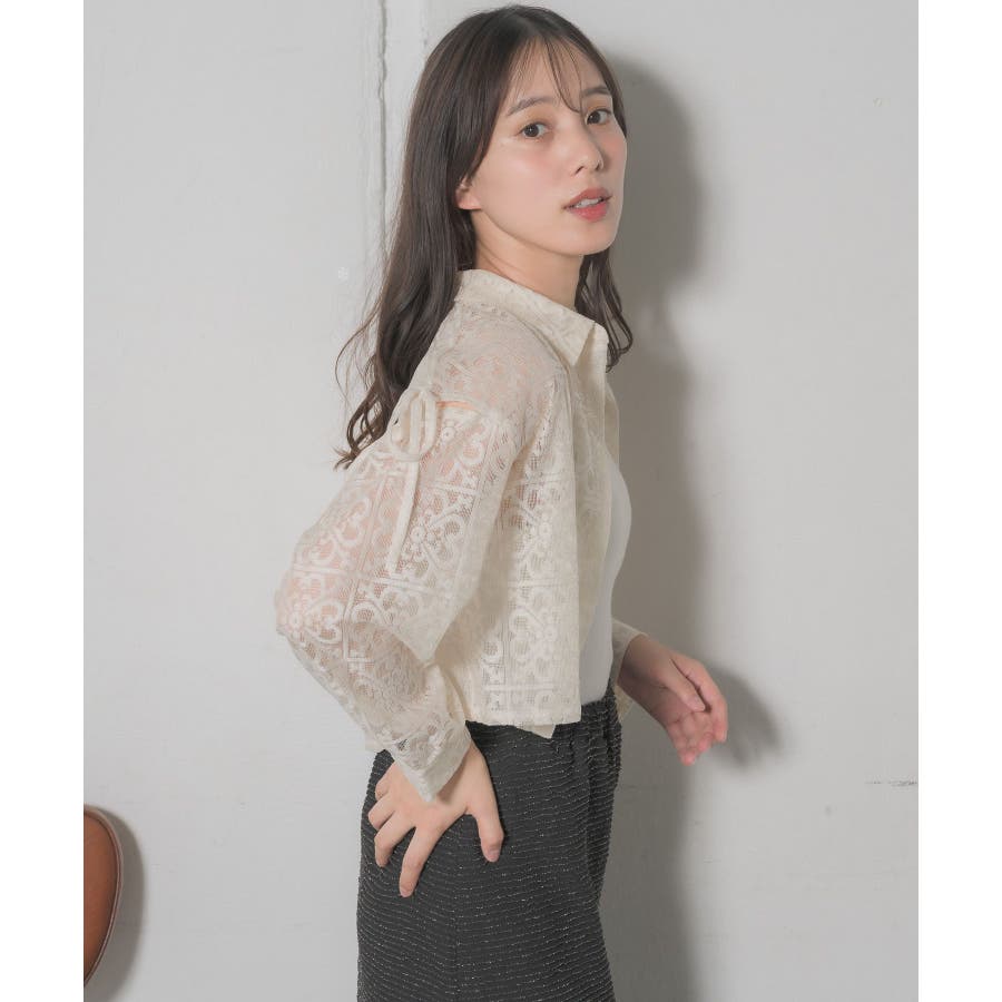 <レース素材で夏の羽織に抜擢したいデザインシャツ>▼デザイン全体的にレース素材でできている女性らしいシャツアイテム。レース素材は風通しも良く、長袖ではありますが涼しく着ていただけます。袖部分にスリットが入っていて、リボンで縛るデザインが甘めなワンポイント!▼コーディネートデニム合わせや、ナイロンパンツ合わせなど、カジュアルコーデにもおすすめです。エアコン下では少し肌寒く感じることのあるノースリーブのサロペットやワンピースの上に羽織るのにも適しているアイテムです。------------------------------生地感:薄手伸縮性:なし透け感:ある裏地:なし------------------------------▼ブランド紹介RETRO GIRL (レトロガール)自分らしい“ベーシックアイテム”と新しい自分の”トレンドアイテム”が見つかる場所今らしいファッションを楽しむ女性のためのブランド#レース #シャツ #ショートシャツ #サマーシャツ ▼注意事項※撮影環境やモニター環境によって実際の商品とお色味が多少異なってみえる場合がございます。品番:RE441523T004 / 品名:レースショートSH