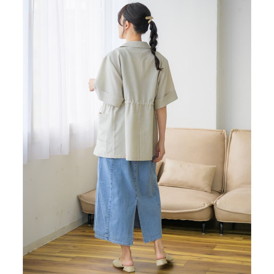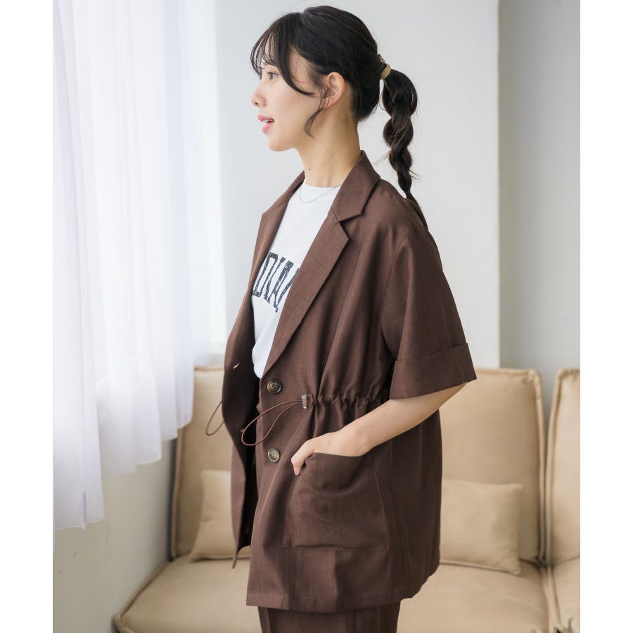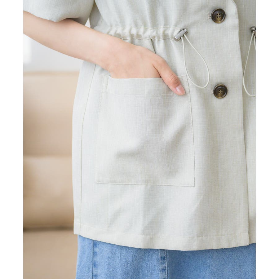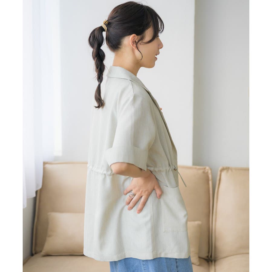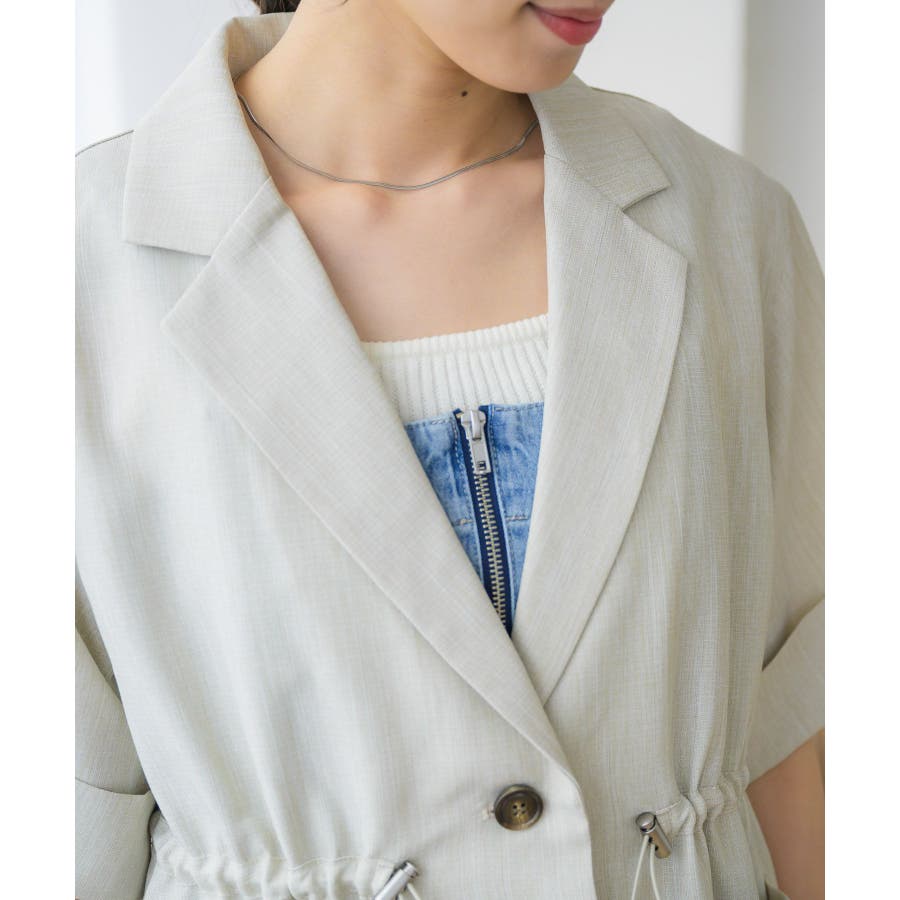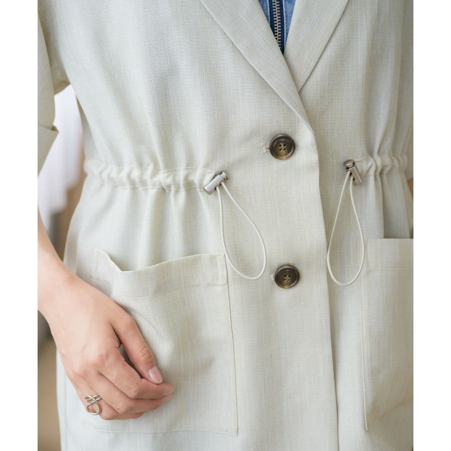 <麻ライクな軽い素材で夏に着やすいテーラードジャケット>▼デザイン夏に着やすい軽い素材が魅力のテーラードジャケット。ウエストにはドロストデザインがついているので、ジャケットでありながらどこかラフにカジュアルに着て頂けます。絞り具合でシルエットも変更できるので、コーデに合わせて自分流にアレンジ♪▼コーディネート麻ライクラフパンツとキルトセットアップで着て頂けます。ワンピースの上に羽織るのもおすすめです。------------------------------生地感:やや薄手伸縮性:なし透け感:ほぼなし裏地:なし-----------------------------▼ブランド紹介RETRO GIRL (レトロガール)自分らしい“ベーシックアイテム”と新しい自分の”トレンドアイテム”が見つかる場所今らしいファッションを楽しむ女性のためのブランド#ドロスト #サマージャケット #ジャケット ▼注意事項※撮影環境やモニター環境によって実際の商品とお色味が 多少異なってみえる場合がございます。品番:RE456621T001 / 品名:ドロストテーラードJK