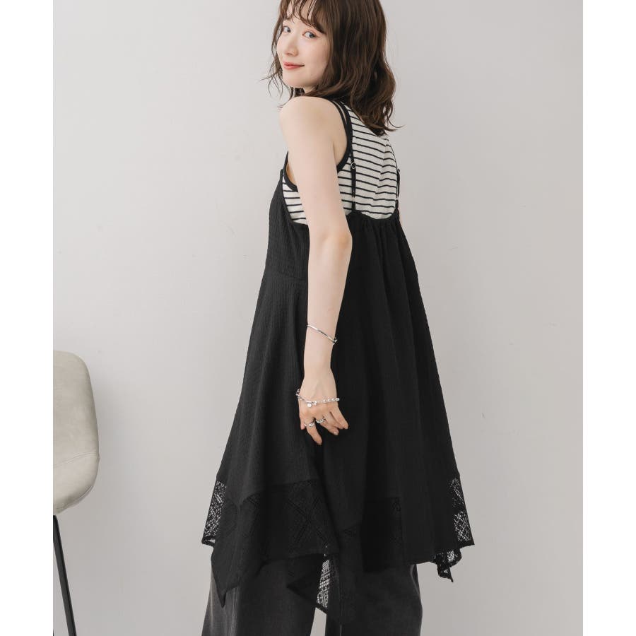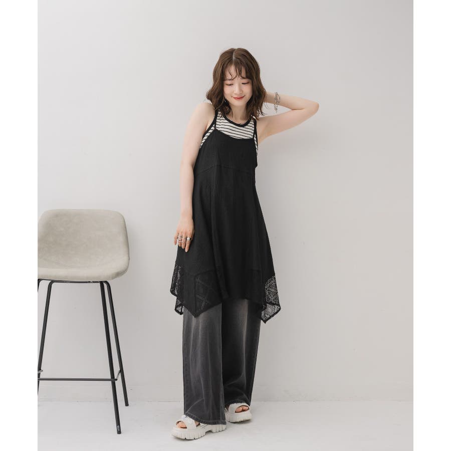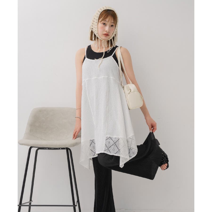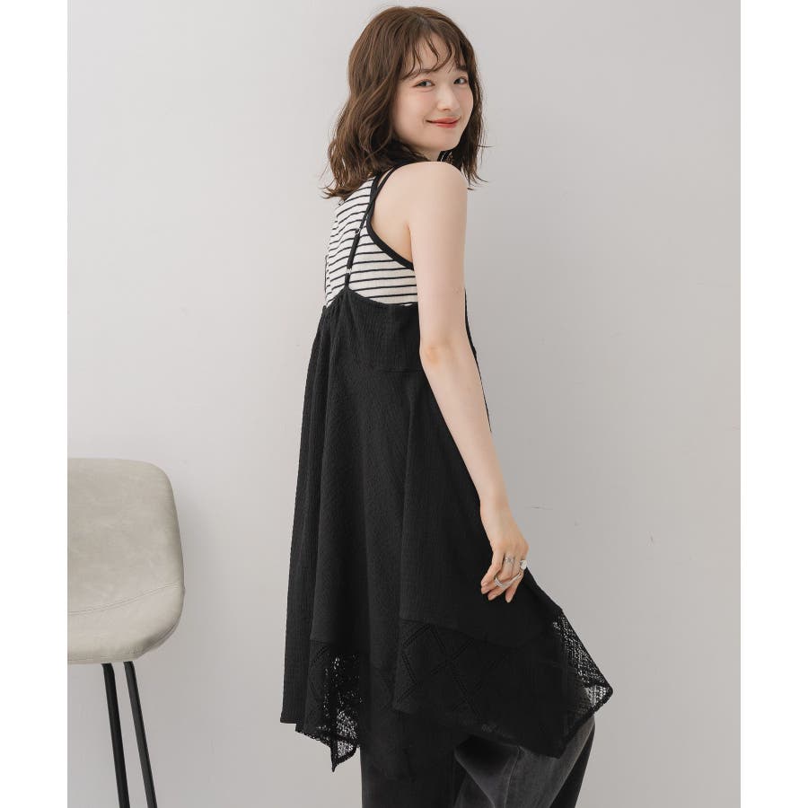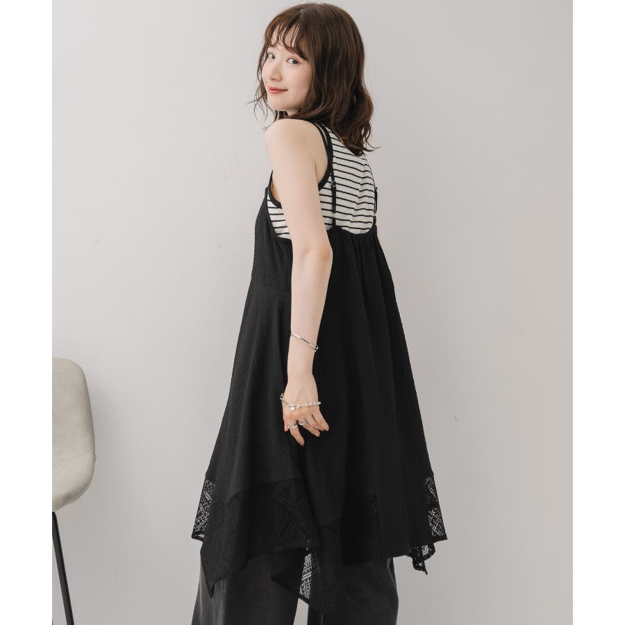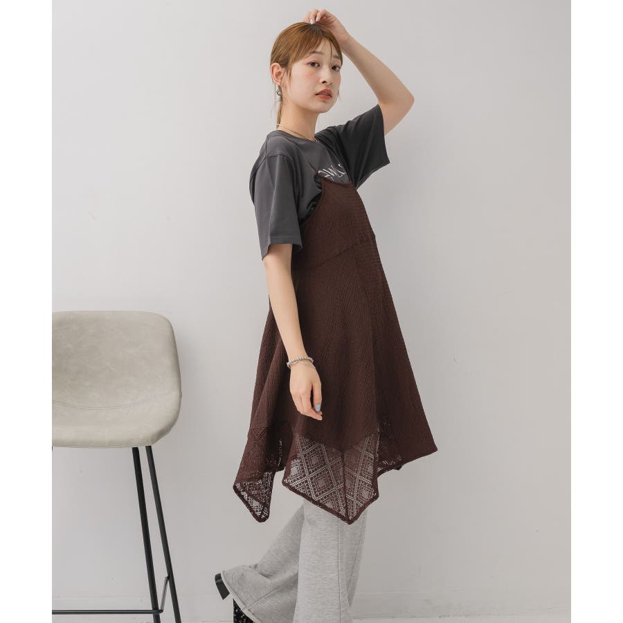 <裾の透け感が可愛いチュニックワンピース>▼デザイン今年トレンドのレイヤードミニワンピース。イレヘムになっていて、非対称な裾の広がりがオシャレなワンポイント!裾はレースになっていて、透け感が夏らしく涼し気な印象に。▼コーディネートトップスはTシャツからタンクなど気温に合わせて袖丈や素材を調節◎裏地はついていないので、デニムパンツやスウェットパンツでカジュアルに合わせてみて!------------------------------生地感:やや薄手伸縮性:ある透け感:ある裏地:なし------------------------------▼ブランド紹介RETRO GIRL (レトロガール)自分らしい“ベーシックアイテム”と新しい自分の”トレンドアイテム”が見つかる場所今らしいファッションを楽しむ女性のためのブランド#ビスチェ #ワンピース #レイヤードワンピース #トレンドアイテム #トレンドビスチェ #レーススカート▼注意事項※撮影環境やモニター環境によって実際の商品とお色味が 多少異なってみえる場合がございます。品番:RE537522T001 / 品名:イレヘムレースチュニックOP