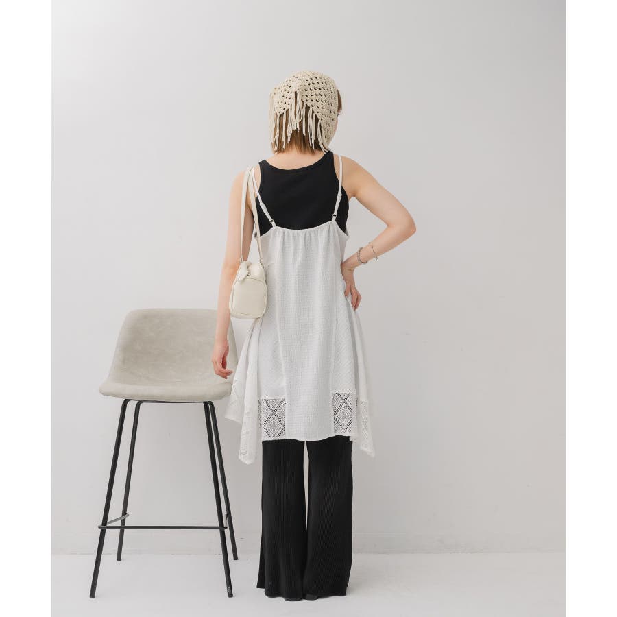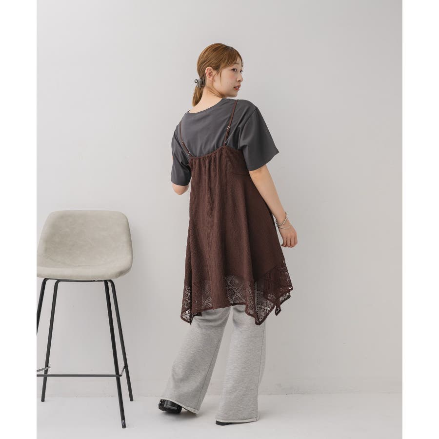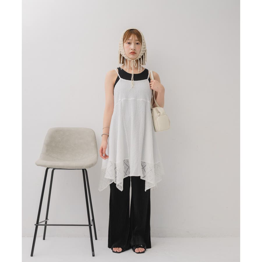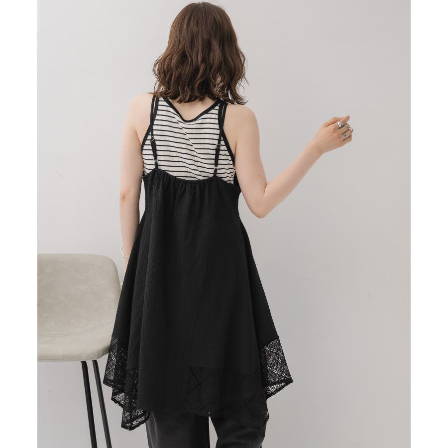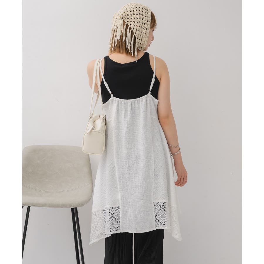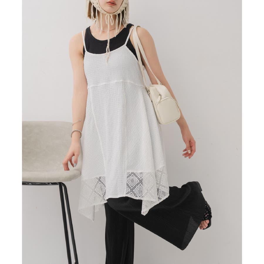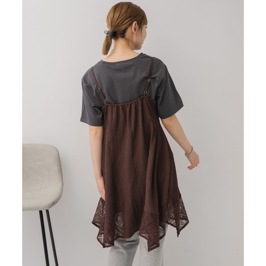 <裾の透け感が可愛いチュニックワンピース>▼デザイン今年トレンドのレイヤードミニワンピース。イレヘムになっていて、非対称な裾の広がりがオシャレなワンポイント!裾はレースになっていて、透け感が夏らしく涼し気な印象に。▼コーディネートトップスはTシャツからタンクなど気温に合わせて袖丈や素材を調節◎裏地はついていないので、デニムパンツやスウェットパンツでカジュアルに合わせてみて!------------------------------生地感:やや薄手伸縮性:ある透け感:ある裏地:なし------------------------------▼ブランド紹介RETRO GIRL (レトロガール)自分らしい“ベーシックアイテム”と新しい自分の”トレンドアイテム”が見つかる場所今らしいファッションを楽しむ女性のためのブランド#ビスチェ #ワンピース #レイヤードワンピース #トレンドアイテム #トレンドビスチェ #レーススカート▼注意事項※撮影環境やモニター環境によって実際の商品とお色味が 多少異なってみえる場合がございます。品番:RE537522T001 / 品名:イレヘムレースチュニックOP