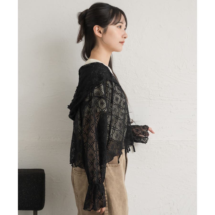 〈レース素材で秋まで使えるフーディーアイテム〉▼デザインレース素材で甘めなスタイリングにもピッタリなフーディーアイテム。フロントリボンで着脱可能で、夏に使いやすい1枚。袖口もキャンディスリーブでシルエットや素材からも女性らしい雰囲気に♪▼コーディネート夏はキャミソールやTシャツの上に羽織るのがおすすめ♪秋は中に仕込んで上からトレーナーをレイヤードしてレースのフードを出すスタイリングも可愛いです。------------------------------生地感:薄手伸縮性:なし透け感:ある裏地:なし------------------------------▼ブランド紹介RETRO GIRL (レトロガール)自分らしい“ベーシックアイテム”と新しい自分の”トレンドアイテム”が見つかる場所今らしいファッションを楽しむ女性のためのブランド#レース #レースアイテム #フーディ #韓国コーデ #レイヤードコーデ #トレンドコーデ▼注意事項※撮影環境やモニター環境によって実際の商品とお色味が 多少異なってみえる場合がございます。品番:RE541511B001 / 品名:レースフーディ