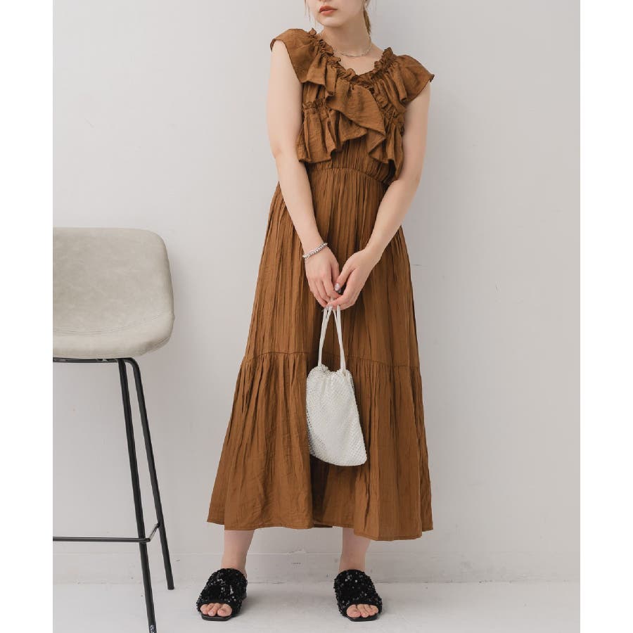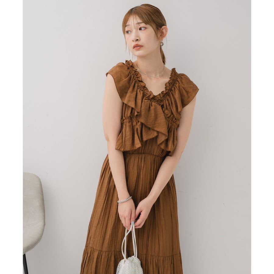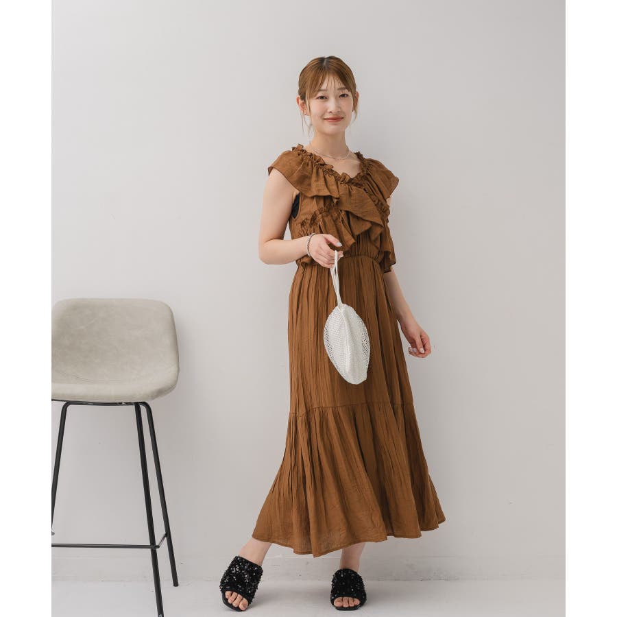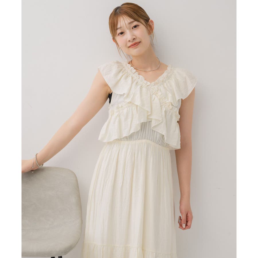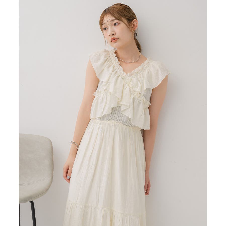 <華やかな首回りのサマーノースリワンピース>▼デザイン胸元にクロスデザインでフリルがデザインされた華やかなワンピース。首回りはゴムになっているので、オフショルスタイルも楽しんで頂けます。裾部分に切り替えが入っていて、ふわっと広がるシルエットが女性らしい。胸元にボリューム感がプラスされる、ウェーブさん優勝アイテムです。▼コーディネート1枚でコーデが完成するワンピース。フリルは大きく、二の腕部分もカバーしてくれます◎-----------------------------生地感:普通伸縮性:なし透け感:なし裏地:ある------------------------------▼ブランド紹介RETRO GIRL (レトロガール)自分らしい“ベーシックアイテム”と新しい自分の”トレンドアイテム”が見つかる場所今らしいファッションを楽しむ女性のためのブランド#ワンピース #フリルワンピース #夏コーデ #オフショルダー #オフショルワンピース▼注意事項※撮影環境やモニター環境によって実際の商品とお色味が 多少異なってみえる場合がございます。品番:RE555822T001 / 品名:フリルギャザーOP