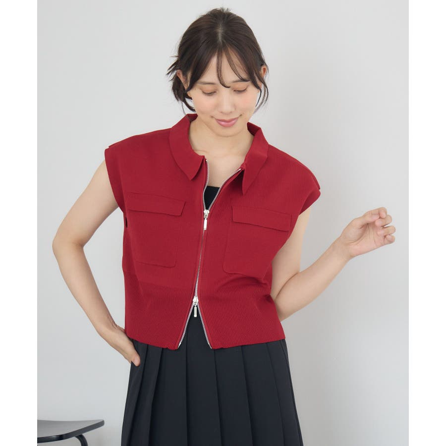 <伸縮性のあるWZIPニットベスト>▼デザイン昨年に引き続き大人気を頂いているWZIPアイテム。伸縮性のある素材感で、しっかりした素材が魅力です。ノースリデザインなので、夏も涼しく着て頂けます。胸元に大きなポケットがついているので、機能性も抜群◎▼コーディネートボトムはデニムパンツやスウェットパンツと合わせてかっこいいスタイルに◎レッドのカラーは彩度が高く、夏のスタイリングを華やかにしてくれます。ニット帽を取り入れて秋要素をプラスするのもおすすめです♪------------------------------生地感:普通伸縮性:ある透け感:なし裏地:なし-----------------------------▼ブランド紹介RETRO GIRL (レトロガール)自分らしい“ベーシックアイテム”と新しい自分の”トレンドアイテム”が見つかる場所今らしいファッションを楽しむ女性のためのブランド#ジップニット #サマーニット #ノースリニット #ニット #夏アイテム #ダブルジップ #ベスト▼注意事項※撮影環境やモニター環境によって実際の商品とお色味が多少異なってみえる場合がございます。品番:RE556412B001 / 品名:WZIPポリNTベスト