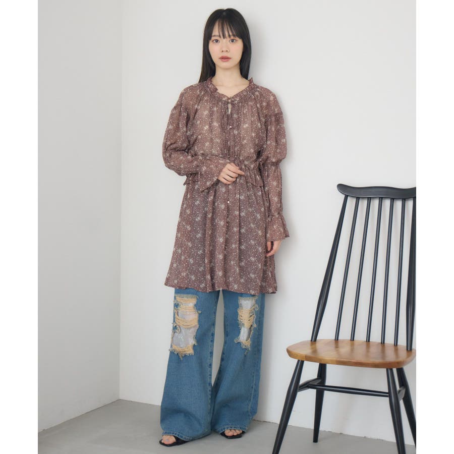 <森ガールスタイルにもおすすめな花柄ワンピース>▼デザイン小花柄が華やかなワンピース。シフォン素材で柔らかい生地感なので、秋の気温にピッタリです。ウエスト部分の左右はシャーリングできるので、シルエットのアレンジも可能◎今話題の森ガールっぽいテイストのスタイリングにもおすすめ!▼コーディネート透け感のあるワンピースなので、レイヤードスタイルがマスト!デニムパンツとレイヤードするのが今年らしい♪上からツイルベストを合わせて森ガールコーデもおすすめ!-----------------------------生地感:普通伸縮性:なし透け感:ある裏地:なし------------------------------▼ブランド紹介RETRO GIRL (レトロガール)自分らしい“ベーシックアイテム”と新しい自分の”トレンドアイテム”が見つかる場所今らしいファッションを楽しむ女性のためのブランド#ワンピース #花柄 #花柄コーデ #花柄ワンピース #チュニック #森ガール▼注意事項※撮影環境やモニター環境によって実際の商品とお色味が 多少異なってみえる場合がございます。品番:RE556422T001 / 品名:花柄シフォンチュニックOP