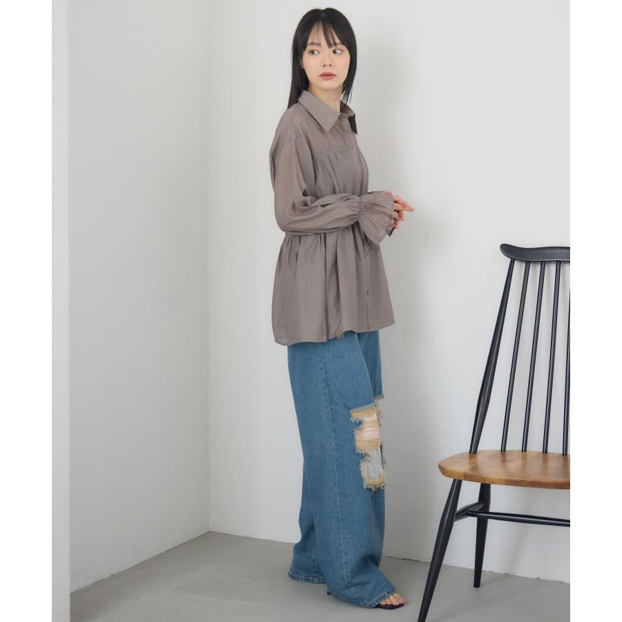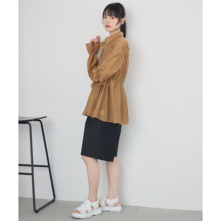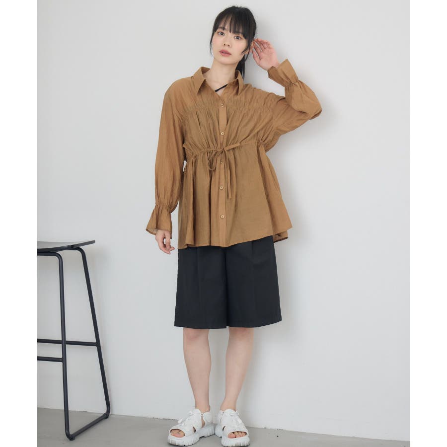 <透け感が夏らしいシャーリング大人シャツアイテム>▼デザインシンプルでどんなコーデにも合わせやすいシャツアイテム。ウエスト部分はシャーリング機能がついていて、ウエストのメリハリを強調することが可能◎スタイルアップ効果も期待できます。前を開けて羽織スタイルで着用してもコーデにぐっと抜け感を加えてくれます。▼コーディネートカジュアルにスウェット合わせをしても似合いやすいデザインです。ワンピースに羽織って甘めの夏コーデにアクセントを添えるのも◎-----------------------------生地感:普通伸縮性:なし透け感:ある裏地:なし------------------------------▼ブランド紹介RETRO GIRL (レトロガール)自分らしい“ベーシックアイテム”と新しい自分の”トレンドアイテム”が見つかる場所今らしいファッションを楽しむ女性のためのブランド#シャツ #シャツコーデ #シンプル #シャツアイテム #ドロスト #大人コーデ #シアーシャツ▼注意事項※撮影環境やモニター環境によって実際の商品とお色味が 多少異なってみえる場合がございます。品番:RE556423T001 / 品名:シャーリングペプラムSH