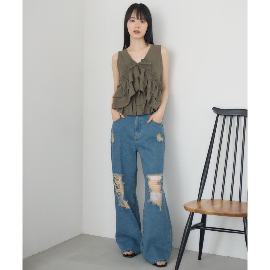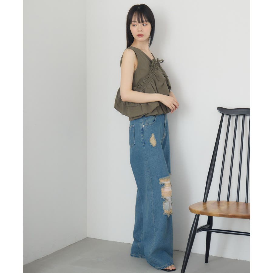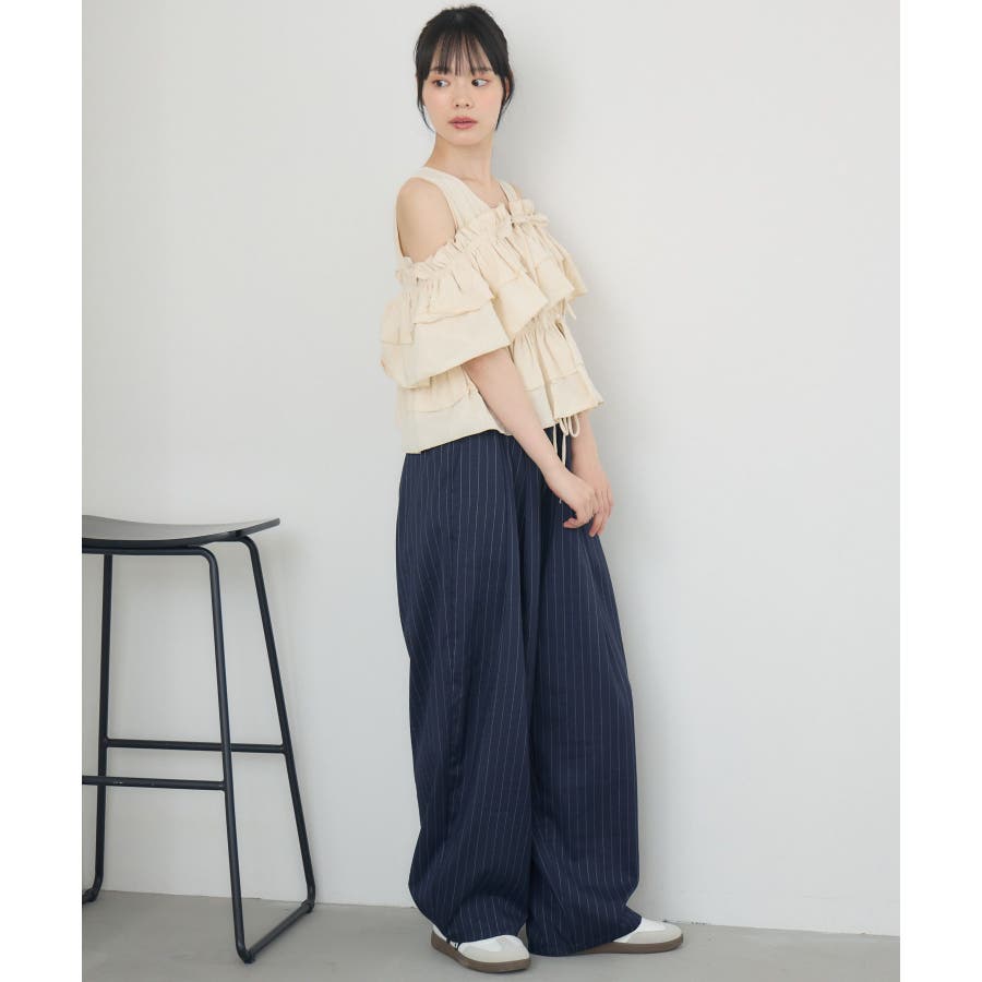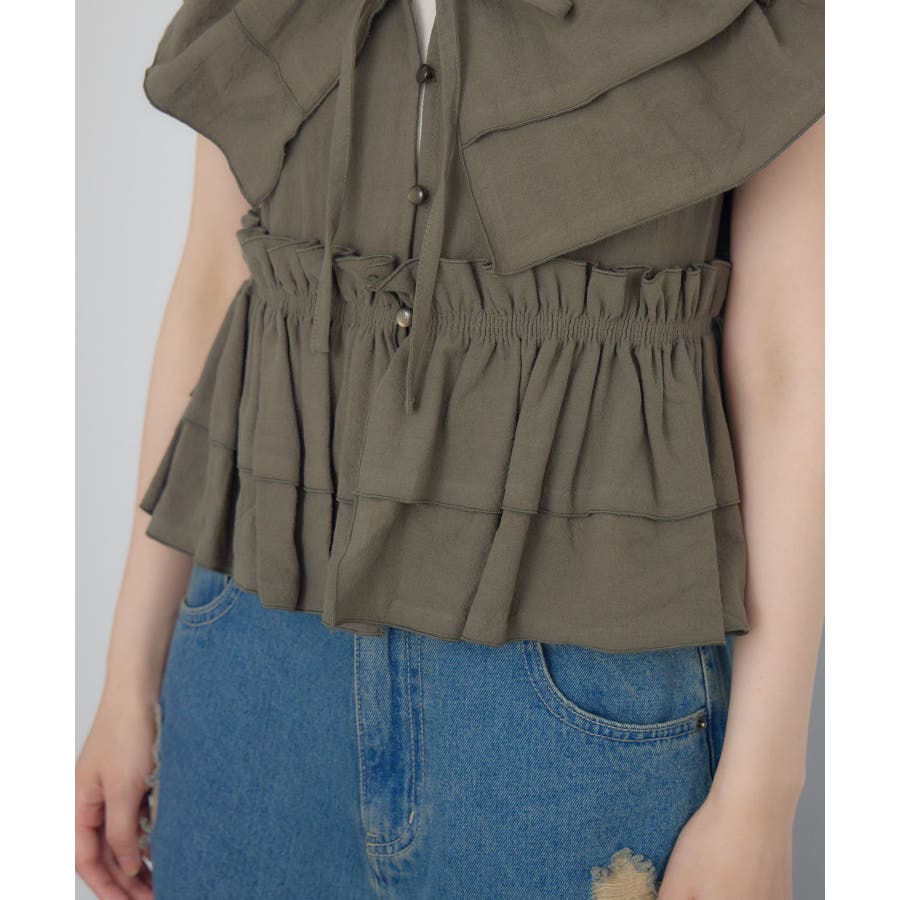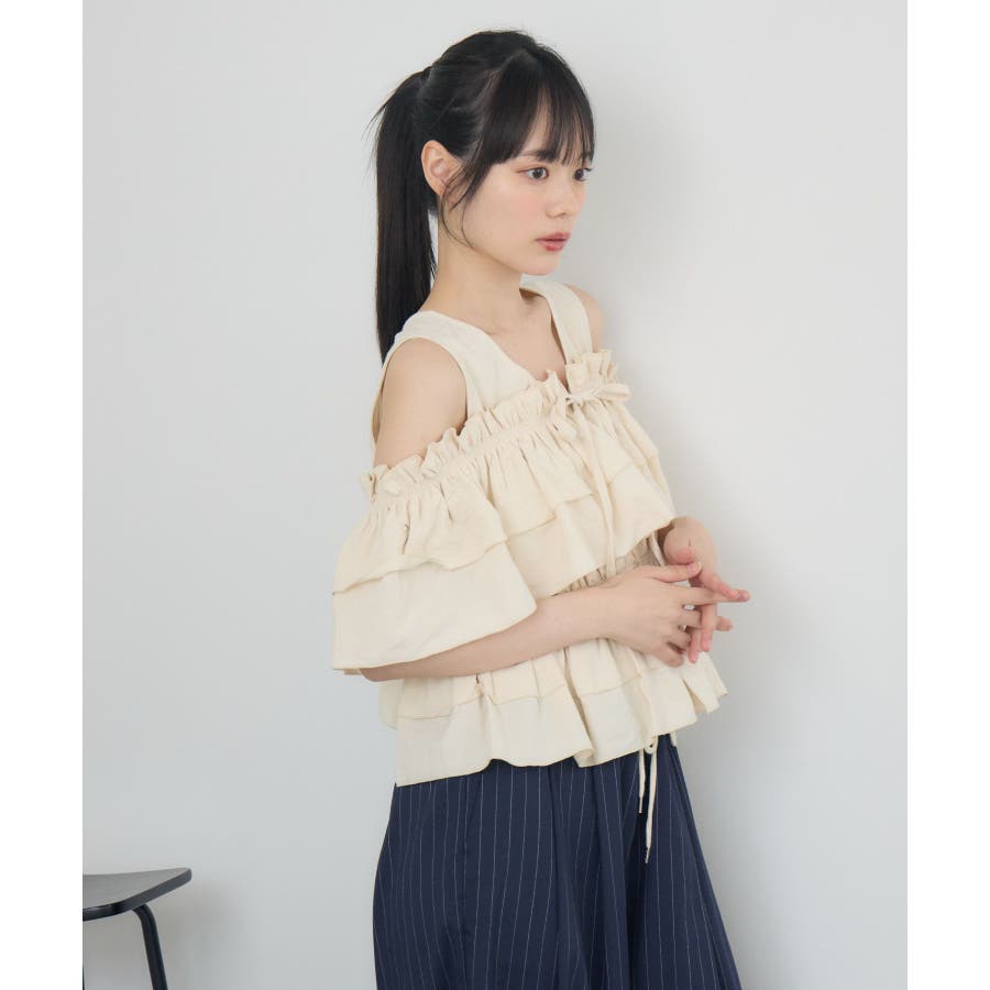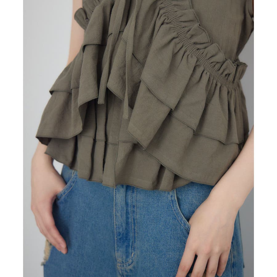 <大人気だった4wayのマルチブラウス>▼デザイン前回大人気を頂いたブラウスアイテムが再登場。1、定番のノースリフリルブラウス2,ノースリ裾フリルブラウス3,オフショルダーブラウス4,斜めにたすき掛けフリルブラウス1枚で4つの着こなしが楽しめるので、圧倒的着回し力。グリーンのカラーは一気に秋めくおすすめカラーです。▼コーディネートボトムを選ばない使いやすいデザイン。フェミニン綺麗めコーデが得意なブラウスアイテムです。フレアスカートと合わせてキレイめコーデや、スウェットパンツと合わせてカジュアルなスタイリングも♪------------------------------生地感:普通伸縮性:ある透け感:なし(ホワイトのみ少しあり)裏地:なし------------------------------▼ブランド紹介RETRO GIRL (レトロガール)自分らしい“ベーシックアイテム”と新しい自分の”トレンドアイテム”が見つかる場所今らしいファッションを楽しむ女性のためのブランド#ブラウス #フリル #フリルブラウス #トレンドアイテム #甘めブラウス #たすき掛け #マルチウェイ #夏コーデ▼注意事項※撮影環境やモニター環境によって実際の商品とお色味が 多少異なってみえる場合がございます。品番:RE556423T002 / 品名:マルチWAYノースリBL