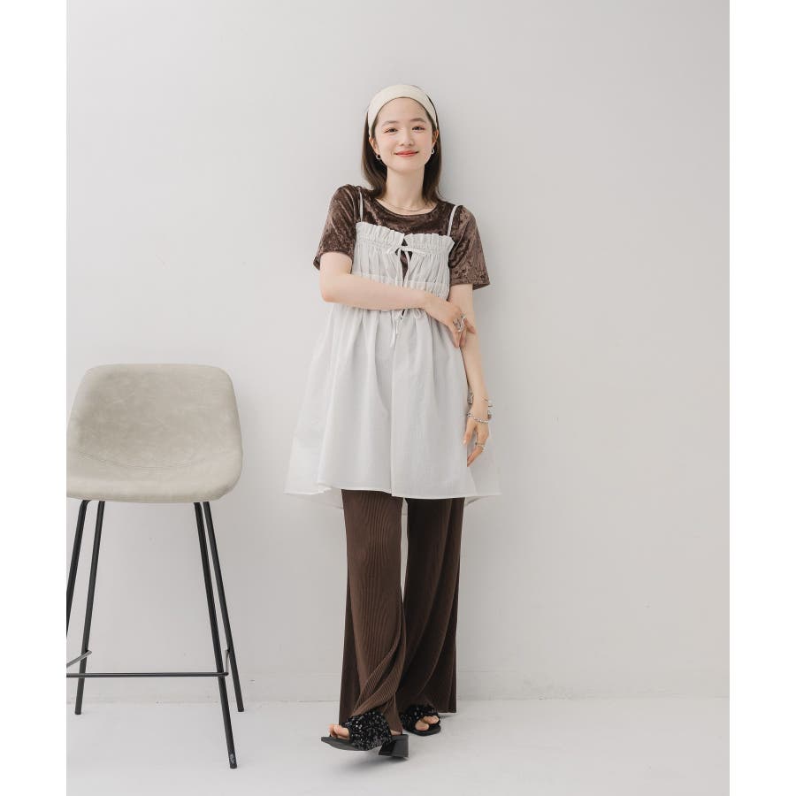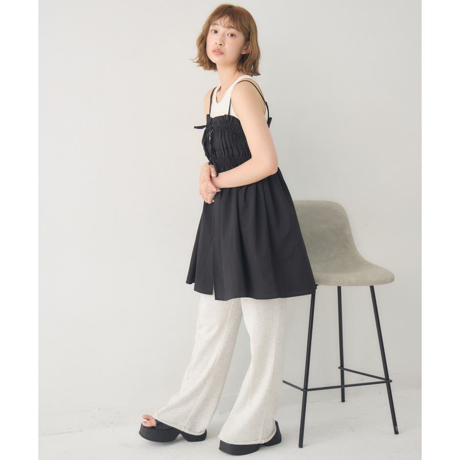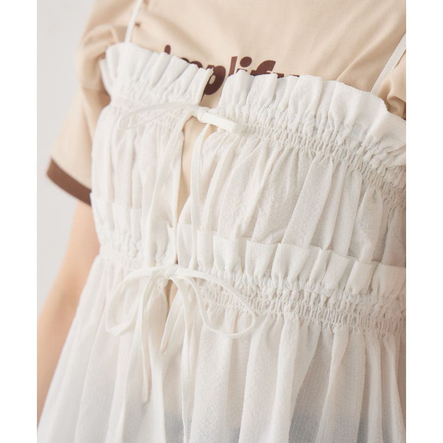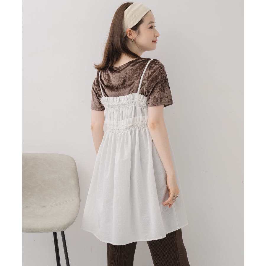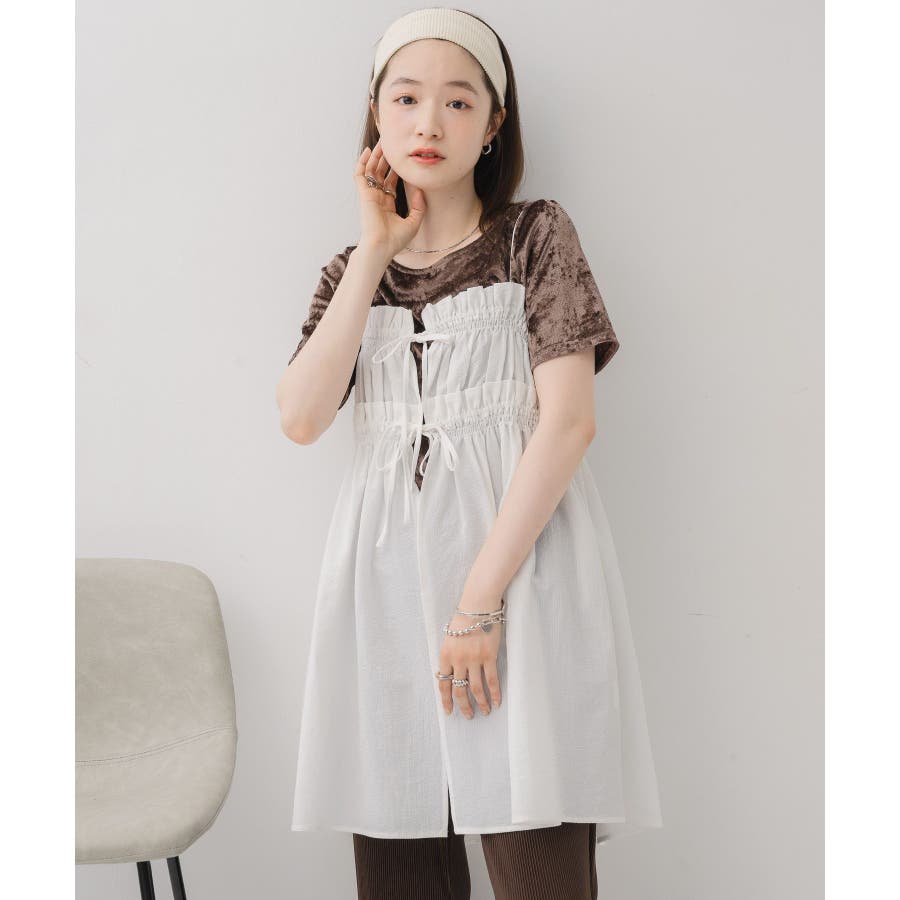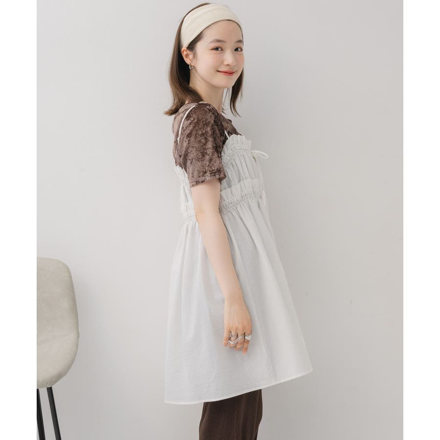 <今年大人気のレイヤード用ワンピース>▼デザイン今年トレンドのレイヤードミニワンピース。胸元はシャーリングされていて、華やかなデザインに。センター部分はスリットになっているので、インナーとレイヤードしてご着用ください。着丈はアジャスター付きで体型に合わせてアレンジ可能です♪▼コーディネートトップスはTシャツからタンクなど気温に合わせて袖丈や素材を調節◎裏地はついていないので、デニムパンツやスウェットパンツでカジュアルに合わせてみて!------------------------------生地感:やや薄手伸縮性:なし透け感:多少ある裏地:なし------------------------------▼ブランド紹介RETRO GIRL (レトロガール)自分らしい“ベーシックアイテム”と新しい自分の”トレンドアイテム”が見つかる場所今らしいファッションを楽しむ女性のためのブランド#ビスチェ #ワンピース #レイヤードワンピース #トレンドアイテム #トレンドビスチェ #レーススカート▼注意事項※撮影環境やモニター環境によって実際の商品とお色味が 多少異なってみえる場合がございます。品番:RE556622T001 / 品名:キャミフリルチュニックOP