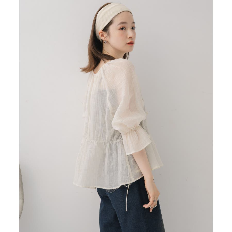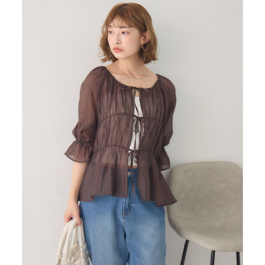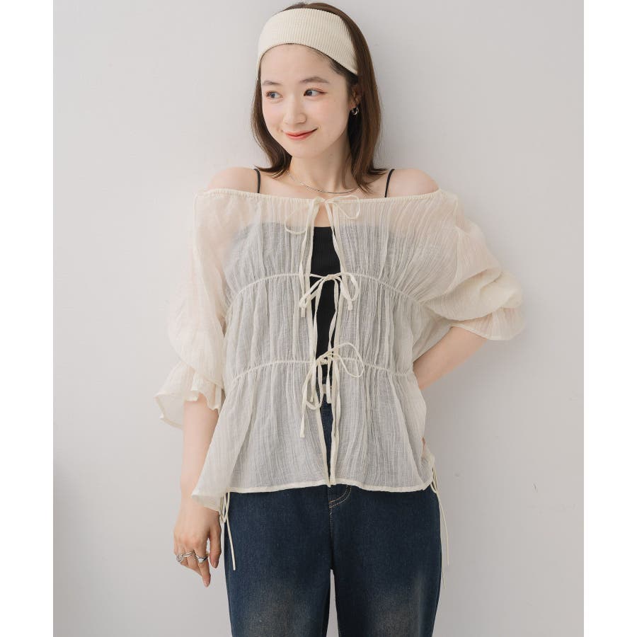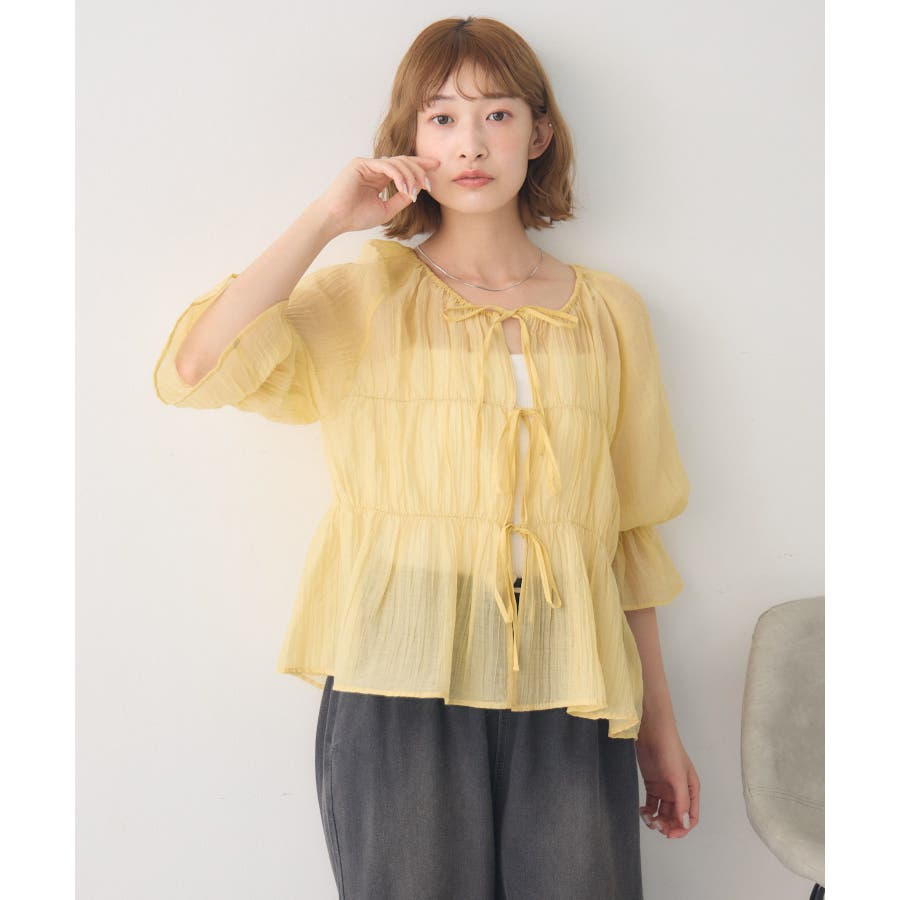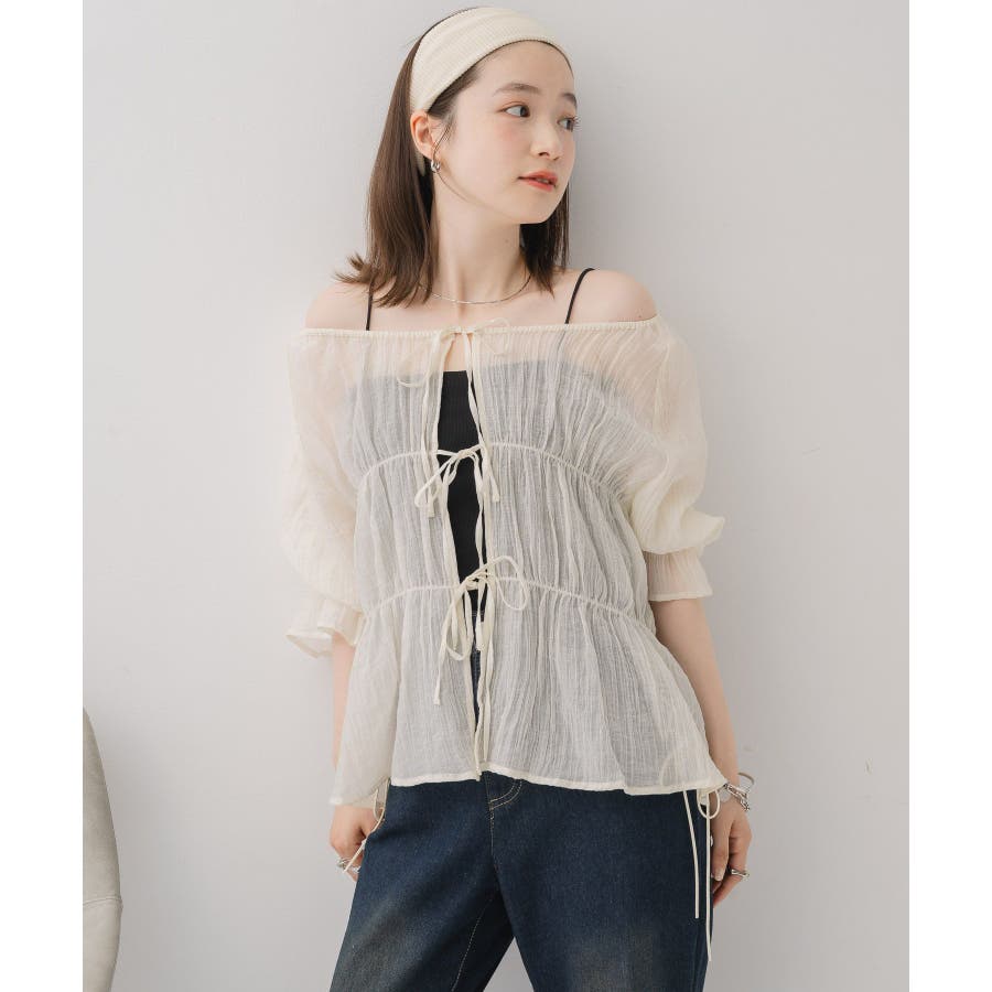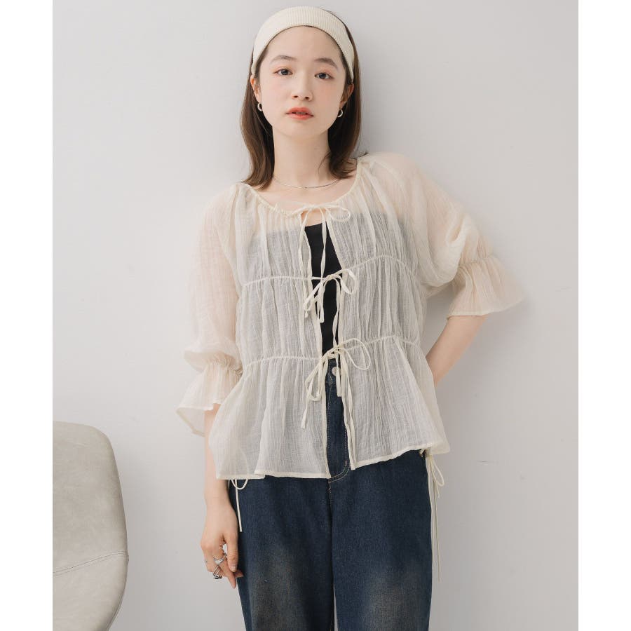 <フロントリボンで大人ガーリーなトレンドブラウス>▼デザインフロント部分に3段のリボンデザインがガーリーなブラウスアイテム。前回も大人気を頂いた柔らかく透け感のある素材で、4色のご用意!首元はゴムが入っているので、オフショルスタイルにアレンジ可能◎羽織としても使えて、汎用性ある1枚です。▼コーディネートデニムパンツに合わせて甘カジコーデがおすすめ!キャミソールに羽織ることで夏にも涼しいスタイリングに♪-----------------------------生地感:薄手伸縮性:なし透け感:あり裏地:なし------------------------------▼ブランド紹介RETRO GIRL (レトロガール)自分らしい“ベーシックアイテム”と新しい自分の”トレンドアイテム”が見つかる場所今らしいファッションを楽しむ女性のためのブランド#ブラウス #ブラウスコーデ #ブラウスアイテム #シャーリング #シアー素材 #フロントリボン▼注意事項※撮影環境やモニター環境によって実際の商品とお色味が 多少異なってみえる場合がございます。品番:RE556623B001 / 品名:2WAYリボンペプラムBL
