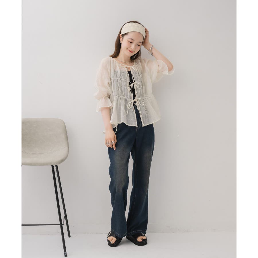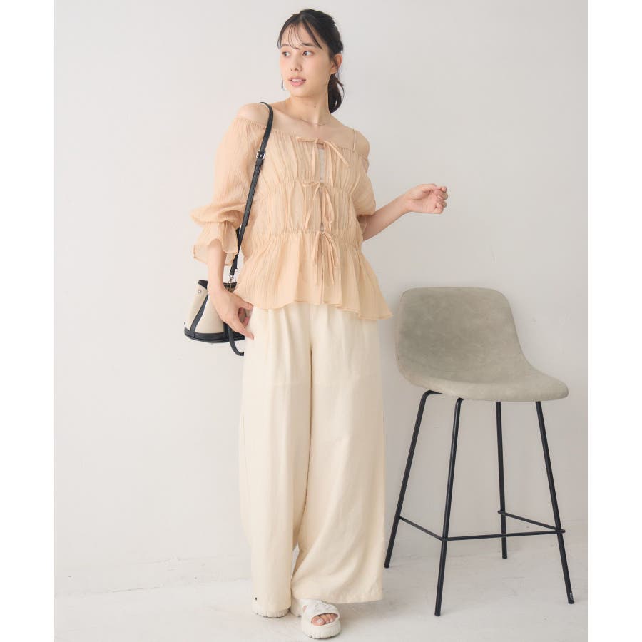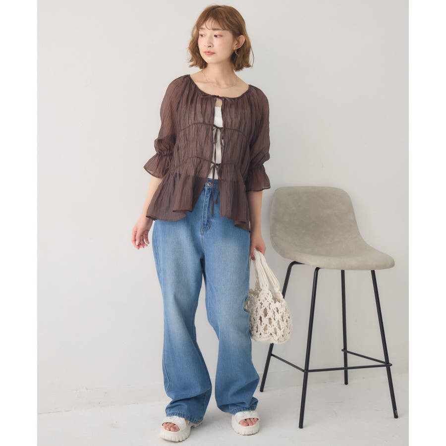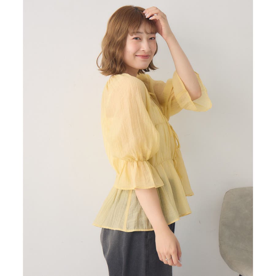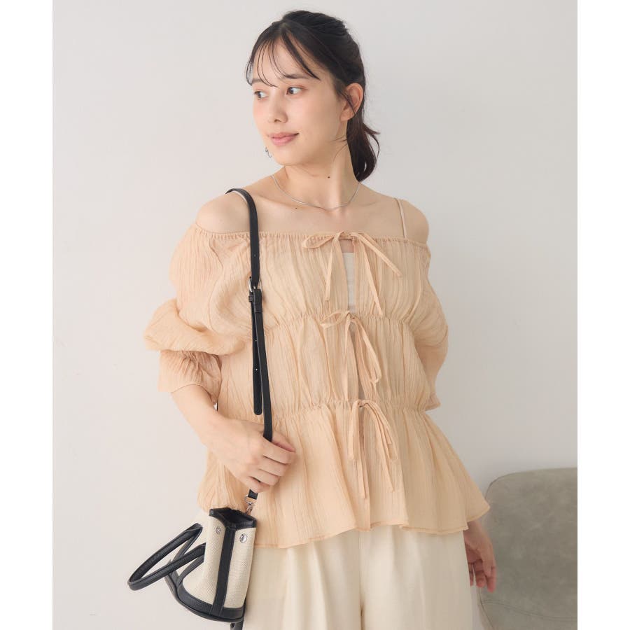 <フロントリボンで大人ガーリーなトレンドブラウス>▼デザインフロント部分に3段のリボンデザインがガーリーなブラウスアイテム。前回も大人気を頂いた柔らかく透け感のある素材で、4色のご用意!首元はゴムが入っているので、オフショルスタイルにアレンジ可能◎羽織としても使えて、汎用性ある1枚です。▼コーディネートデニムパンツに合わせて甘カジコーデがおすすめ!キャミソールに羽織ることで夏にも涼しいスタイリングに♪-----------------------------生地感:薄手伸縮性:なし透け感:あり裏地:なし------------------------------▼ブランド紹介RETRO GIRL (レトロガール)自分らしい“ベーシックアイテム”と新しい自分の”トレンドアイテム”が見つかる場所今らしいファッションを楽しむ女性のためのブランド#ブラウス #ブラウスコーデ #ブラウスアイテム #シャーリング #シアー素材 #フロントリボン▼注意事項※撮影環境やモニター環境によって実際の商品とお色味が 多少異なってみえる場合がございます。品番:RE556623B001 / 品名:2WAYリボンペプラムBL