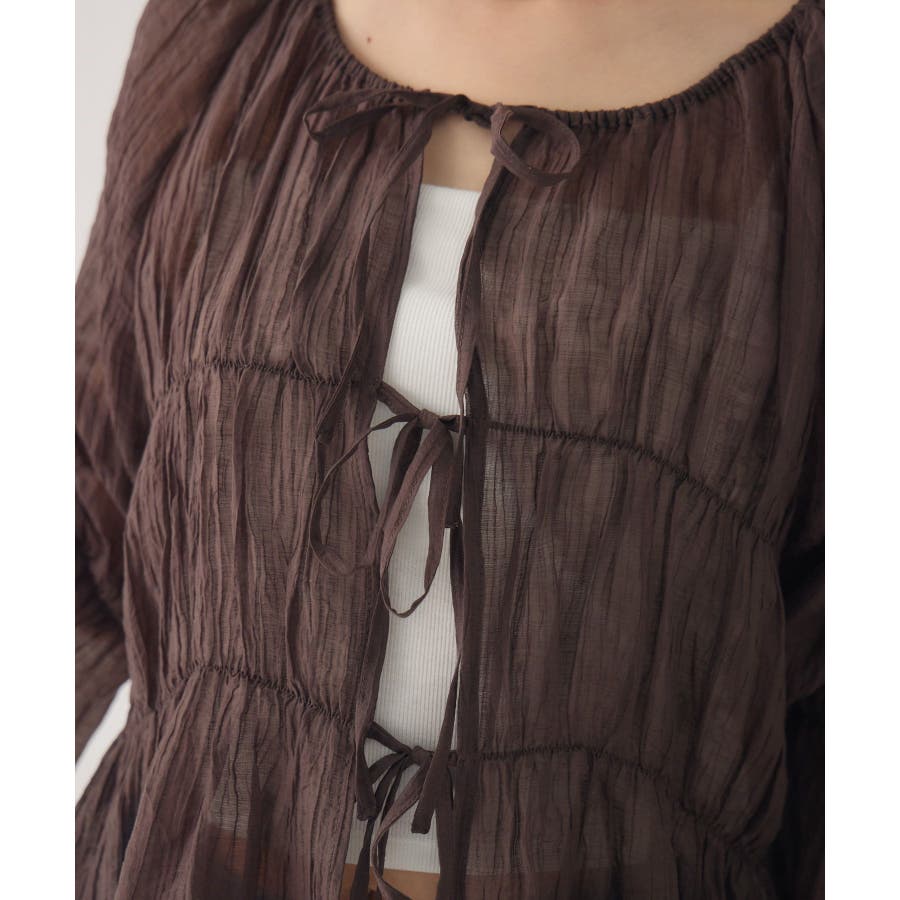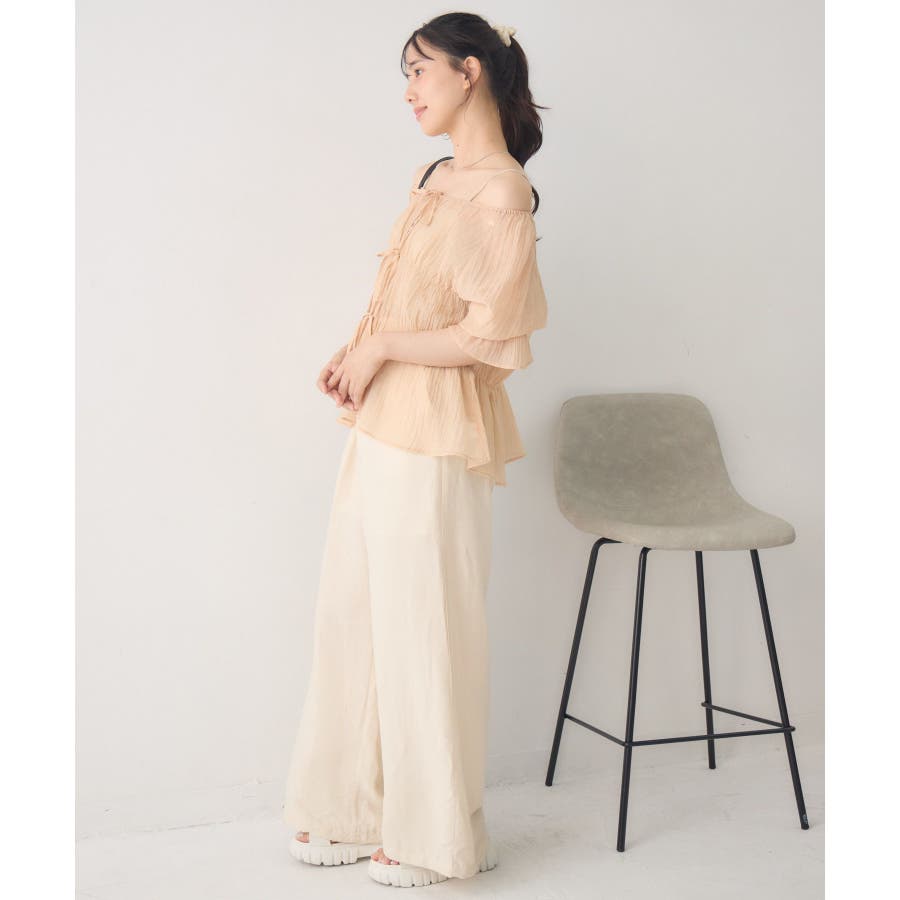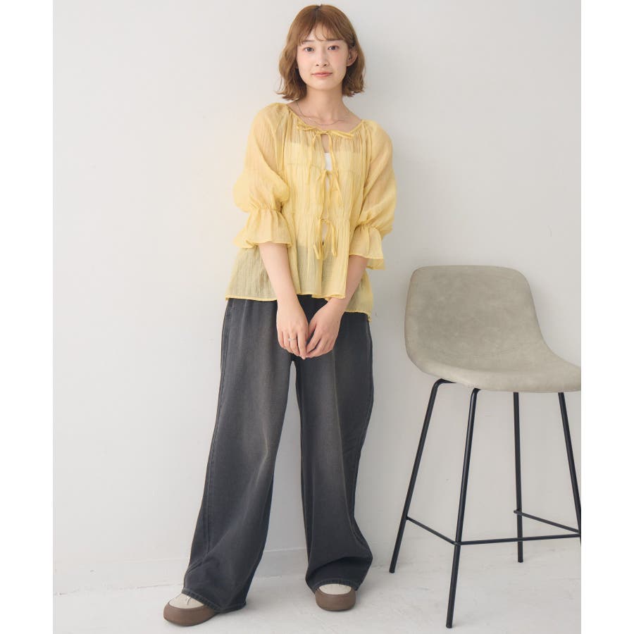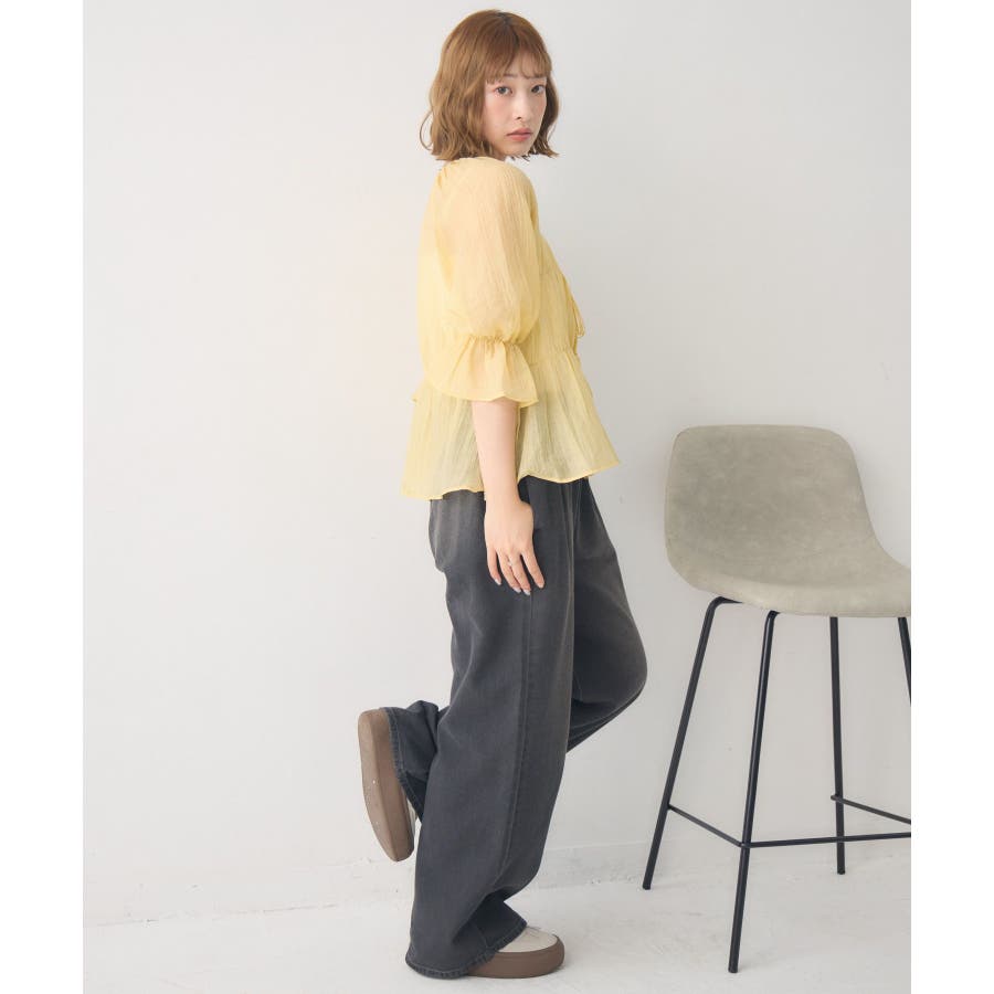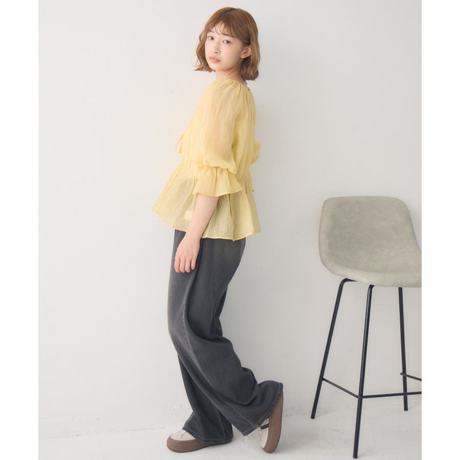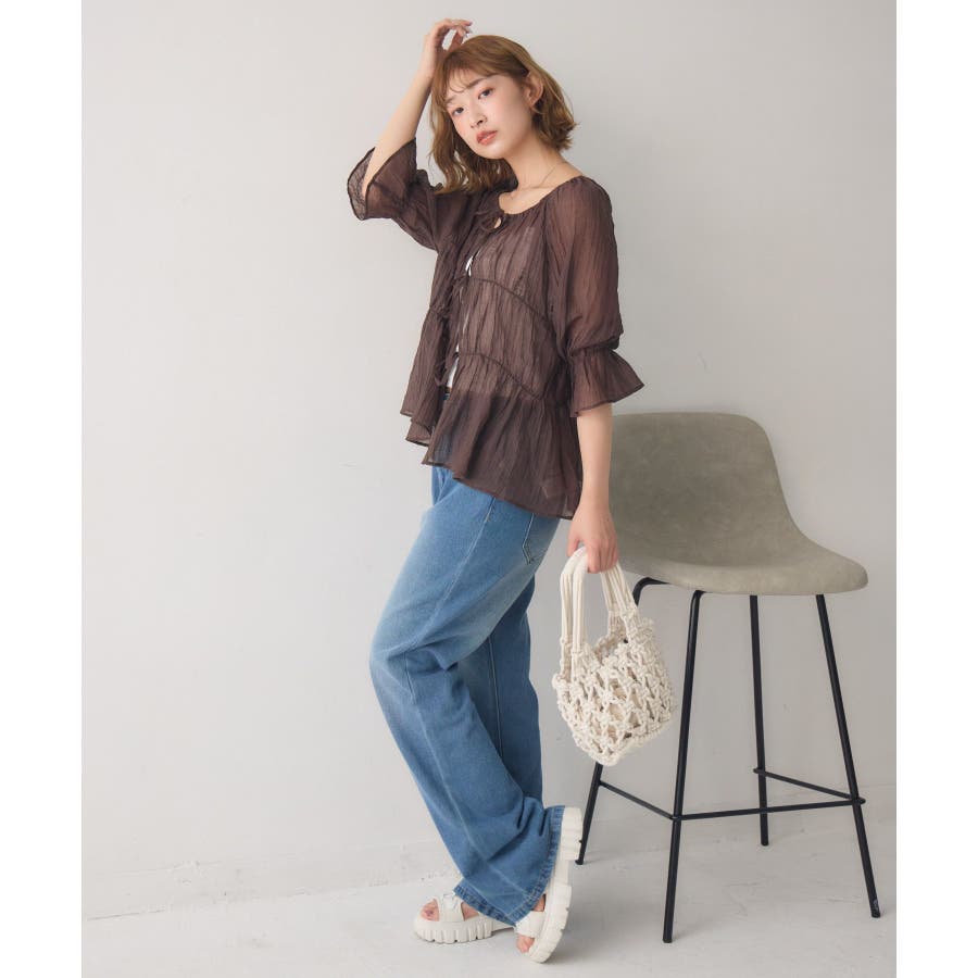 <フロントリボンで大人ガーリーなトレンドブラウス>▼デザインフロント部分に3段のリボンデザインがガーリーなブラウスアイテム。前回も大人気を頂いた柔らかく透け感のある素材で、4色のご用意!首元はゴムが入っているので、オフショルスタイルにアレンジ可能◎羽織としても使えて、汎用性ある1枚です。▼コーディネートデニムパンツに合わせて甘カジコーデがおすすめ!キャミソールに羽織ることで夏にも涼しいスタイリングに♪-----------------------------生地感:薄手伸縮性:なし透け感:あり裏地:なし------------------------------▼ブランド紹介RETRO GIRL (レトロガール)自分らしい“ベーシックアイテム”と新しい自分の”トレンドアイテム”が見つかる場所今らしいファッションを楽しむ女性のためのブランド#ブラウス #ブラウスコーデ #ブラウスアイテム #シャーリング #シアー素材 #フロントリボン▼注意事項※撮影環境やモニター環境によって実際の商品とお色味が 多少異なってみえる場合がございます。品番:RE556623B001 / 品名:2WAYリボンペプラムBL