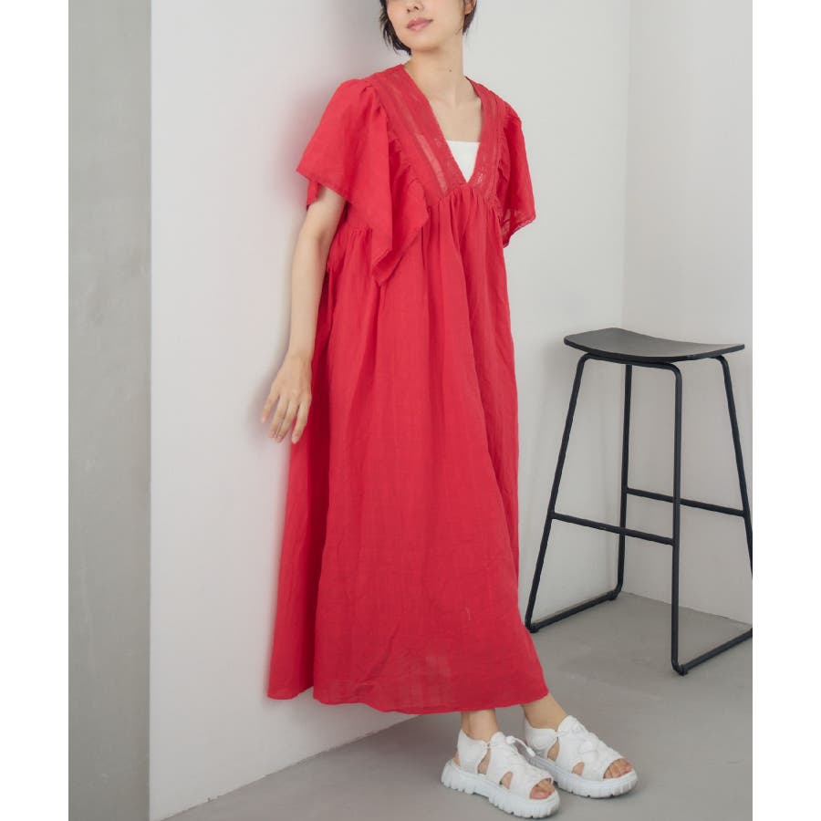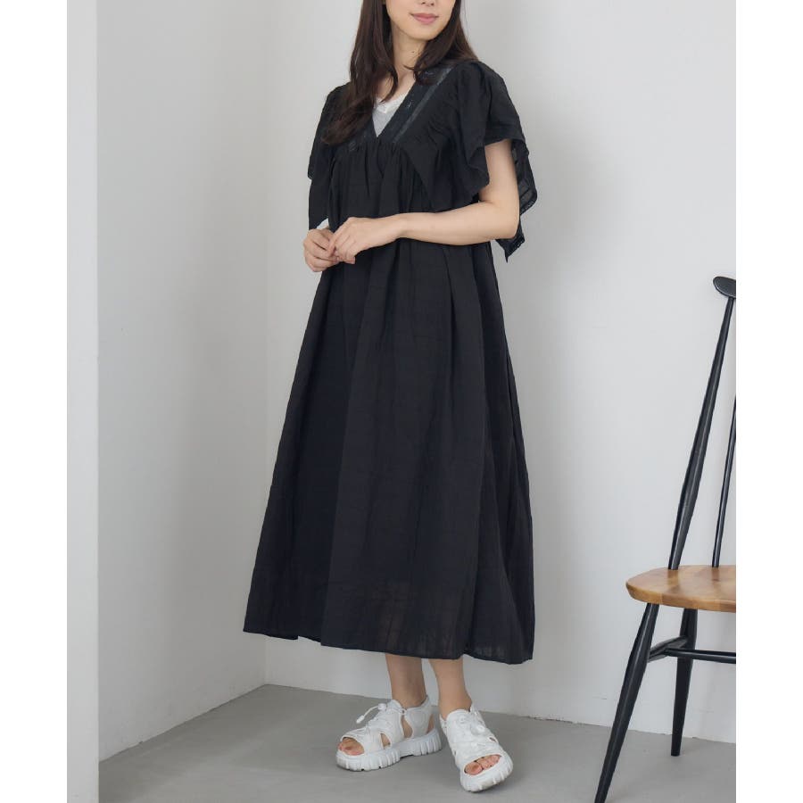 <大人綺麗目なレースワンピース>▼デザイン優しい綿素材のフレアワンピース。首元はVネックになっていて、首が長く見えるのでスタイルアップに◎袖口はボリューム感あるフレアスリーブで華やかな印象に。切り返しがなく、ふわっと広がるAラインなので、マタニティワンピースとしても着用頂けます。▼コーディネート1枚でコーデが完成するワンピース。袖のフリルは大きく、二の腕部分もカバーしてくれます◎インナーにレースキャミを取り入れて、首元からチラッとレースが見えるスタイリングも可愛い♪-----------------------------生地感:普通伸縮性:なし透け感:なし裏地:ある------------------------------▼ブランド紹介RETRO GIRL (レトロガール)自分らしい“ベーシックアイテム”と新しい自分の”トレンドアイテム”が見つかる場所今らしいファッションを楽しむ女性のためのブランド#ワンピース #フリルワンピース #夏コーデ #レース #コットンワンピース #マタニティワンピース▼注意事項※撮影環境やモニター環境によって実際の商品とお色味が 多少異なってみえる場合がございます。品番:RE557022C001 / 品名:レースフレアOP