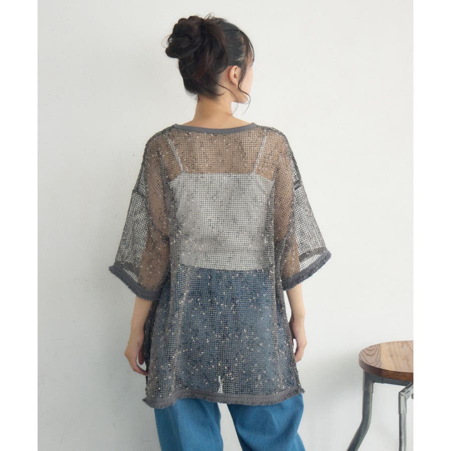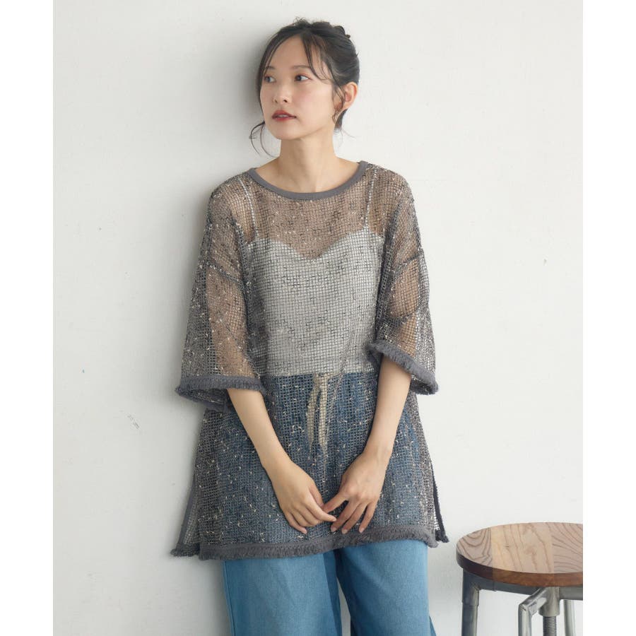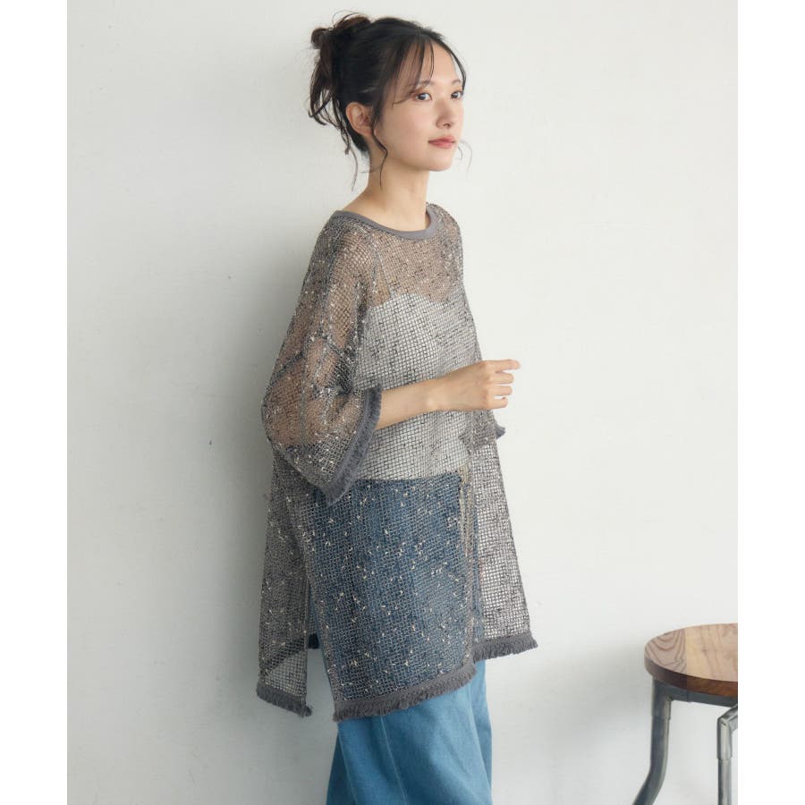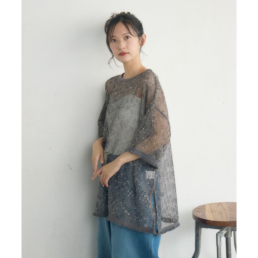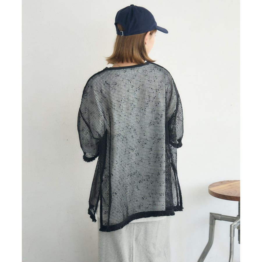 <晩夏カラーのメッシュプルオーバー>▼デザイン夏の定番、メッシュプルオーバー。秋に向けてカラーは暗めのグレーとブラックの2色でご用意。シンプルなデザインでどんなコーデにも合わせやすい◎袖口や裾がフリンジデザインになっていて、秋めくワンポイント!▼コーディネートボトムを選ばず着用して頂けるアイテム。ワンピースにレイヤードしたり、デニムに合わせたり、コーディネート次第で雰囲気をガラリと変えられます。------------------------------生地感:薄手伸縮性:ある透け感:ある裏地:なし-----------------------------▼ブランド紹介RETRO GIRL (レトロガール)自分らしい“ベーシックアイテム”と新しい自分の”トレンドアイテム”が見つかる場所今らしいファッションを楽しむ女性のためのブランド#フリンジ #メッシュコーデ #メッシュ #シンプル #プルオーバー #秋カラー▼注意事項※撮影環境やモニター環境によって実際の商品とお色味が多少異なってみえる場合がございます。品番:RE557111C002 / 品名:フリンジメッシュPO