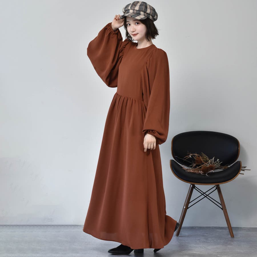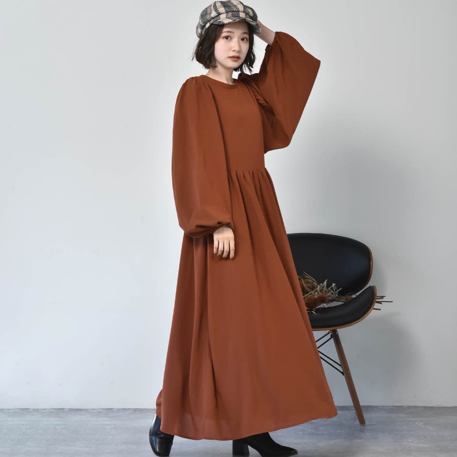 #ワンピース/#ロングワンピース/#無地・柄/#ボリューム袖/#秋冬