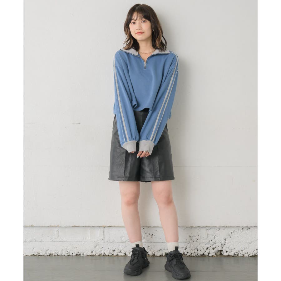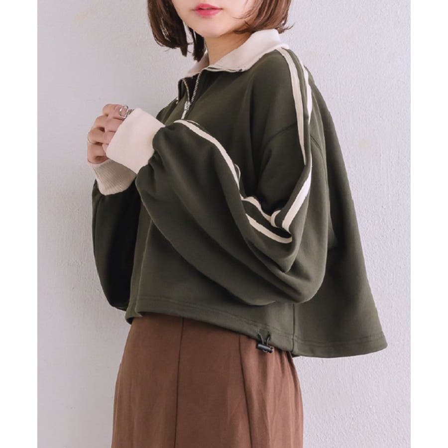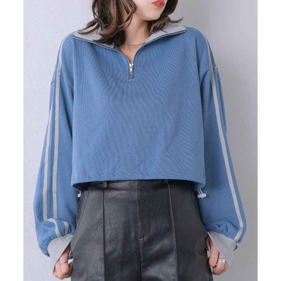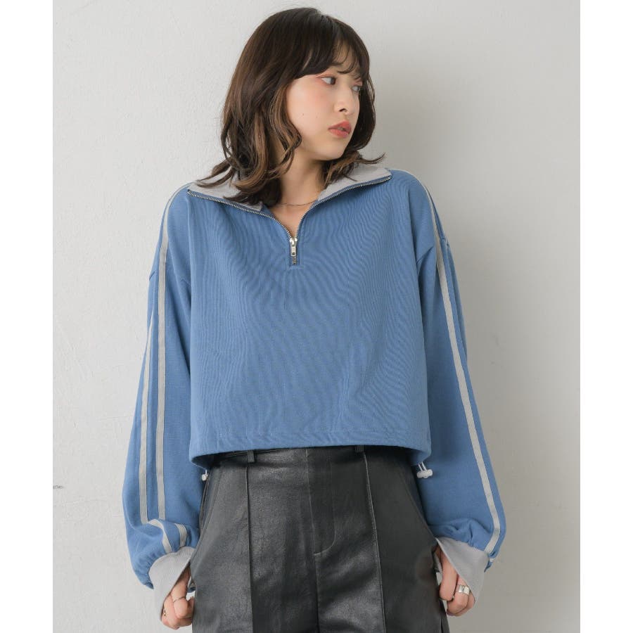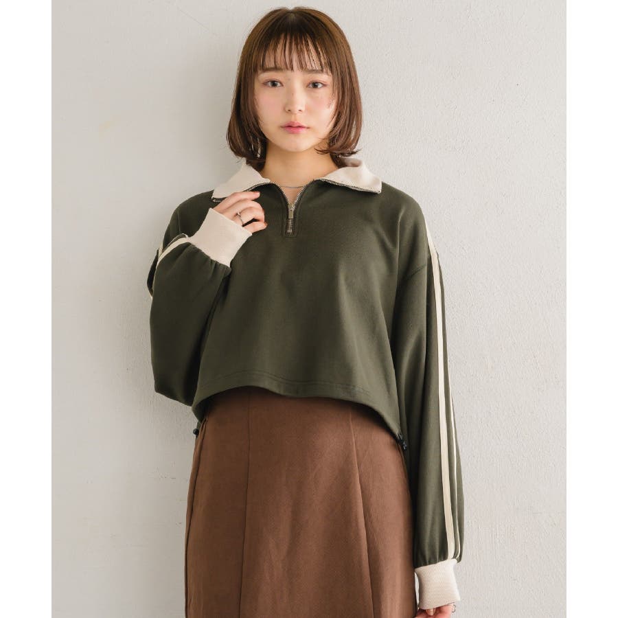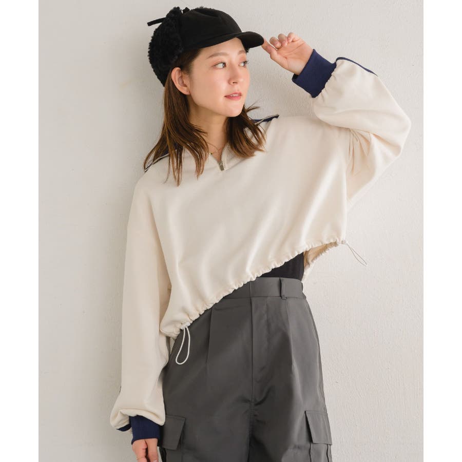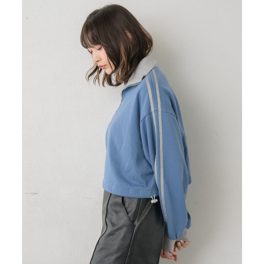 ラインハーフZIPトレーナー 【レトロガール】ショート丈トップス/スポーティー