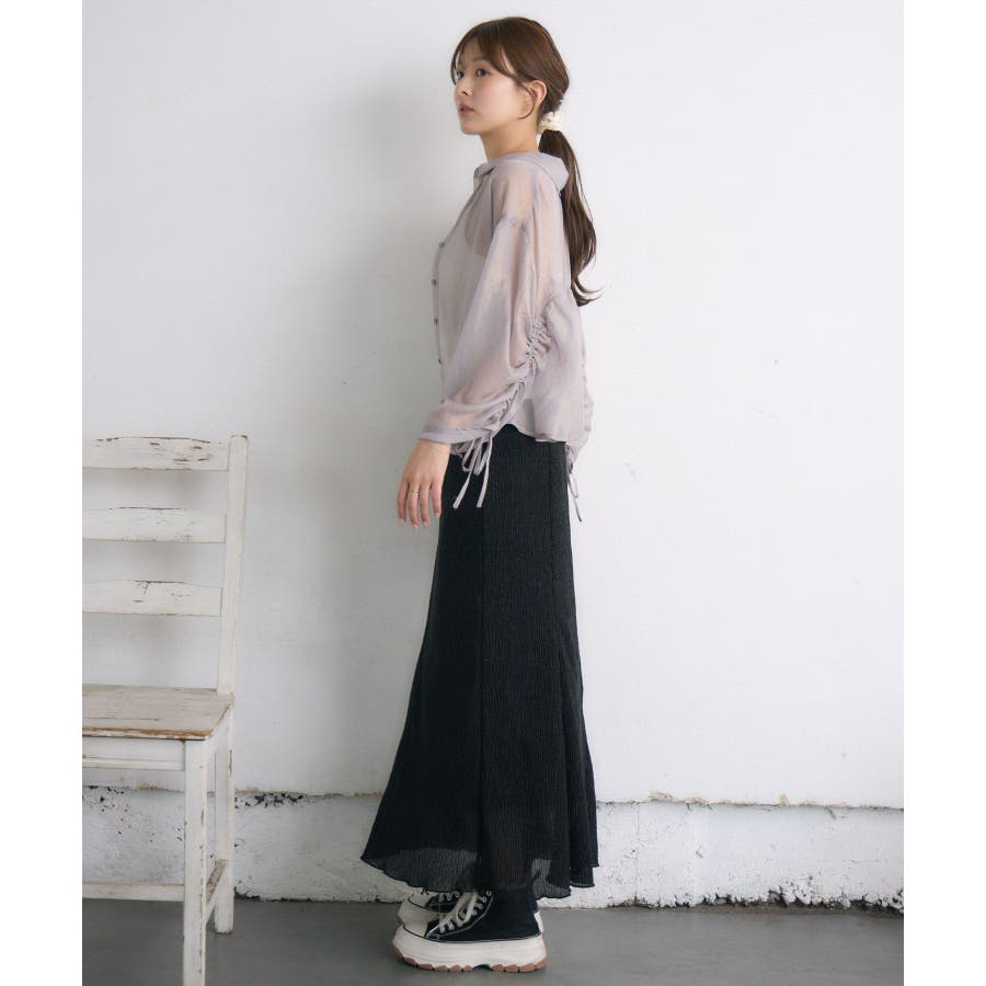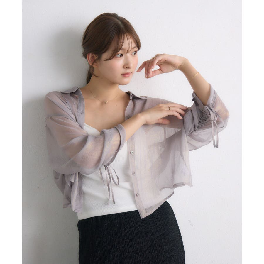 <光沢感溢れる箔プリントシャツ>▼デザイン袖リボンデザインの女性らしいシアーシャツ!箔がプリントされた光沢が目を惹く価値観のある1枚。袖はシャーリングデザインが施されていて、後ろ姿もオシャレなアイテムです。▼コーディネート前ボタンを開いて羽織スタイルでも着て頂けます。透け感があるので、インナーのキャミに柄物などを入れて、インパクトあるコーデにするのもおすすめです♪------------------------------生地感:薄手伸縮性:なし透け感:ある裏地:なし-----------------------------▼ブランド紹介RETRO GIRL (レトロガール)自分らしい“ベーシックアイテム”と新しい自分の”トレンドアイテム”が見つかる場所今らしいファッションを楽しむ女性のためのブランド#シアー #リボン #シャツ #シアーシャツ #袖リボン #シャーリング #箔プリント▼注意事項※撮影環境やモニター環境によって実際の商品とお色味が多少異なってみえる場合がございます。品番:RF456623T001 / 品名:箔プリントシャーリングSH