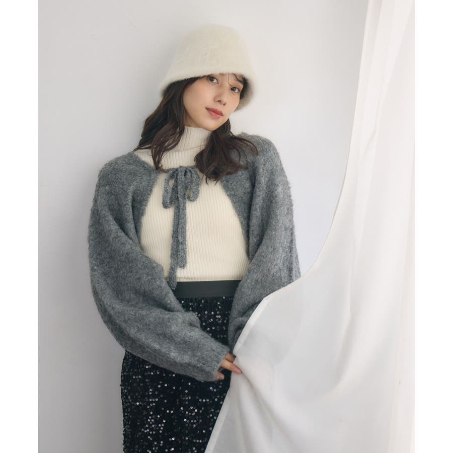 <毎年大人気を頂く暖かいニットボレロ>▼デザイン毎年冬に大人気を頂く起毛感たっぷりのボレロアイテム。フロントリボンがで着脱可能で、使いやすいのが魅力。いつものTシャツやリブニットにちょっと羽織るだけでコーデに奥行きが出る冬に便利なアイテムです。▼コーディネート晩夏はTシャツやキャミの売れに羽織って気温の変化に対応できます。冬はリブニットやロンTEEと合わせてスタイリングすることで防寒力高めコーデが完成!------------------------------生地感:普通伸縮性:ある透け感:なし裏地:なし------------------------------▼ブランド紹介RETRO GIRL (レトロガール)自分らしい“ベーシックアイテム”と新しい自分の”トレンドアイテム”が見つかる場所今らしいファッションを楽しむ女性のためのブランド#カラーコーデ #カラーアイテム #起毛 #メッシュボレロ #ボレロ▼注意事項※撮影環境やモニター環境によって実際の商品とお色味が多少異なってみえる場合がございます。品番:RF456912B001 / 品名:起毛ボレロニット