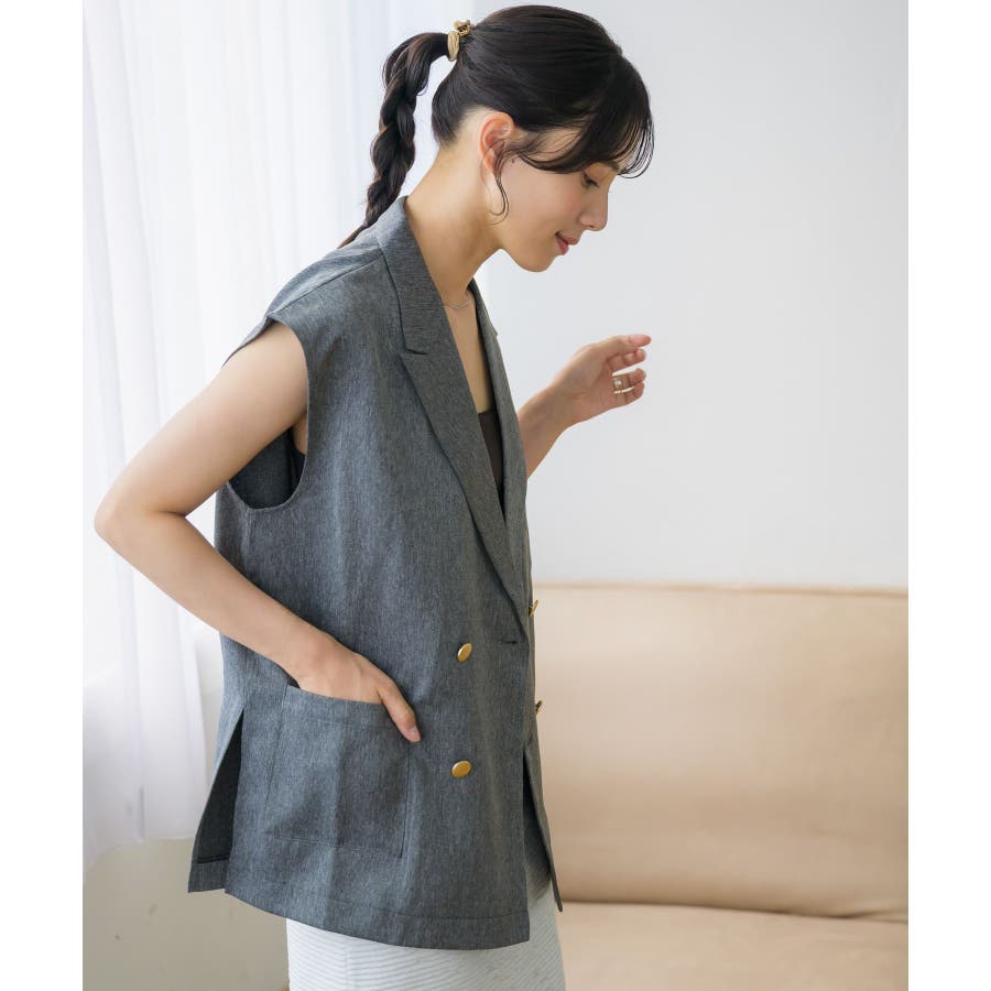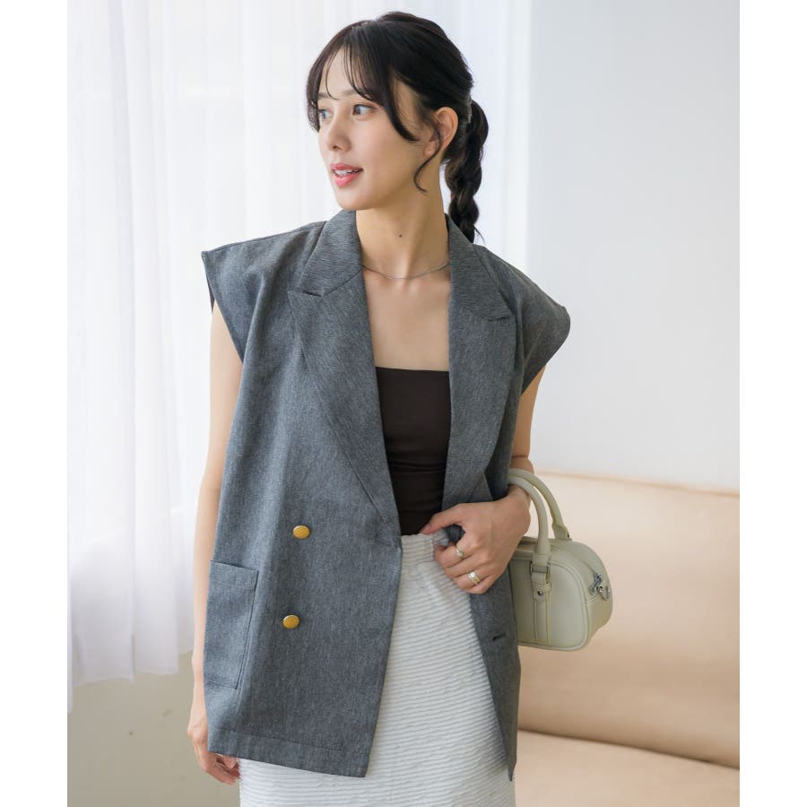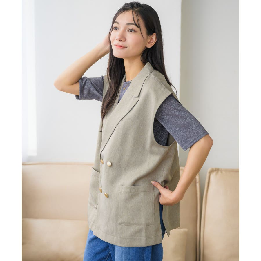 <高級感漂う大人のベストジャケット>▼デザインしっかりとした素材感と、ゴールド釦が価値観ある1枚。キャミワンピースや、Tシャツにも羽織るだけでコーデに高級感を与えてくれます。しっかりと大き目のポケットがついているので、機能性もばっちり◎いつものコーデに少しオフィシャル感をプラスしたい時におすすめです。▼コーディネートどんなアイテムにも羽織るだけで上品さをプラスするジャケット。ワンピースやタイトスカートに合わせるのがおすすめ◎------------------------------生地感:普通伸縮性:なし透け感:なし裏地:なし-----------------------------▼ブランド紹介RETRO GIRL (レトロガール)自分らしい“ベーシックアイテム”と新しい自分の”トレンドアイテム”が見つかる場所今らしいファッションを楽しむ女性のためのブランド#ジャケット #サマージャケット #ジレ #サマージレ #ベスト▼注意事項※撮影環境やモニター環境によって実際の商品とお色味が 多少異なってみえる場合がございます。品番:RF457121B001 / 品名:BIGテーラードベスト