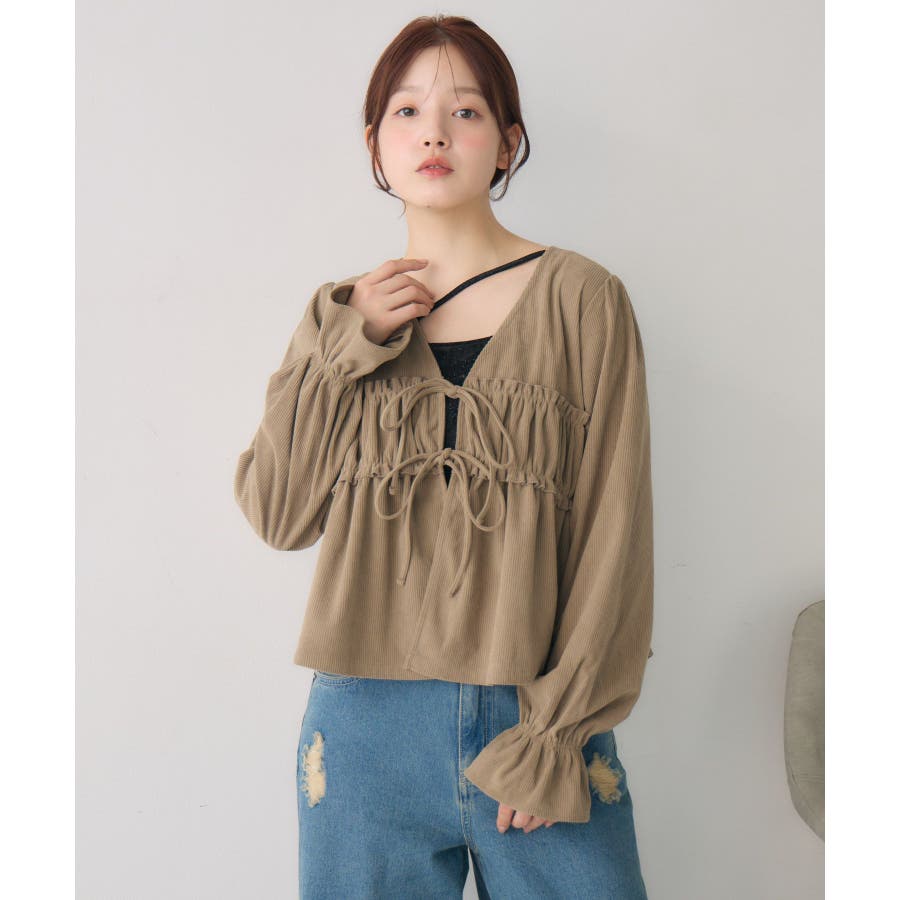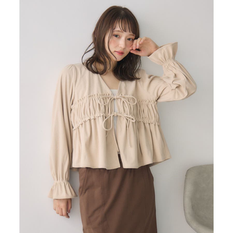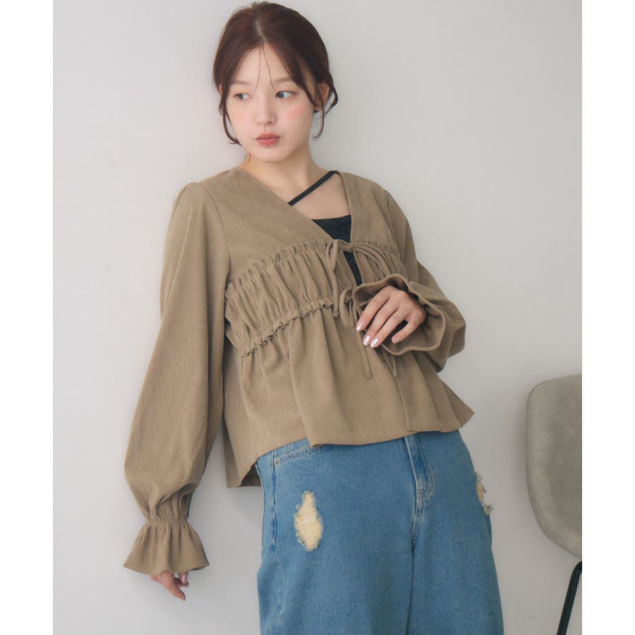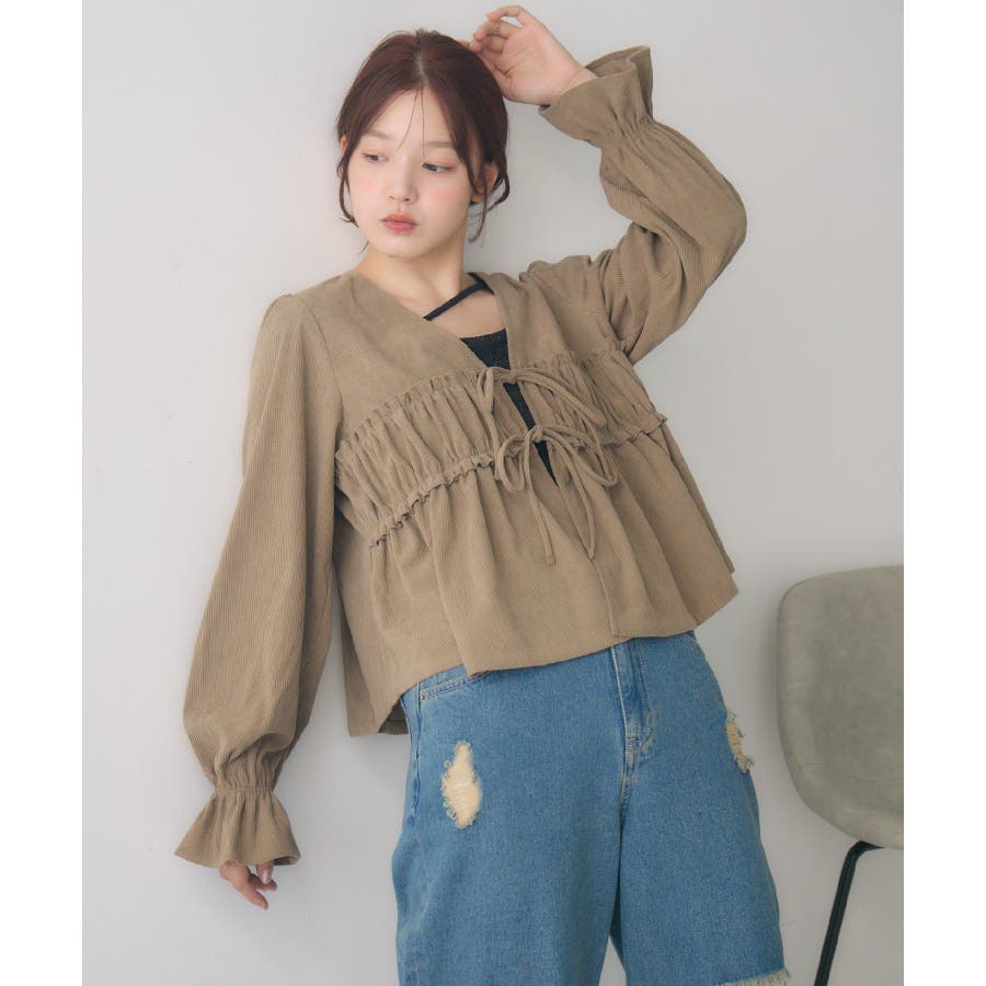 <厚手なコーデュロイ素材で秋にピッタリなブラウス>▼デザインフロント部分に2段のリボンデザインが輝くブラウスアイテム。夏も大人気を頂いたアイテムなので、秋素材で再登場です♪袖口はキャンディースリーブになっていてとっても可愛い!しっかり厚みのある上品な素材感で、秋コーデにピッタリです◎▼コーディネートキャミワンピースの上に羽織ったり、マーメイドスカートの上に着ると、リボンブラウスにぴったりのガーリーコーデに!ボトムをカジュアルなパンツやデニムにしても、ブラウスが可愛らしさをプラスしてくれます。-----------------------------生地感:普通伸縮性:ある透け感:なし裏地:なし------------------------------▼ブランド紹介RETRO GIRL (レトロガール)自分らしい“ベーシックアイテム”と新しい自分の”トレンドアイテム”が見つかる場所今らしいファッションを楽しむ女性のためのブランド#ブラウス #ブラウスコーデ#ブラウスアイテム #シャーリング #秋コーデ #フロントリボン コーデュロイ▼注意事項※撮影環境やモニター環境によって実際の商品とお色味が 多少異なってみえる場合がございます。品番:RF537523T002 / 品名:コーデュロイギャザーBL