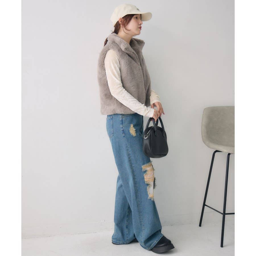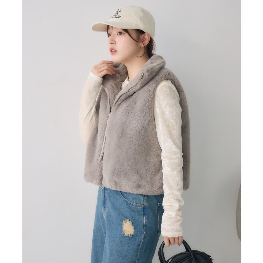 ファーショートベスト
