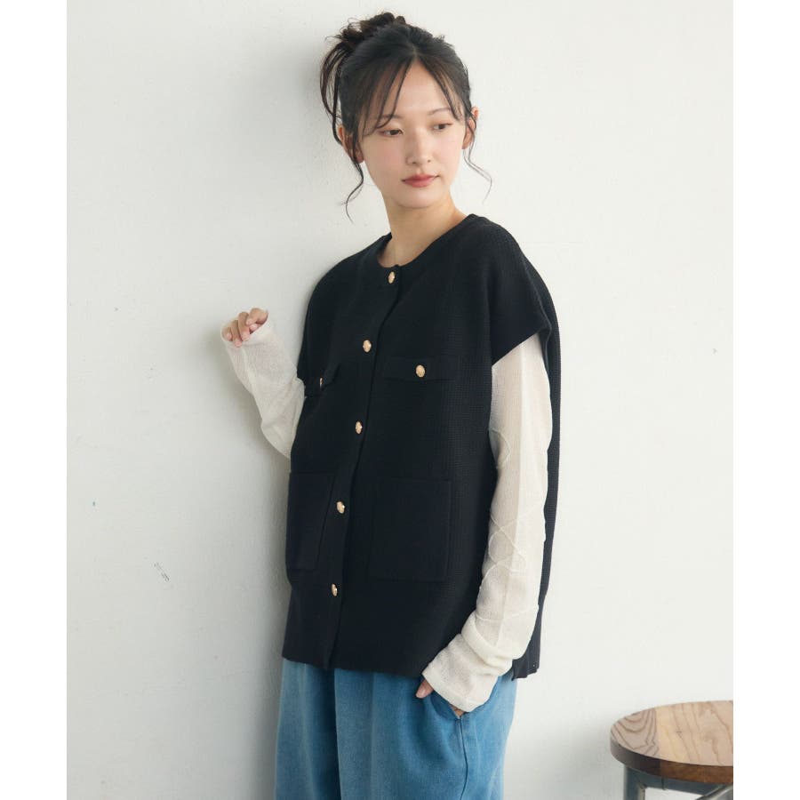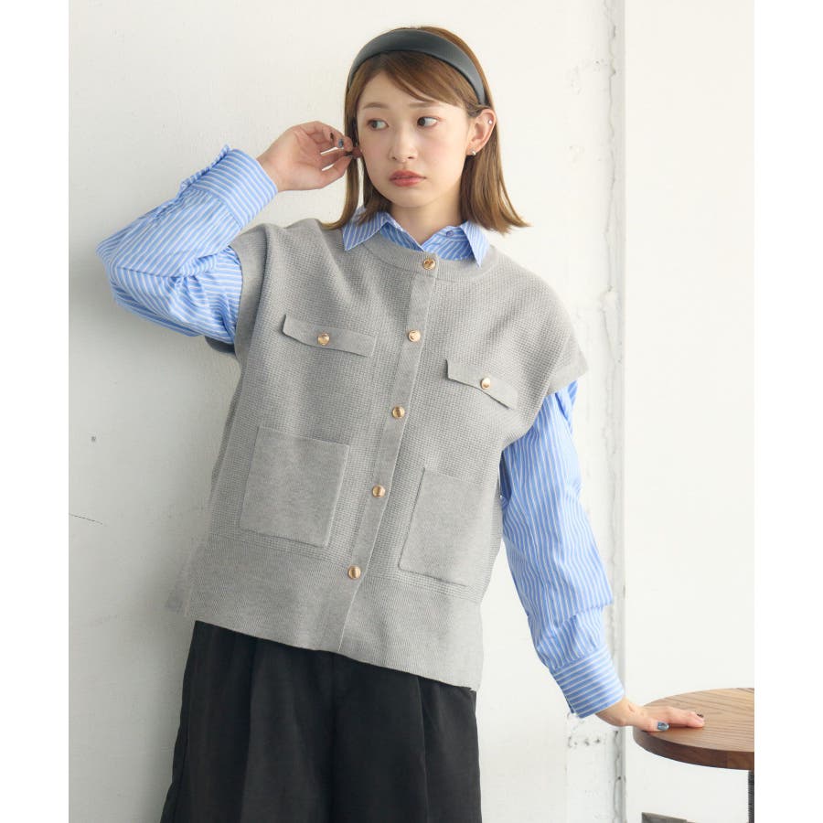 <柔らかいニット素材の高見えベスト>▼デザインプラスワンアイテムとして使えるミドル丈のベストフロントデザインには、金釦で高級感あるデザインに。ポケットもついていて、実用性のある1枚。大人綺麗目コーデにぜひセレクトしてください♪▼コーディネート1枚でも、カットソーとのレイヤードしても◎レディな落ち着いた色味でスマートな大人カジュアルなコーディネートに最適◎------------------------------生地感:普通伸縮性:ある透け感:なし裏地:なし-----------------------------▼ブランド紹介RETRO GIRL (レトロガール)自分らしい“ベーシックアイテム”と新しい自分の”トレンドアイテム”が見つかる場所今らしいファッションを楽しむ女性のためのブランド#ベストコーデ #ニットベスト #デザインベスト #大人コーデ #ツイード▼注意事項※撮影環境やモニター環境によって実際の商品とお色味が 多少異なってみえる場合がございます。品番:RF556912B001 / 品名:ツイードライクNTベスト