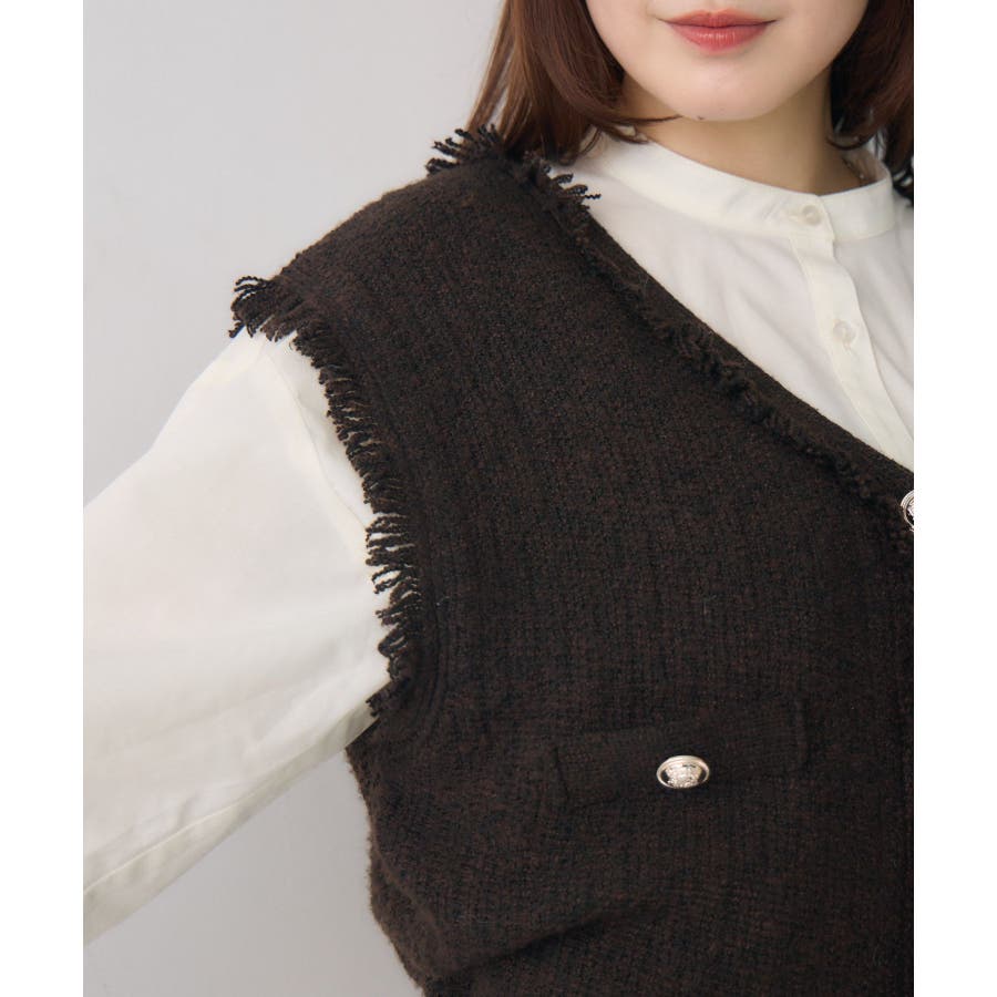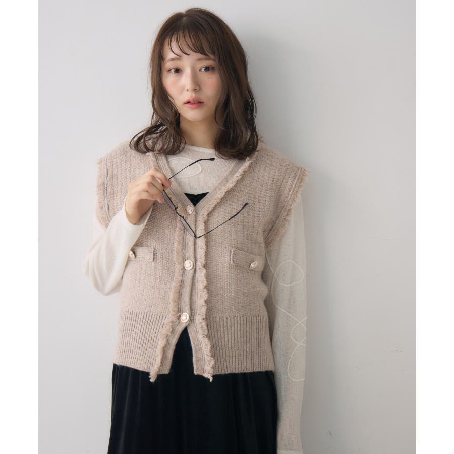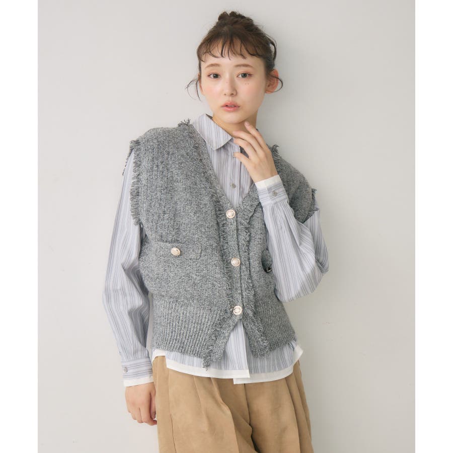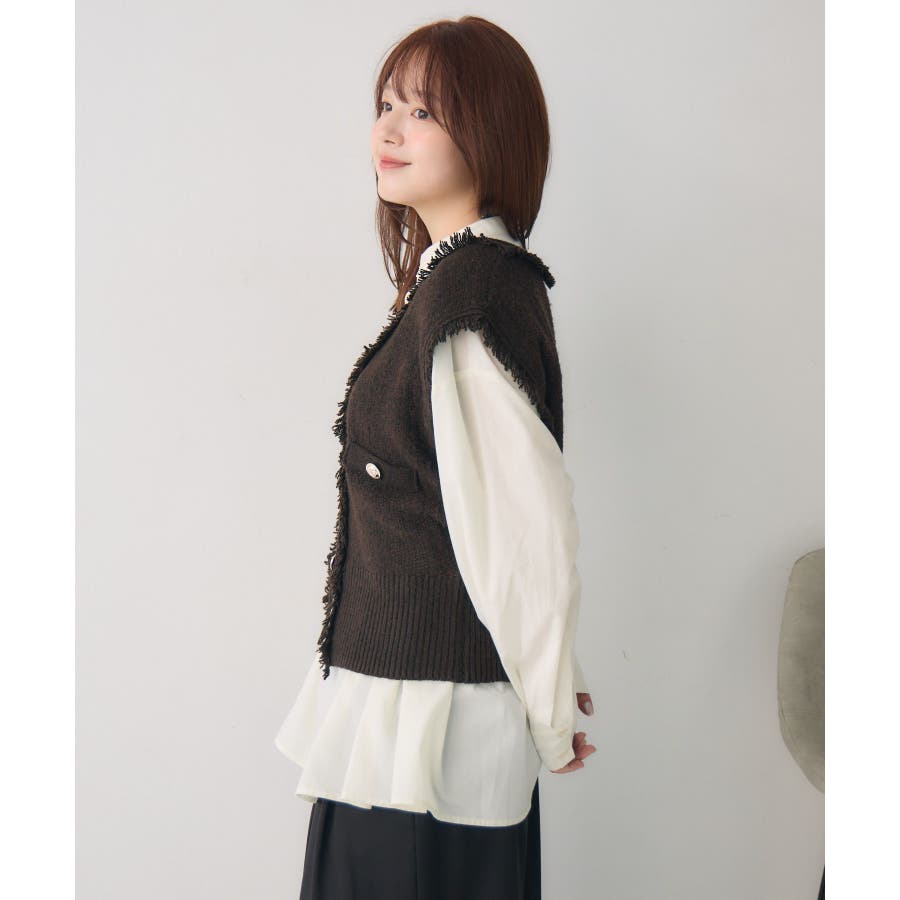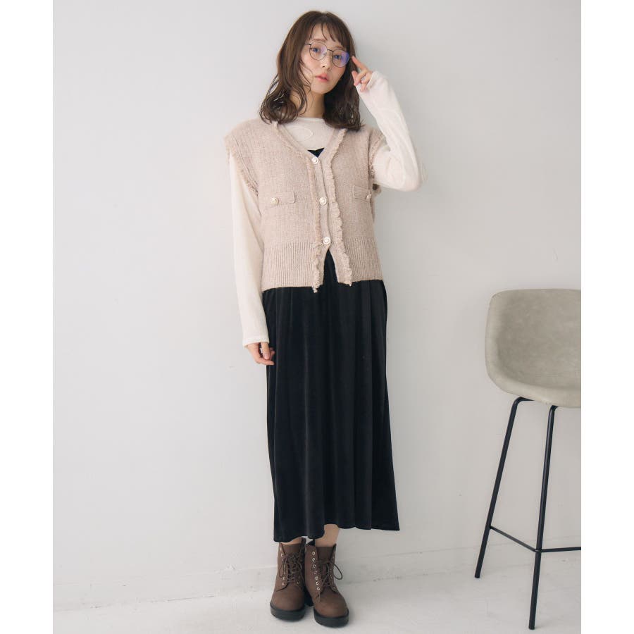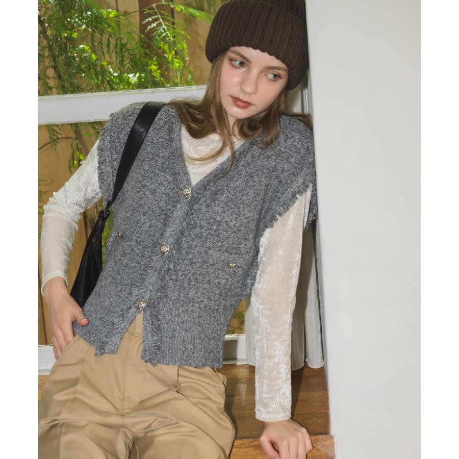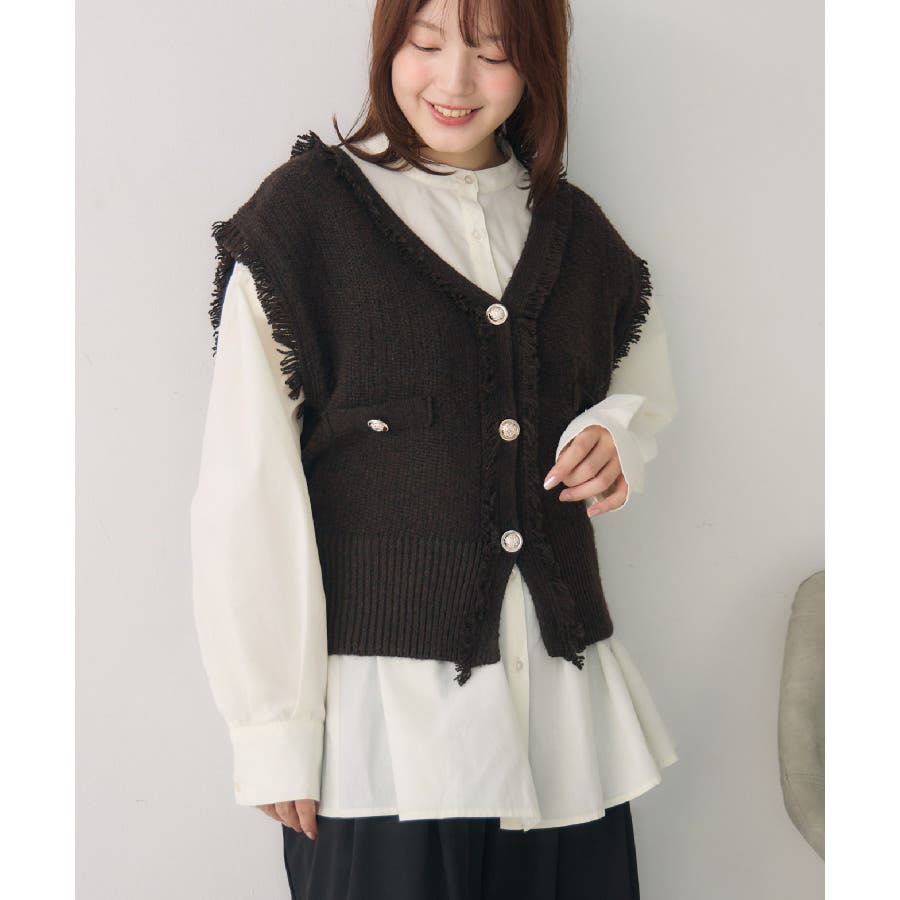 <フリンジデザインが大人っぽい冬見えベスト>▼デザインプラスワンアイテムとして使えるベストアイテム。フロントデザインには、金釦で高級感あるデザインに。Vネックでしっかり空いた首回りで、スタイルアップ効果も◎大人綺麗目コーデにぜひセレクトしてください♪▼コーディネートカットソーとのレイヤードコーデがおすすめ◎綺麗目コーデはもちろん、大人カジュアルなコーディネートに最適◎------------------------------生地感:普通伸縮性:ある透け感:なし裏地:なし-----------------------------▼ブランド紹介RETRO GIRL (レトロガール)自分らしい“ベーシックアイテム”と新しい自分の”トレンドアイテム”が見つかる場所今らしいファッションを楽しむ女性のためのブランド#ベストコーデ #ニットベスト #デザインベスト #大人コーデ #金釦▼注意事項※撮影環境やモニター環境によって実際の商品とお色味が 多少異なってみえる場合がございます。品番:RF556912T002 / 品名:フリンジNT金釦ベスト