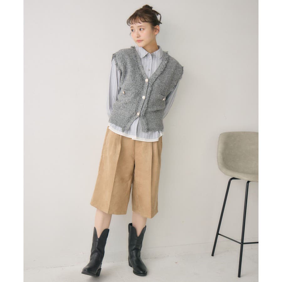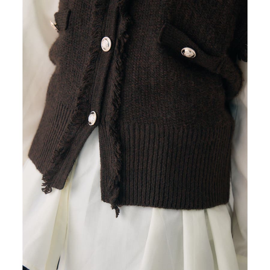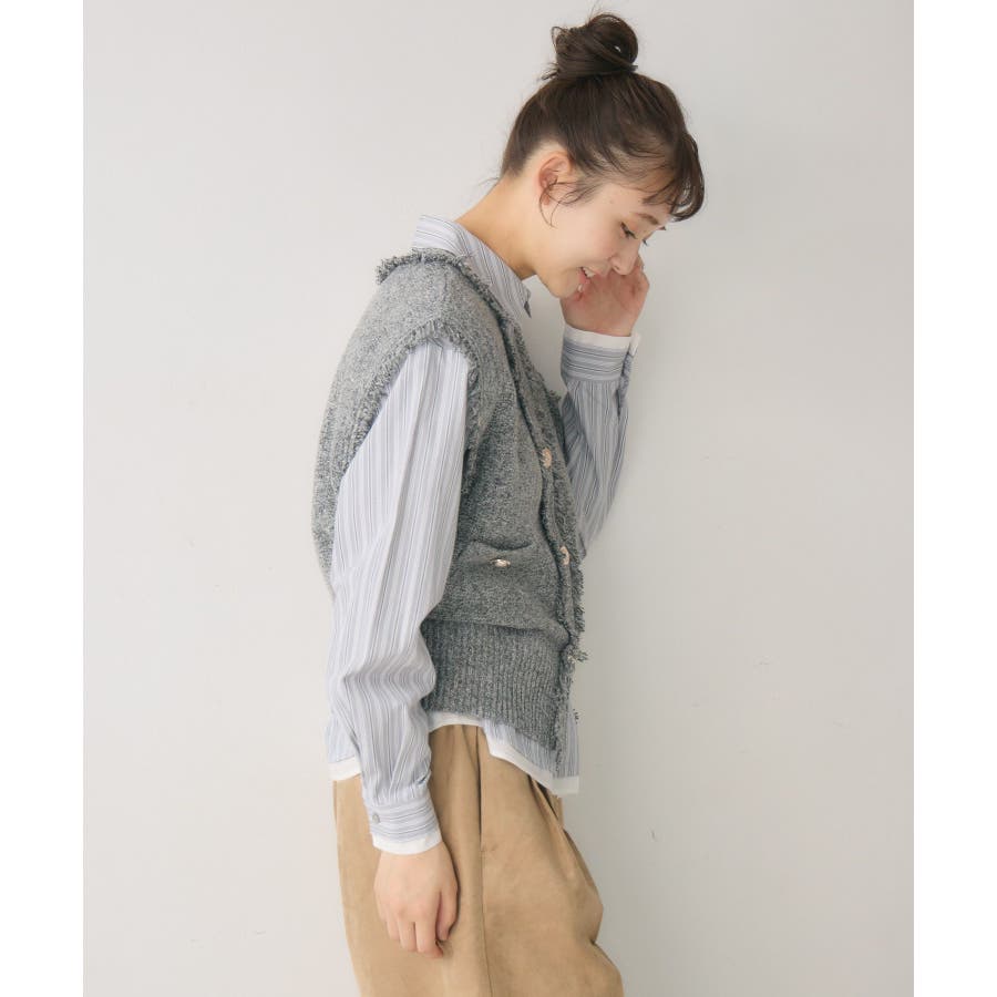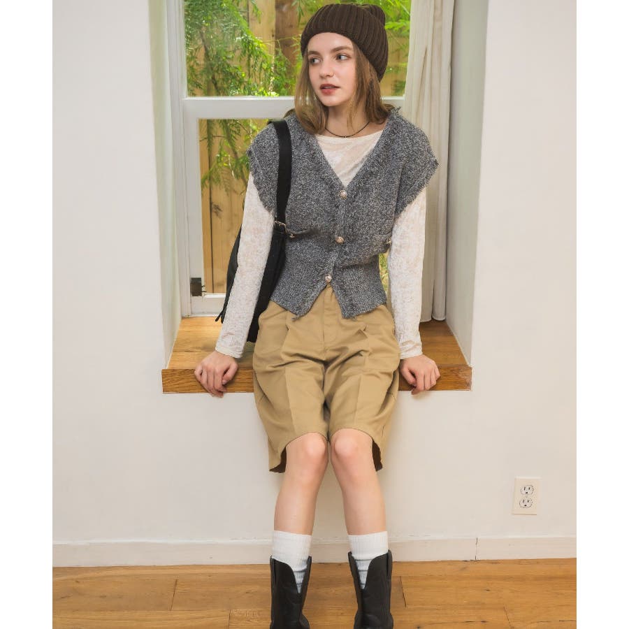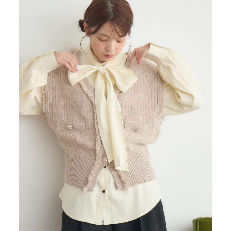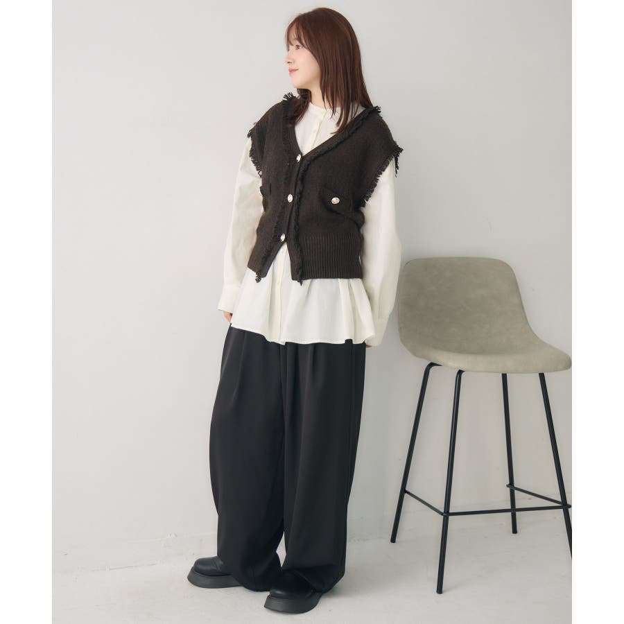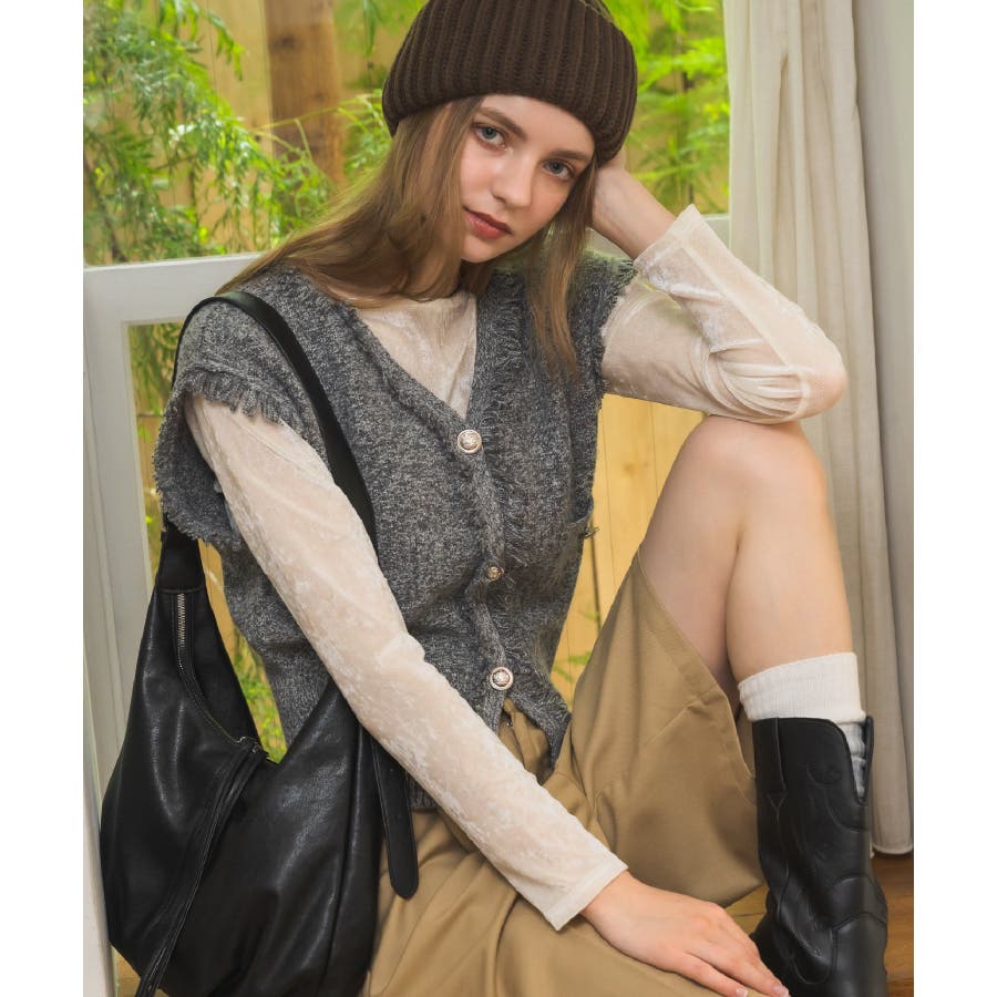 <フリンジデザインが大人っぽい冬見えベスト>▼デザインプラスワンアイテムとして使えるベストアイテム。フロントデザインには、金釦で高級感あるデザインに。Vネックでしっかり空いた首回りで、スタイルアップ効果も◎大人綺麗目コーデにぜひセレクトしてください♪▼コーディネートカットソーとのレイヤードコーデがおすすめ◎綺麗目コーデはもちろん、大人カジュアルなコーディネートに最適◎------------------------------生地感:普通伸縮性:ある透け感:なし裏地:なし-----------------------------▼ブランド紹介RETRO GIRL (レトロガール)自分らしい“ベーシックアイテム”と新しい自分の”トレンドアイテム”が見つかる場所今らしいファッションを楽しむ女性のためのブランド#ベストコーデ #ニットベスト #デザインベスト #大人コーデ #金釦▼注意事項※撮影環境やモニター環境によって実際の商品とお色味が 多少異なってみえる場合がございます。品番:RF556912T002 / 品名:フリンジNT金釦ベスト