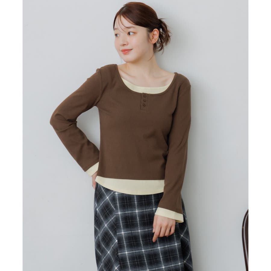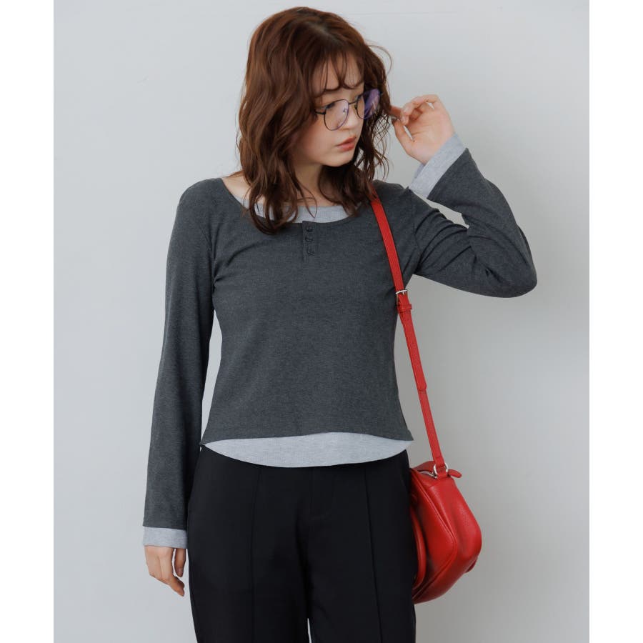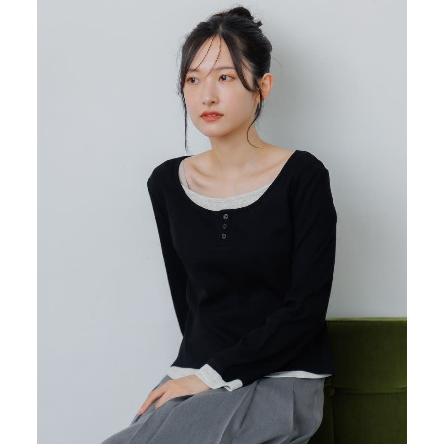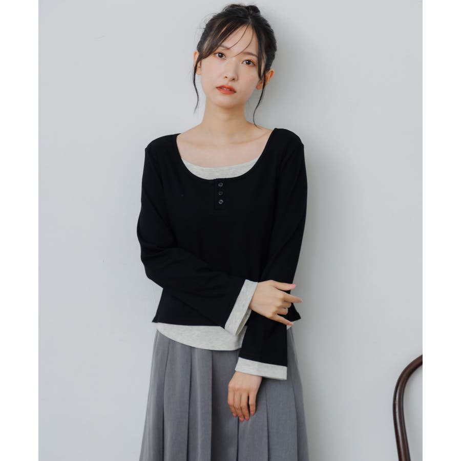 <フェイクレイヤードデザインのテレコカットソー>▼デザインレイヤード見えするデザインが可愛いカットソーアイテム。袖口や首回り、裾にバイカラーのインナーがアクセントに!胸元はヘンリーネックになっているのも大人っぽさアップ。袖口はふんわり広がったフレアスリーブになっていて、シルエットも可愛い♪▼コーディネート秋口は1枚で気温とマッチするスタイリングに。トップスがシンプルなので、ボトムに柄やデザインを取り入れても可愛いです◎-----------------------------生地感:普通伸縮性:あり透け感:なし裏地:なし------------------------------▼ブランド紹介RETRO GIRL (レトロガール)自分らしい“ベーシックアイテム”と新しい自分の”トレンドアイテム”が見つかる場所今らしいファッションを楽しむ女性のためのブランド#レイヤード #テレコカットソー #レイヤード見え #ヘンリーネック #大人コーデ #秋コーデ▼注意事項※撮影環境やモニター環境によって実際の商品とお色味が多少異なってみえる場合がございます。品番:RF580011T002 / 品名:レイヤード風テレコCT
