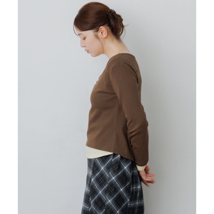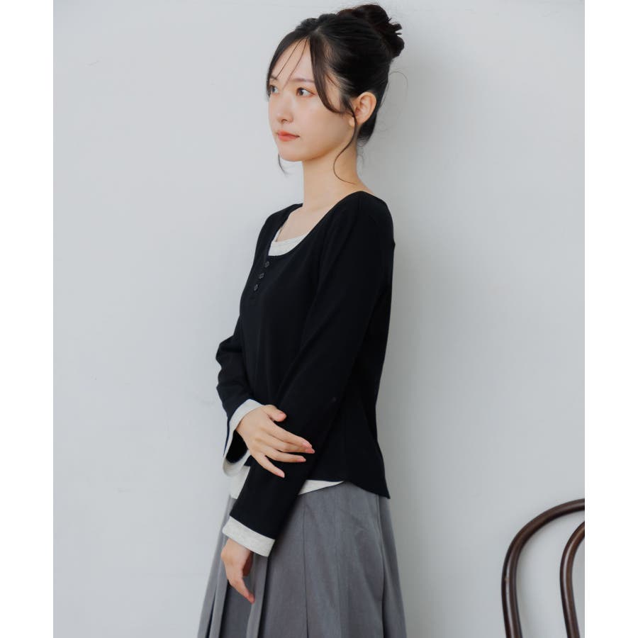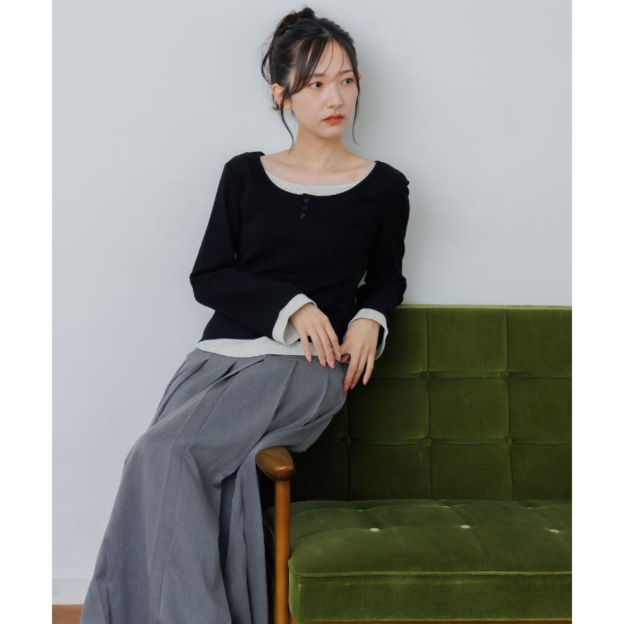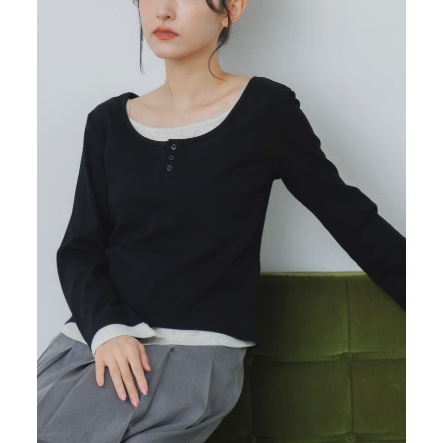 <フェイクレイヤードデザインのテレコカットソー>▼デザインレイヤード見えするデザインが可愛いカットソーアイテム。袖口や首回り、裾にバイカラーのインナーがアクセントに!胸元はヘンリーネックになっているのも大人っぽさアップ。袖口はふんわり広がったフレアスリーブになっていて、シルエットも可愛い♪▼コーディネート秋口は1枚で気温とマッチするスタイリングに。トップスがシンプルなので、ボトムに柄やデザインを取り入れても可愛いです◎-----------------------------生地感:普通伸縮性:あり透け感:なし裏地:なし------------------------------▼ブランド紹介RETRO GIRL (レトロガール)自分らしい“ベーシックアイテム”と新しい自分の”トレンドアイテム”が見つかる場所今らしいファッションを楽しむ女性のためのブランド#レイヤード #テレコカットソー #レイヤード見え #ヘンリーネック #大人コーデ #秋コーデ▼注意事項※撮影環境やモニター環境によって実際の商品とお色味が多少異なってみえる場合がございます。品番:RF580011T002 / 品名:レイヤード風テレコCT
