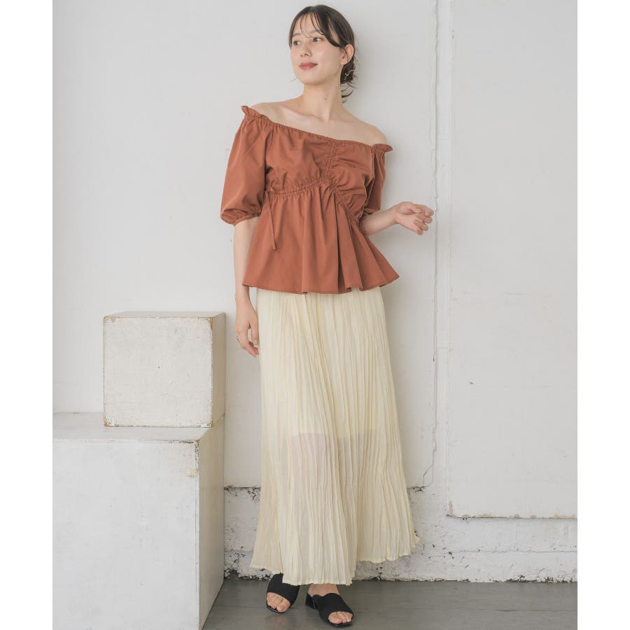 〈たっぷりシャーリングされた絞られデザインが可愛いブラウス〉▼デザインフロント部分が3方向に絞られたドロストデザインのブラウス。オフショルダーとして着るのがおすすめですが、肩回りをカバーしたスタイリングも可能です。脇下部分からドロストデザインを調節するリボンがついているので、体型に合わせた調節が可能です。▼コーディネート大人ガーリーなスタイリングに取り入れたい1枚。ブラウンは秋先取りカラーでおすすめ!------------------------------生地感:やや薄手伸縮性:なし透け感:なし裏地:なし------------------------------▼ブランド紹介RETRO GIRL (レトロガール)自分らしい“ベーシックアイテム”と新しい自分の”トレンドアイテム”が見つかる場所今らしいファッションを楽しむ女性のためのブランド#ブラウス #ドロスト #ドロストブラウス #秋コーデ #秋アイテム #夏コーデ #ガーリーアイテム #オフショルダー▼注意事項※撮影環境やモニター環境によって実際の商品とお色味が 多少異なってみえる場合がございます。品番:RL441523T001 / 品名:ドロストオフショルBL