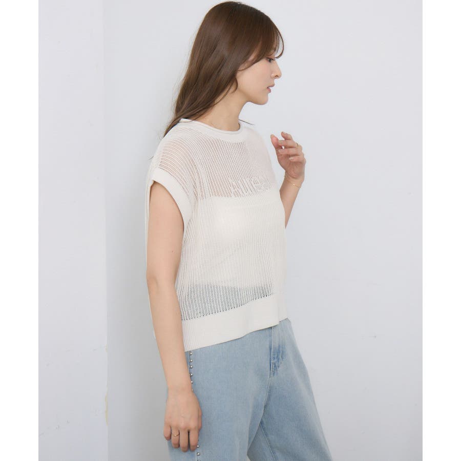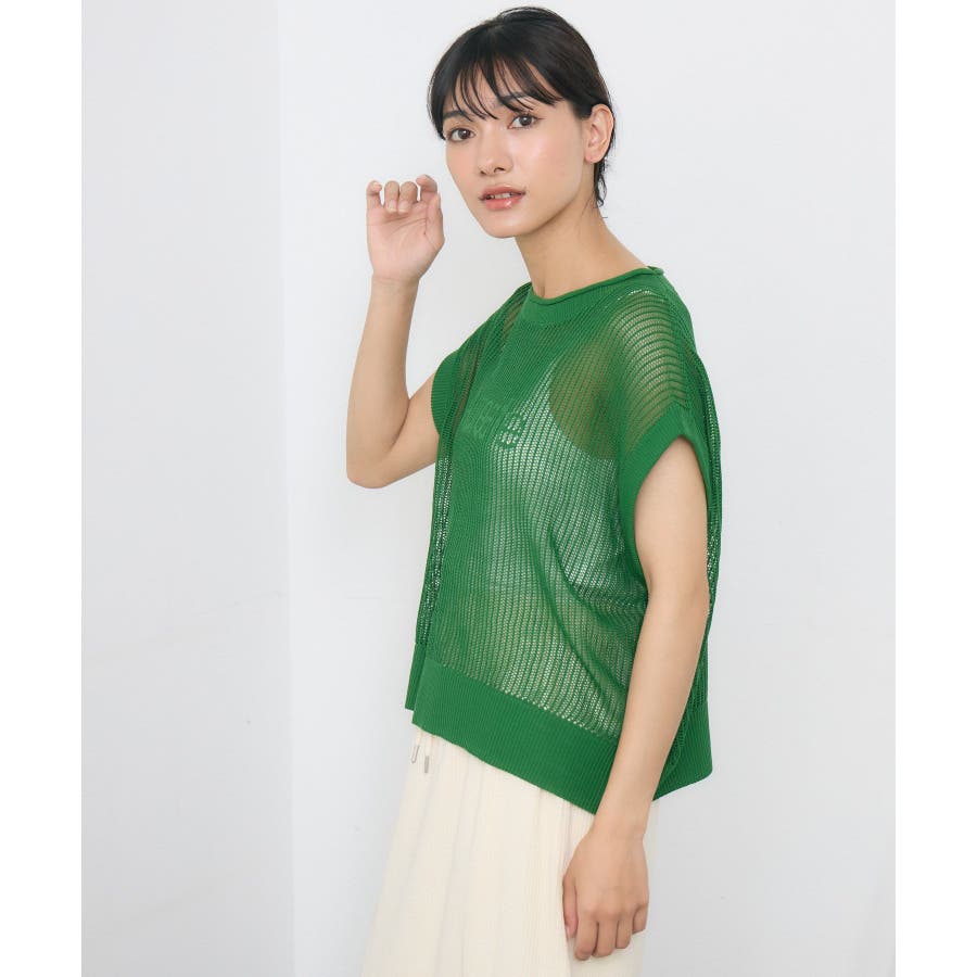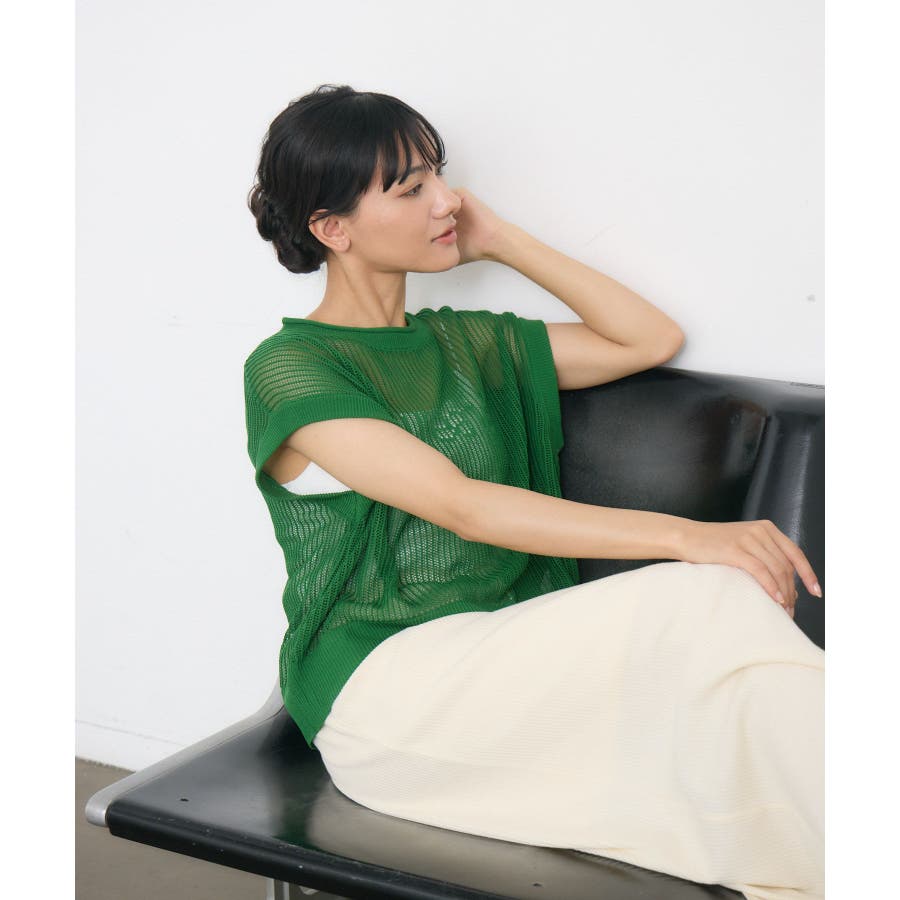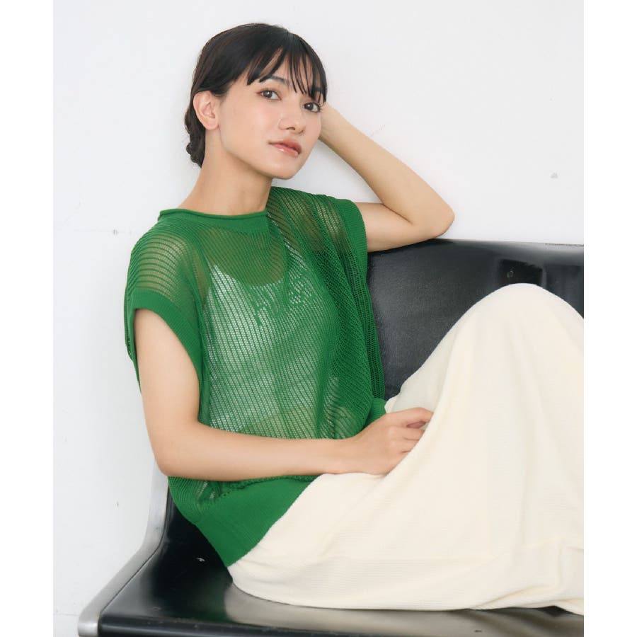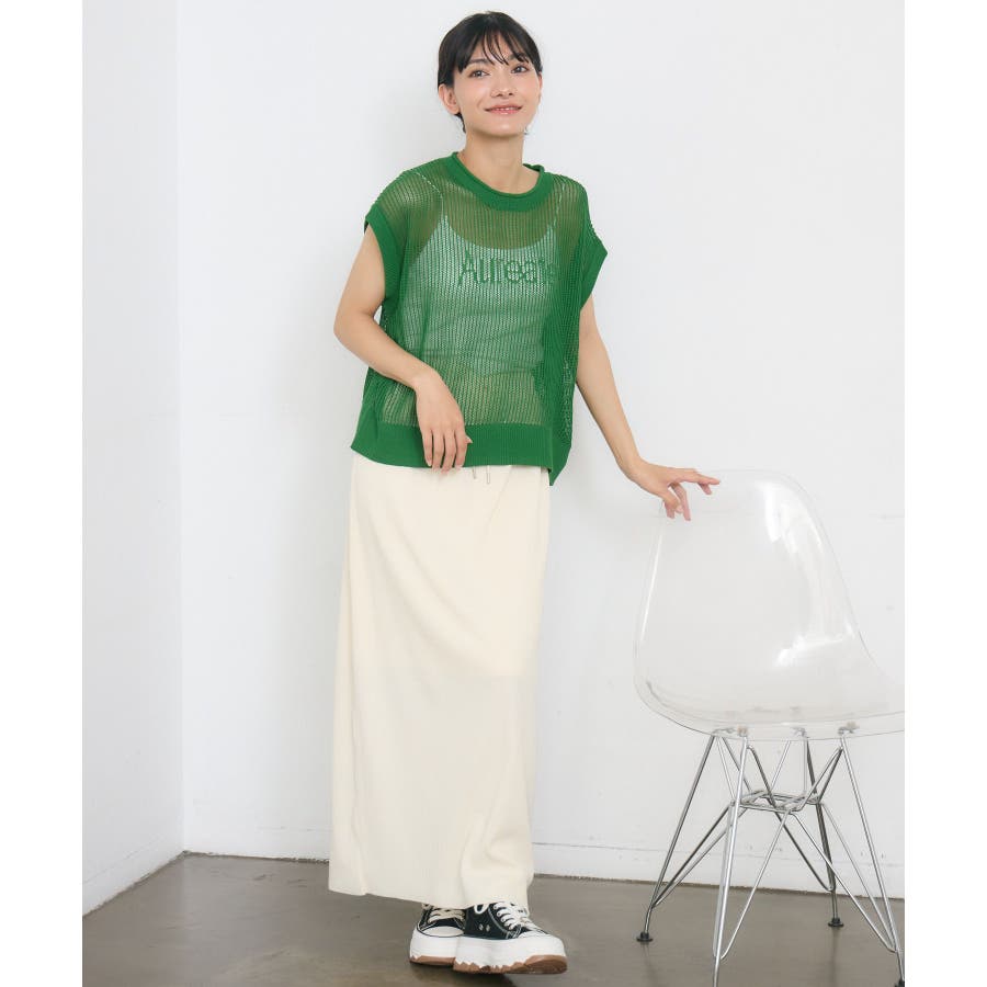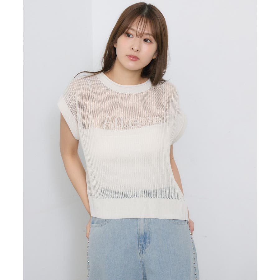 <カジュアルなデザインとナチュラルなロゴのメッシュニット>▼デザイン夏に取り入れたいメッシュデザインのニットアイテム。同系色のナチュラルなロゴがワンポイントです。二の腕の部分まで長さのあるフレンチスリーブ丈になるデザインなので、骨格ウェーブさんの華奢な腕周りと相性ばっちりです。▼コーディネートタンクトップやTシャツ、ワンピースなどの上から重ねたコーディネートがおすすめ!インナーを対照的なカラーにすると、よりロゴが目立ちます。------------------------------生地感:薄手伸縮性:ある透け感:ある裏地:なし------------------------------▼ブランド紹介RETRO GIRL (レトロガール)自分らしい“ベーシックアイテム”と新しい自分の”トレンドアイテム”が見つかる場所今らしいファッションを楽しむ女性のためのブランド#カラーコーデ #カラーアイテム #メッシュトップス #メッシュニット ▼注意事項※撮影環境やモニター環境によって実際の商品とお色味が多少異なってみえる場合がございます。品番:RL456412T001 / 品名:ノースリロゴメッシュNT