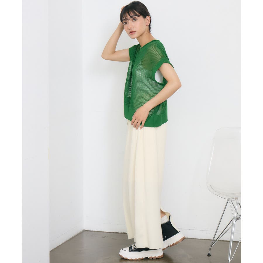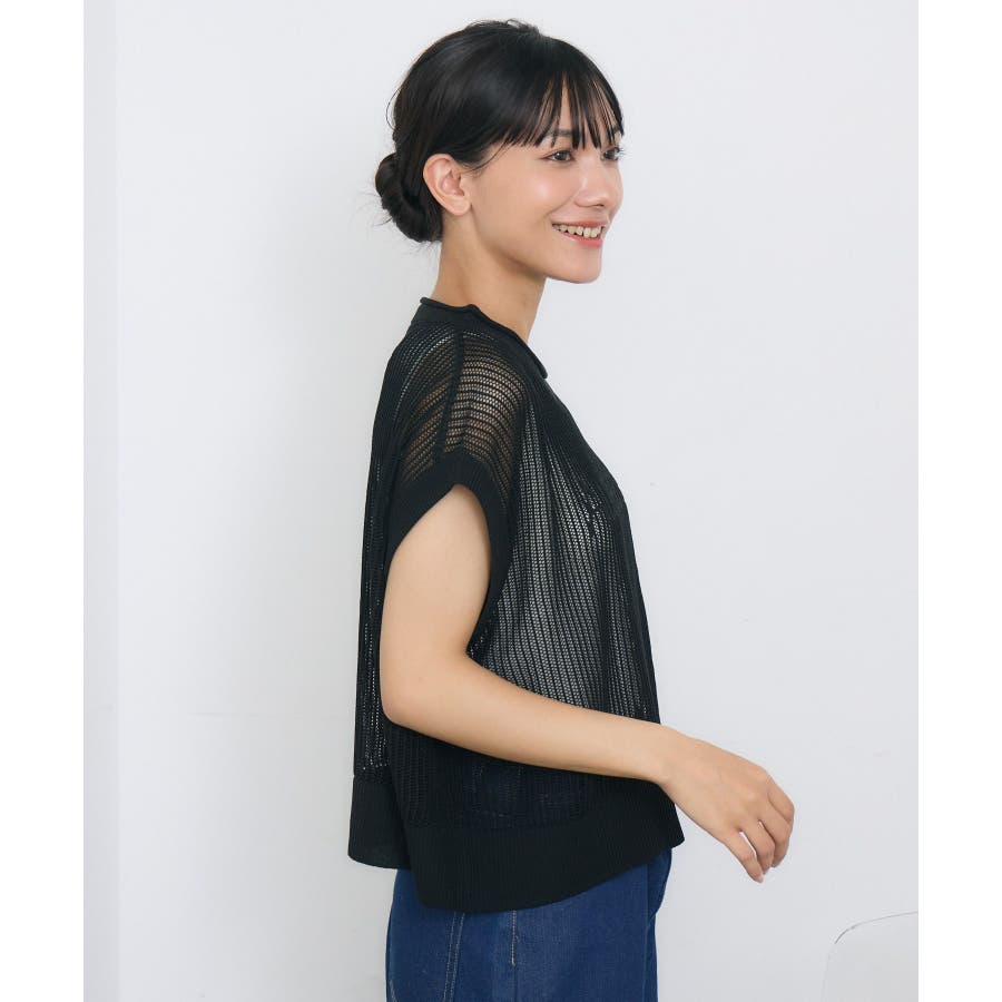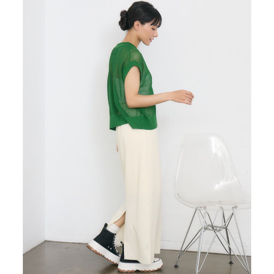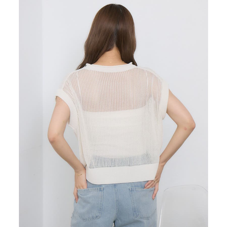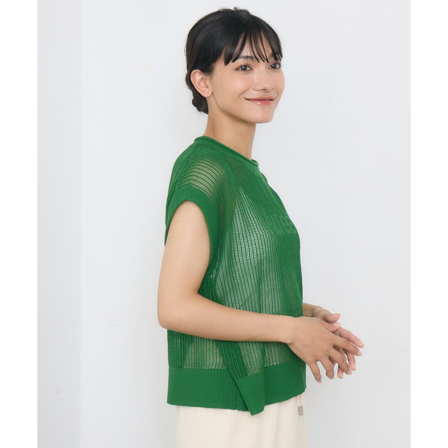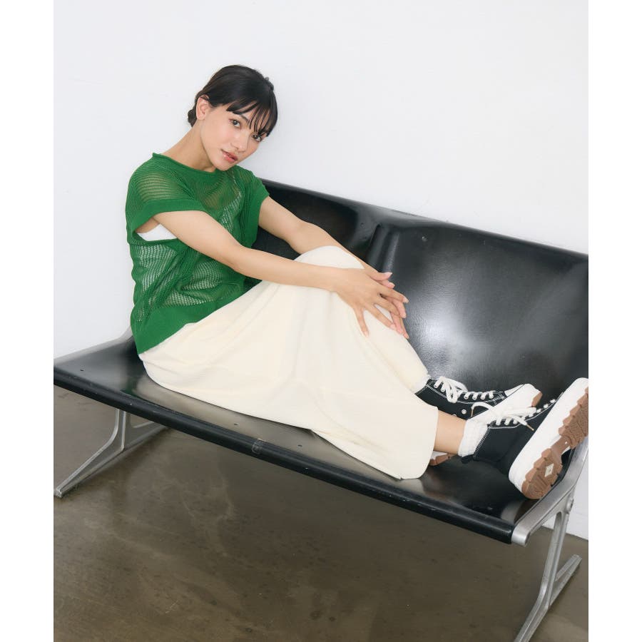 <カジュアルなデザインとナチュラルなロゴのメッシュニット>▼デザイン夏に取り入れたいメッシュデザインのニットアイテム。同系色のナチュラルなロゴがワンポイントです。二の腕の部分まで長さのあるフレンチスリーブ丈になるデザインなので、骨格ウェーブさんの華奢な腕周りと相性ばっちりです。▼コーディネートタンクトップやTシャツ、ワンピースなどの上から重ねたコーディネートがおすすめ!インナーを対照的なカラーにすると、よりロゴが目立ちます。------------------------------生地感:薄手伸縮性:ある透け感:ある裏地:なし------------------------------▼ブランド紹介RETRO GIRL (レトロガール)自分らしい“ベーシックアイテム”と新しい自分の”トレンドアイテム”が見つかる場所今らしいファッションを楽しむ女性のためのブランド#カラーコーデ #カラーアイテム #メッシュトップス #メッシュニット ▼注意事項※撮影環境やモニター環境によって実際の商品とお色味が多少異なってみえる場合がございます。品番:RL456412T001 / 品名:ノースリロゴメッシュNT