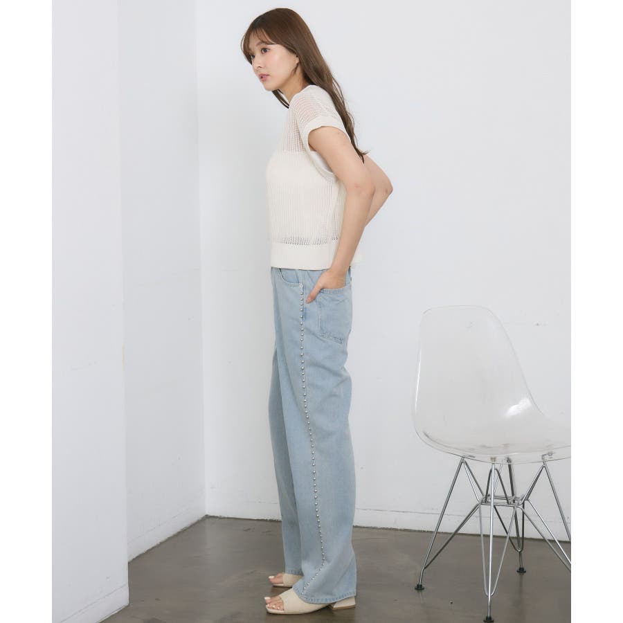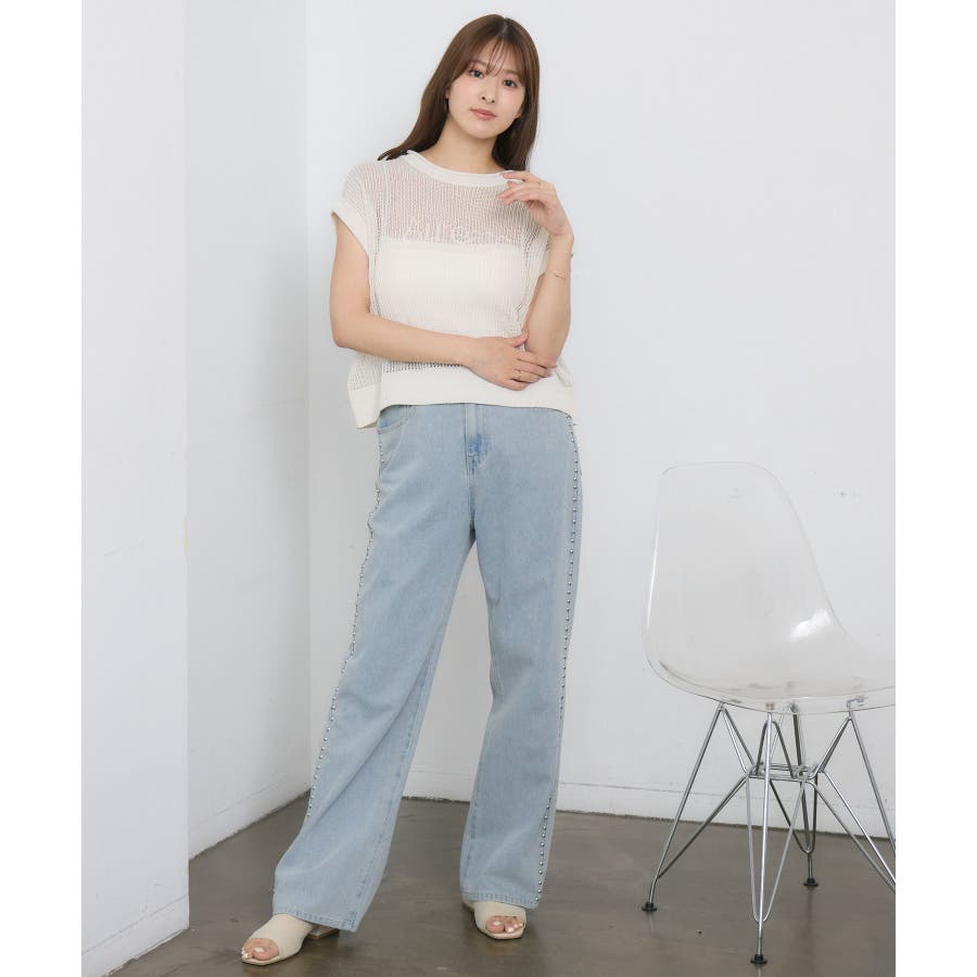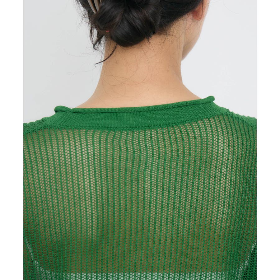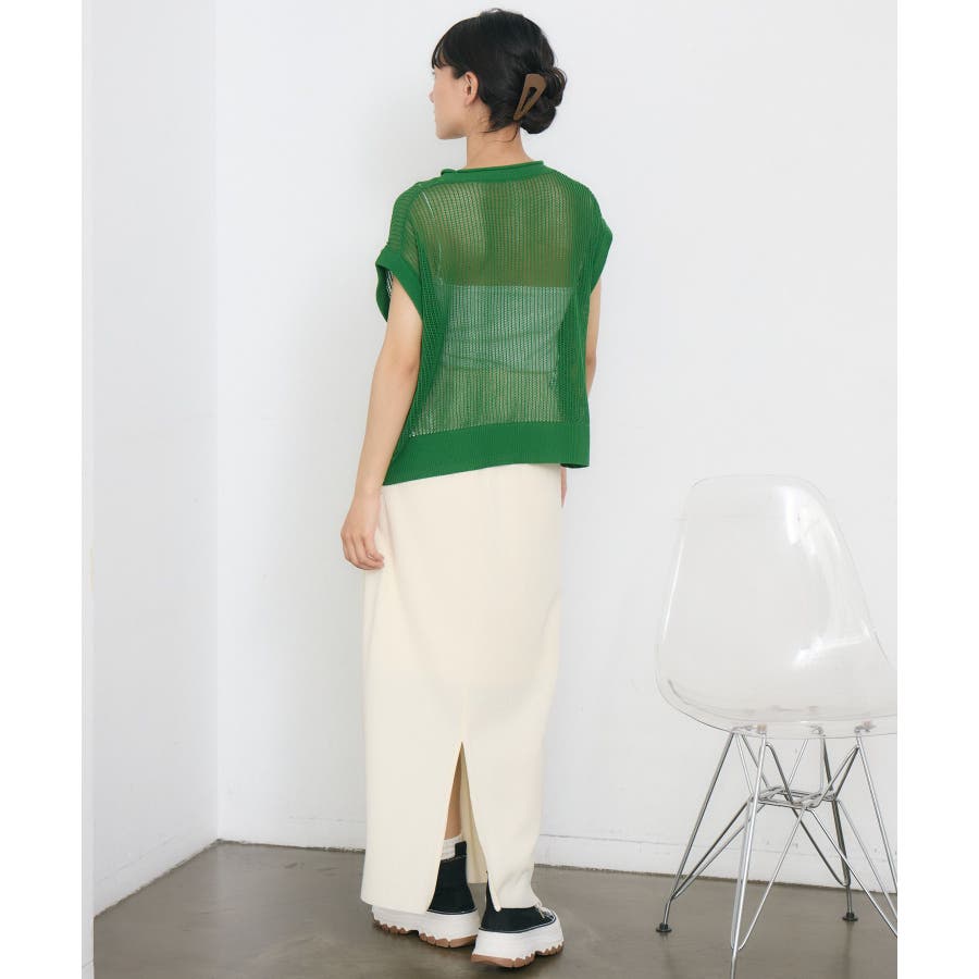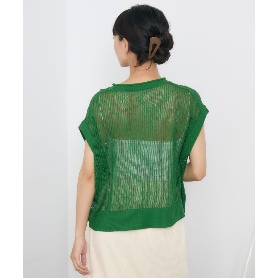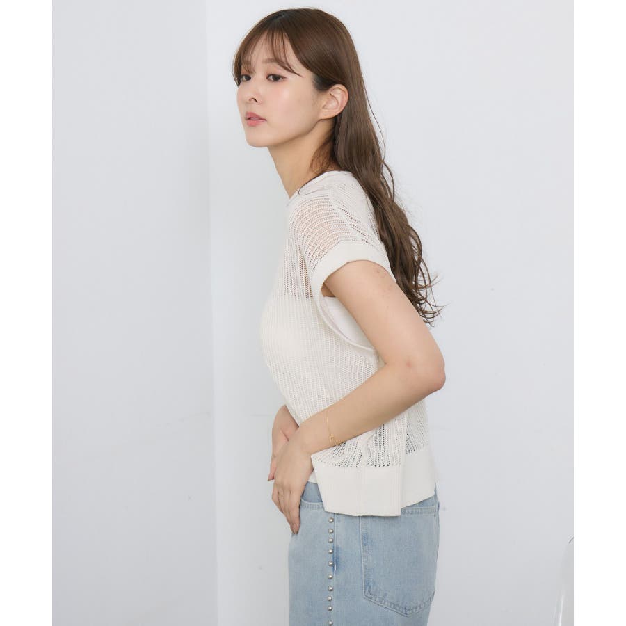 <カジュアルなデザインとナチュラルなロゴのメッシュニット>▼デザイン夏に取り入れたいメッシュデザインのニットアイテム。同系色のナチュラルなロゴがワンポイントです。二の腕の部分まで長さのあるフレンチスリーブ丈になるデザインなので、骨格ウェーブさんの華奢な腕周りと相性ばっちりです。▼コーディネートタンクトップやTシャツ、ワンピースなどの上から重ねたコーディネートがおすすめ!インナーを対照的なカラーにすると、よりロゴが目立ちます。------------------------------生地感:薄手伸縮性:ある透け感:ある裏地:なし------------------------------▼ブランド紹介RETRO GIRL (レトロガール)自分らしい“ベーシックアイテム”と新しい自分の”トレンドアイテム”が見つかる場所今らしいファッションを楽しむ女性のためのブランド#カラーコーデ #カラーアイテム #メッシュトップス #メッシュニット ▼注意事項※撮影環境やモニター環境によって実際の商品とお色味が多少異なってみえる場合がございます。品番:RL456412T001 / 品名:ノースリロゴメッシュNT