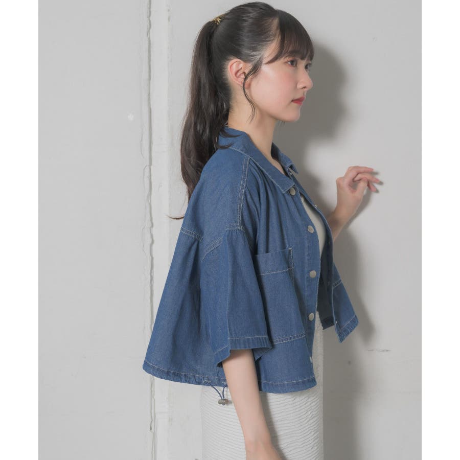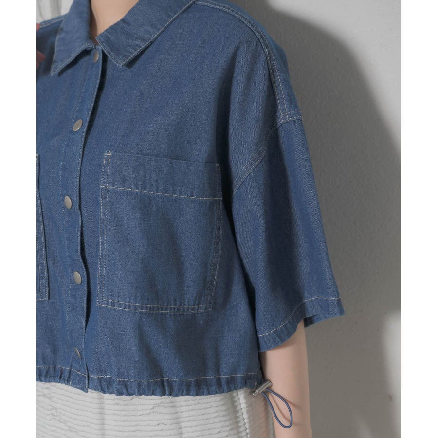 <裾のドロストデザインでトレンドシルエットにアレンジ!>▼デザイン今年トレンドのデニム素材で作られたシャツ。夏の羽織におすすめの1枚です。大き目の袖幅で、ゆるっとカジュアルに着こなしていただけます。裾はドロストデザインになっていて、絞りの強さによってシルエットを変更することができるので、お好みに調節してオシャレを楽しんでみてください。▼コーディネートデニムで爽やかな見え感のアイテム!ワンピースに羽織って甘めにスタイリングしても、ナイロンパンツやデニムパンツでカジュアルにスタイリングしてもお洒落に着こなして頂けます。-----------------------------生地感:普通伸縮性:なし透け感:なし裏地:なし------------------------------▼ブランド紹介RETRO GIRL (レトロガール)自分らしい“ベーシックアイテム”と新しい自分の”トレンドアイテム”が見つかる場所今らしいファッションを楽しむ女性のためのブランド#ショートシャツ #シャツ #デニムシャツ #ドロストシャツ▼注意事項※撮影環境やモニター環境によって実際の商品とお色味が 多少異なってみえる場合がございます。品番:RL456623B001 / 品名:ドロストデニムSH
