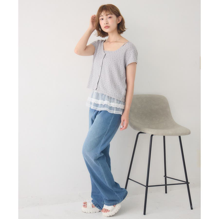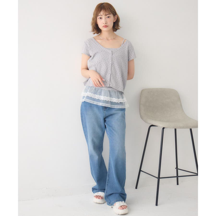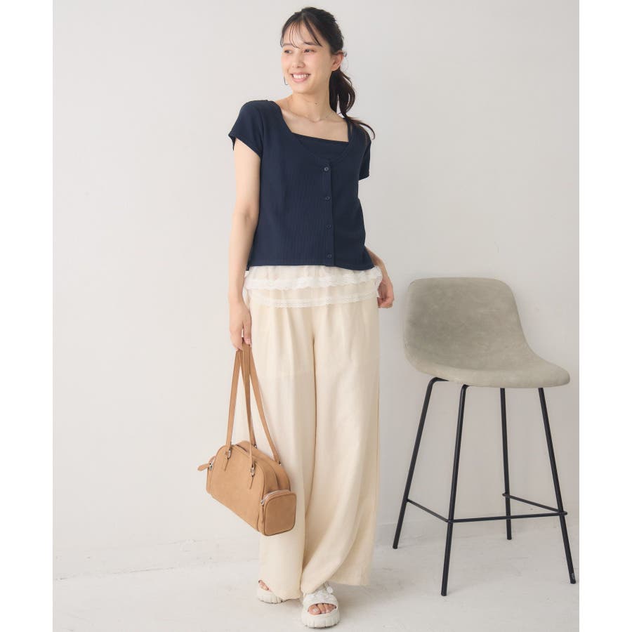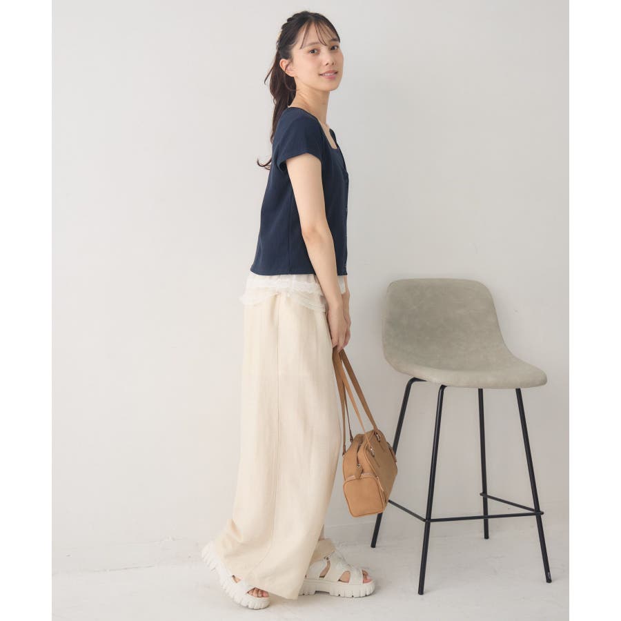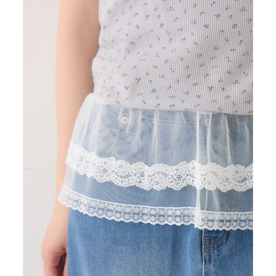 素材 | 【本体】ポリエステル62% 綿33% ポリウレタン5% 【裾】チュール:ポリエステル100% レース1:ナイロン90%ポリウレタン10% レース2:ナイロン100% |
