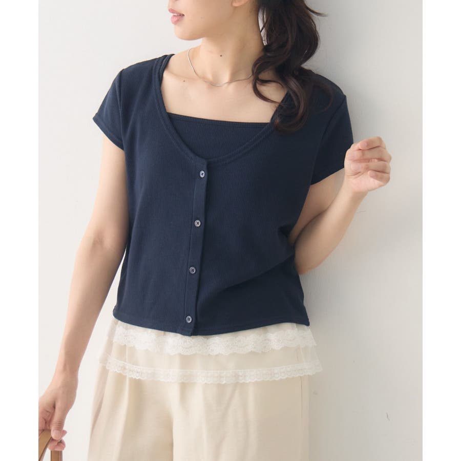 FRE: 着丈カーディガン:48.5cm キャミソール:47.5cm/袖丈カーディガン:10cm キャミソール:0.8cm/バストカーディガン95cm キャミソール:76cm/肩幅カーディガン:38cm