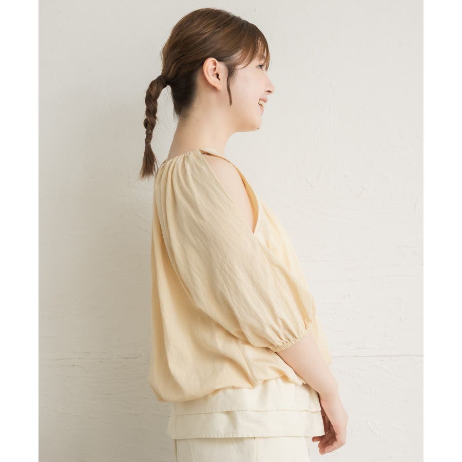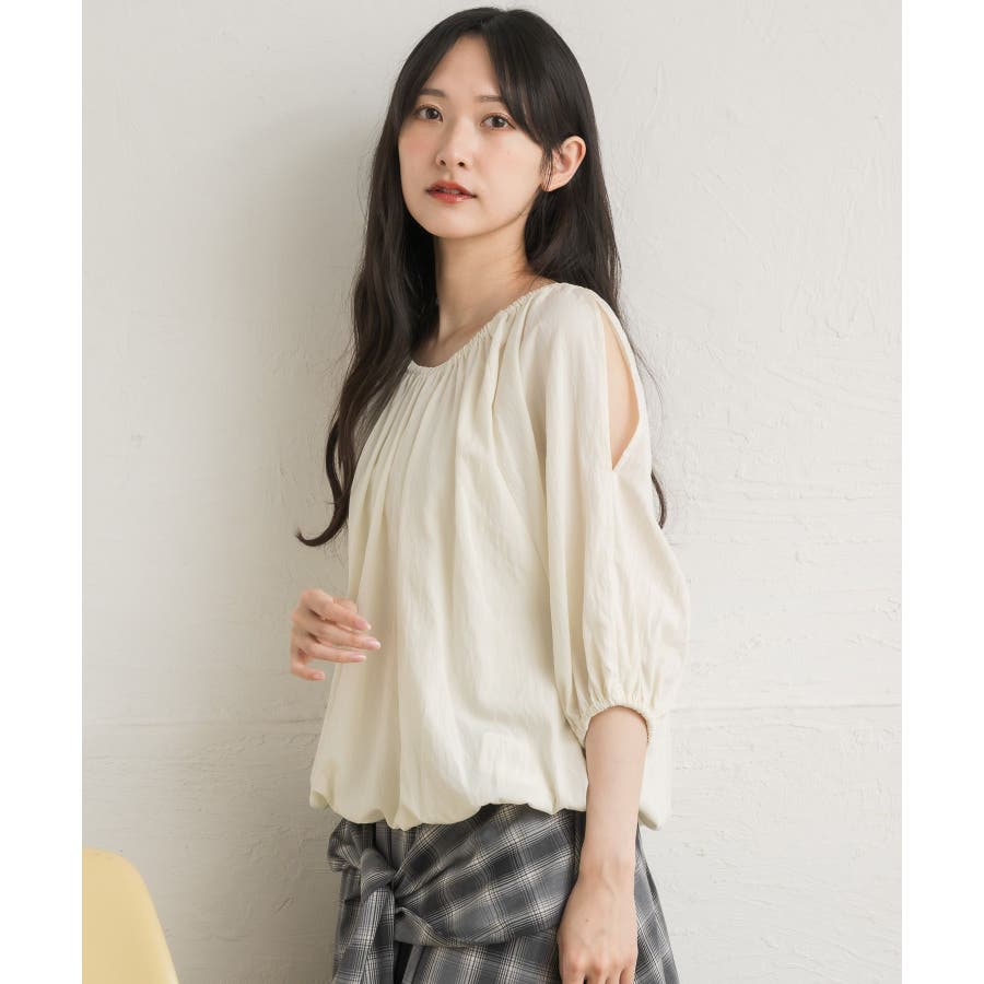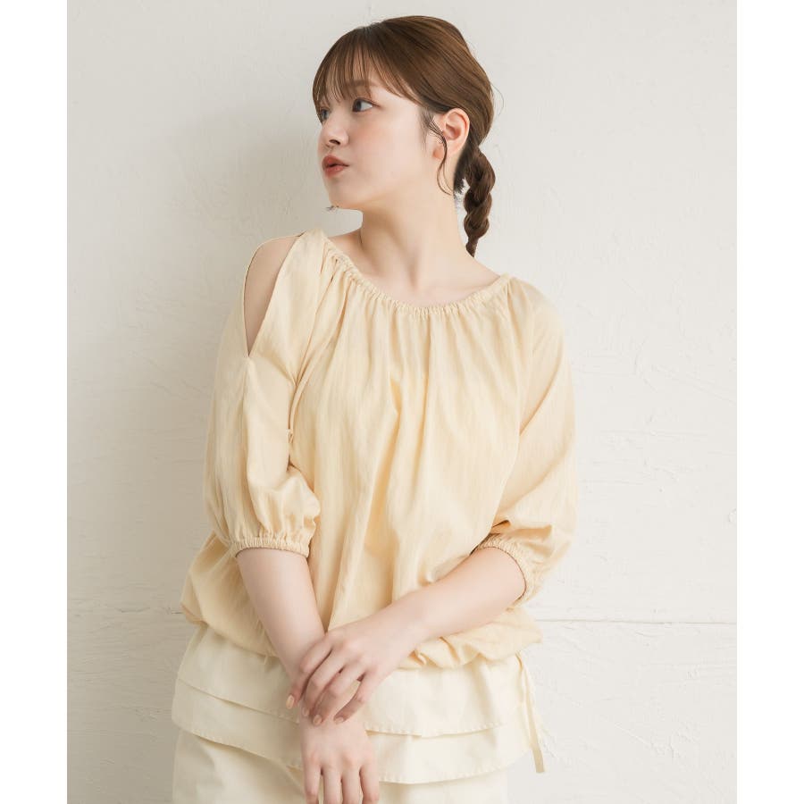 <女性らしいスリットデザインのレディブラウス>▼デザイン女性らしいレディデザインのブラウスアイテム。肩部分にはスリットが施されていて、夏に嬉しい涼しいワンポイント!裾はくしゅっと絞られたバルーンシルエットが今年らしいトレンド感♪▼コーディネートボトムを選ばない使いやすいデザイン。フェミニン綺麗めコーデが得意なブラウスアイテムです。ロングスカートやタイトスカートと合わせたスタイリングがおすすめ♪------------------------------生地感:普通伸縮性:ある透け感:なし裏地:ある------------------------------▼ブランド紹介RETRO GIRL (レトロガール)自分らしい“ベーシックアイテム”と新しい自分の”トレンドアイテム”が見つかる場所今らしいファッションを楽しむ女性のためのブランド#ブラウス #スリット #オフショルブラウス #トレンドアイテム #甘めブラウス ▼注意事項※撮影環境やモニター環境によって実際の商品とお色味が 多少異なってみえる場合がございます。品番:RL556423T002 / 品名:肩スリットオフショルBL