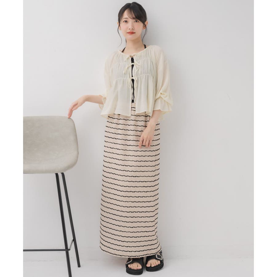 <フロントリボンで大人ガーリーなトレンドブラウス>▼デザインフロント部分に3段のリボンデザインがガーリーなブラウスアイテム。いつもの柔らかく透け感のある素材とレースのアソートでご用意。首元はゴムが入っているので、オフショルスタイルにアレンジ可能◎羽織としても使えて、汎用性ある1枚です。▼コーディネートデニムパンツに合わせて甘カジコーデがおすすめ!キャミソールに羽織ることで夏にも涼しいスタイリングに♪-----------------------------生地感:薄手伸縮性:なし透け感:あり裏地:なし------------------------------▼ブランド紹介RETRO GIRL (レトロガール)自分らしい“ベーシックアイテム”と新しい自分の”トレンドアイテム”が見つかる場所今らしいファッションを楽しむ女性のためのブランド#ブラウス #ブラウスコーデ #ブラウスアイテム #シャーリング #レース素材 #フロントリボン▼注意事項※撮影環境やモニター環境によって実際の商品とお色味が 多少異なってみえる場合がございます。品番:RL556623T001 / 品名:アソート前リボンBL
