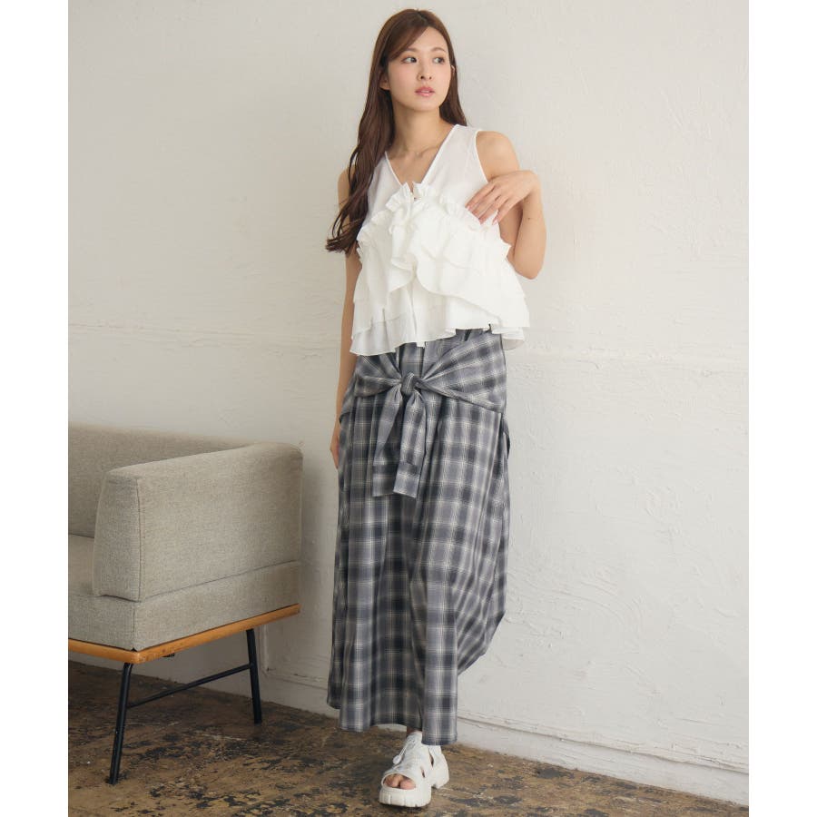 〈シャツ巻き風デザインがオシャレなスカートアイテム〉▼デザイン柔らかく風通しのいいロングスカートアイテム。ウエストはシャツを巻いているように見えるデザインで1枚でオシャレに着こなして頂けます◎華やかなチェック柄は夏から秋にかけてコーデの主役におすすめです。▼コーディネート1枚でレイヤード風コーデが叶うおしゃれアイテム!大き目サイズのトップスと合わせることで、レイヤード感も綺麗に見えます。------------------------------生地感:普通伸縮性:ある透け感:なし裏地:なし------------------------------▼ブランド紹介RETRO GIRL (レトロガール)自分らしい“ベーシックアイテム”と新しい自分の”トレンドアイテム”が見つかる場所今らしいファッションを楽しむ女性のためのブランド#チェック #デザインスカート #マキシスカート #レイヤード #シャツ巻き▼注意事項※撮影環境やモニター環境によって実際の商品とお色味が多少異なってみえる場合がございます。品番:RL580031T001 / 品名:シャツライクSK